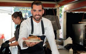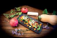 6. Emplateu: Disposeu el trinxat al plat, col·loqueu-hi el guanciale cruixent restant i per sobre i acabeu amb les rodanxes de pop grillat.