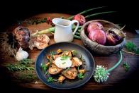 Un clàssic de muntanya que es deixa seduir pel mar. La patata i la col, cuinades amb paciència i respecte per la tradició, formen la base humil però poderosa d’aquest plat. El guanciale hi aporta caràcter, untuositat i un punt de rusticitat italiana, mentre que el pop, marcat a la graella, afegeix una nota sofisticada i inesperada.