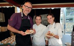 5. Prepareu el pop: Laqueu un braç de pop amb una mica d’oli d’oliva i, si voleu, una punta de pebre fumat. Marqueu-lo a la paella o a la graella fins que quedi ben daurat. Talleu-lo a rodanxes fines.