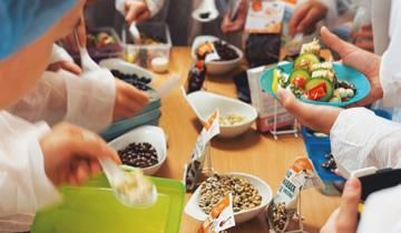 Schüler:innen die Möglichkeit aus Saaten und Nüssen kunterbunte, nährstoffreiche Pausensnacks zuzubereiten und gehen gesundem Snacken auf den Grund.