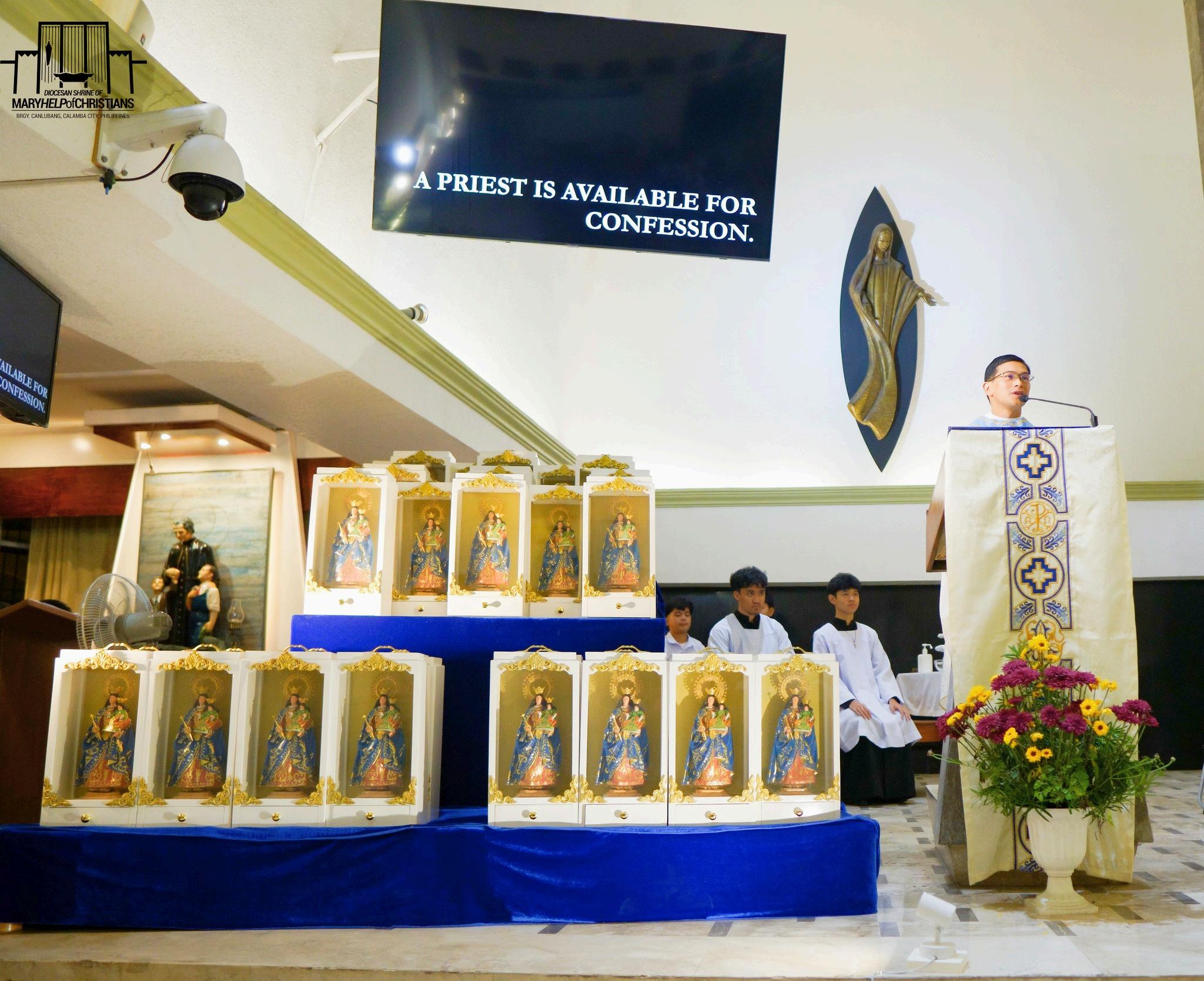 Canlubang — During the Monthly Commemoration, the Diocesan Shrine of Mary Help of Christians unveiled new MHC statues as Fr. Jake Lopez, SDB led the faithful in honoring the Blessed Mother’s enduring presence.