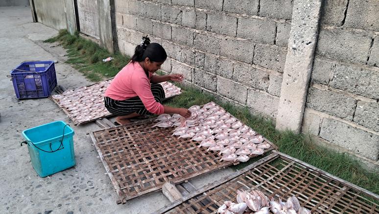 I walked the island with Jonathan, greeting people starting their day hauling water, drying fish, cleaning yards, sharing morning coffee