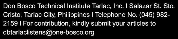 And to the Bosconians, the parents, the entire Educative Pastoral Community thank you. Your support made every issue possible. This publication belongs to you.