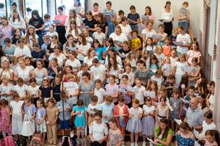 je potekalo tradicionalno vseslovensko srečanje otroških pevskih zborov na Rakovniku v Ljubljani. Tokrat se ga je udeležilo 500 otrok s svojimi zborovodji iz 38 zborov. Pevce je spremljal šestčlanski band, vse harmonije pa je v eno uskladila dirigentka Viktorija Celarc. Repertoar so sestavljale raznolike otroške pesmi in mašni deli. Otroci so prenovljeno cerkev Marije Pomočnice do vrha napolnili z razigrano otroško energijo in veseljem. Ni dvoma, da se čez dve leti ponovno srečamo. Foto: Žan Seničar
