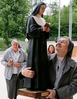 Praznik Marije Dominike Mazzarello na Rakovniku ⁄⁄ Sestre FMA vsako leto zelo slovesno obhajamo praznik soustanoviteljice, sv. Marije Dominike Mazzarello. Za skupnost v Ljubljani na Rakovniku ima letos ta praznik še poseben pomen, saj je vključen v obhajanje stoletnice posvetitve svetišča Marije Pomočnice in župnijskega misijona. V času obnove svetišča je kip matere Marije Dominike dobil prostor v naši hiši. Na njen rojstni dan, 9. maja 2024, ko je bil tudi praznik vnebohoda, pa se je kip vrnil v svetišče, kjer je dobil nov prostor na desni strani cerkve. Vstali Gospod nam je v zameno ob svojem odhodu k Očetu zapustil nekatere kreposti naše sv. Marije D. Mazzarello, ki smo jih skušale v tridnevni pripravi na njen praznik (13. maja) bolj zavzeto živeti.