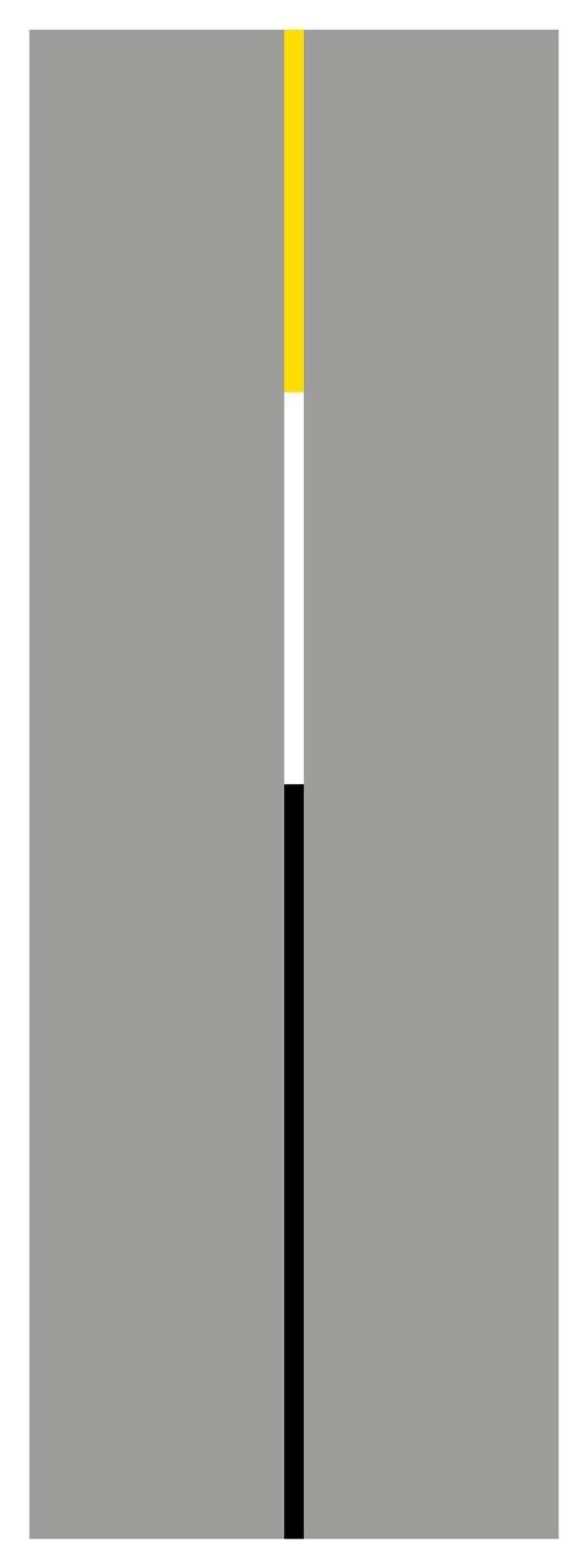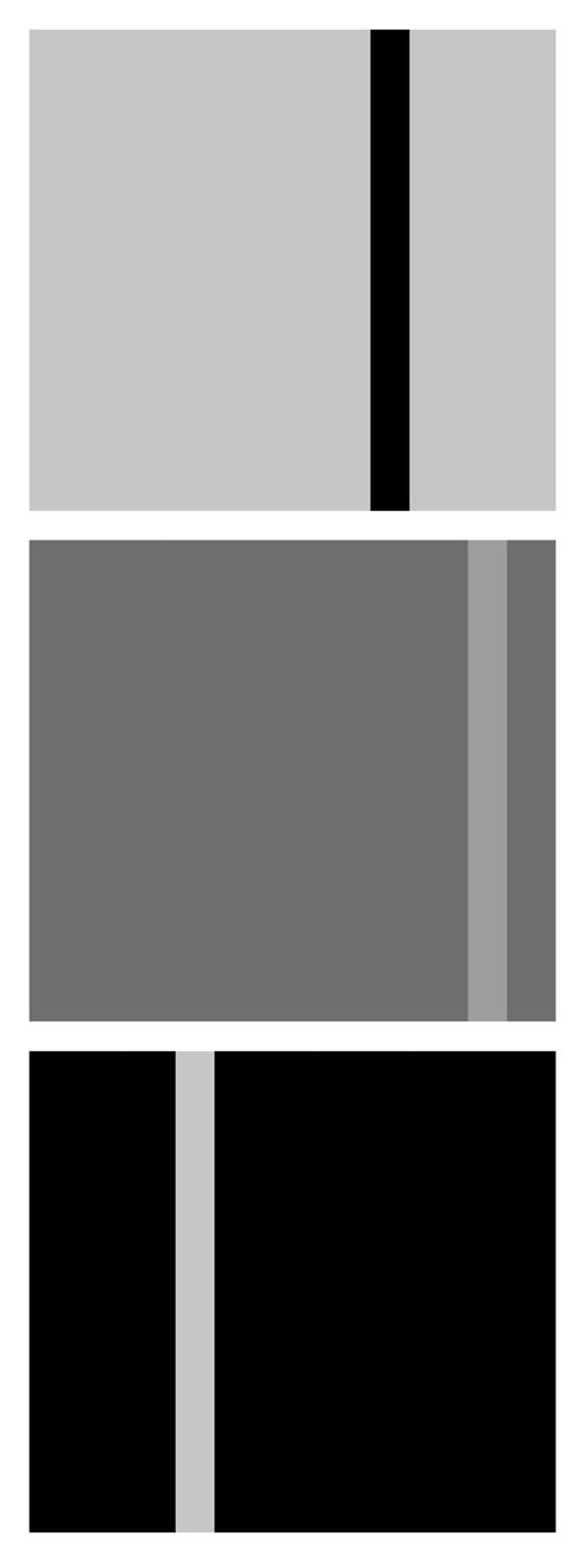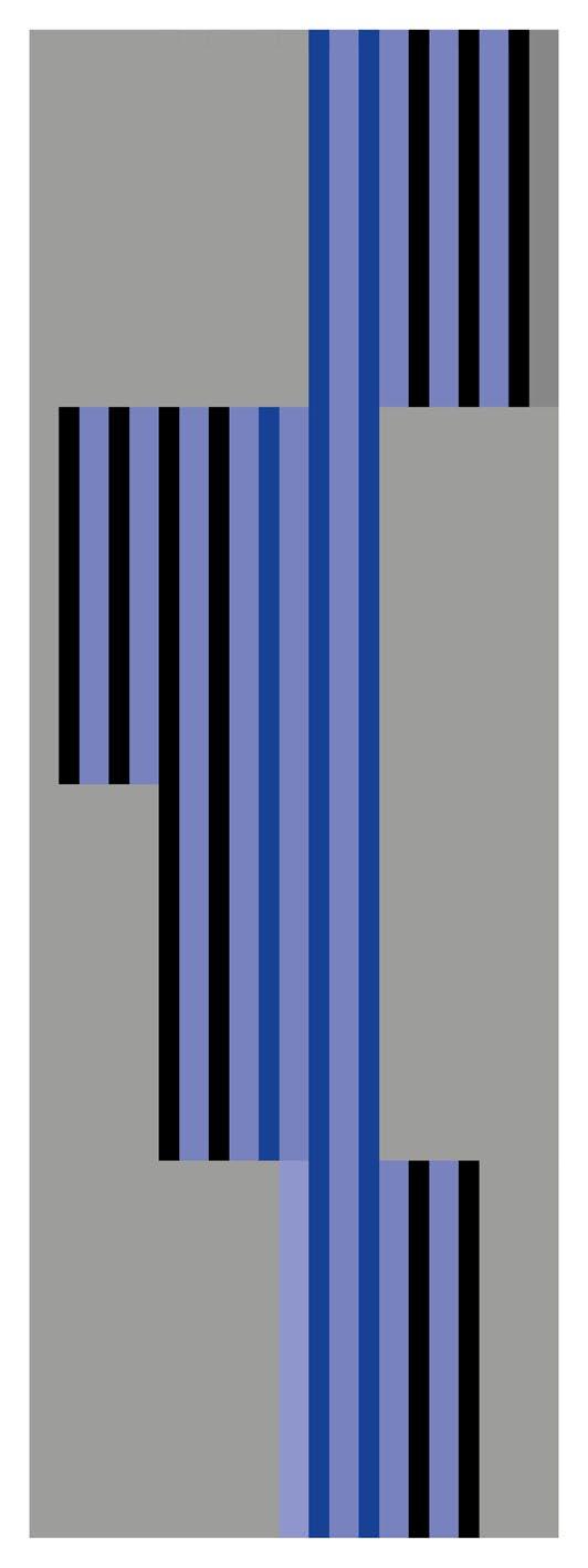 Die schwarze Linie wandelt sich über die einzelnen Tafelstationen hinweg schließlich zu einer weißen Linienerscheinung. In Wirklichkeit ist diese Linie aber nur übriggebliebener Zwischenraum von der breitesten Linienstärke in der letzten Bildtafel. Die expandierende Linien-Gradation bildet so den jeweiligen Raster-Grauwert des Gesamtobjekts und erscheint aus einem gewissen Abstand betrachtet als eine Art Grauv erlauf, der die ganze Installation auch optisch vereint.