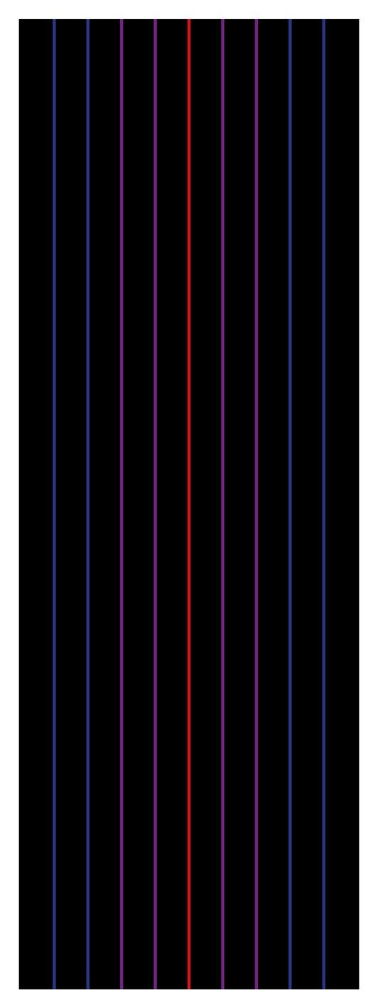 Basierend auf der sechsteiligen Paneel Installation „Metamorphosis“ aus dem Jahre 2021 (Seite10) entstanden in den folgenden knapp zwei Jahren bis Ende 2022 das vertikal-orthogonale Bildprojekt „VERTIKAL“. Aus den sechs unterschiedlichen senkrechten Linienraster („Grid“ genannt) wurden zahlreiche vertikale Bildgrafiken entwickelt. Ihr artifizieller Bildaufbau und Komposition wurden aus eben diesen Linearrastern entnommen und als grafische Objekt-Unikate auf Alu-Dibond Paneele mit einer 7-Farb-Technologie realisiert.