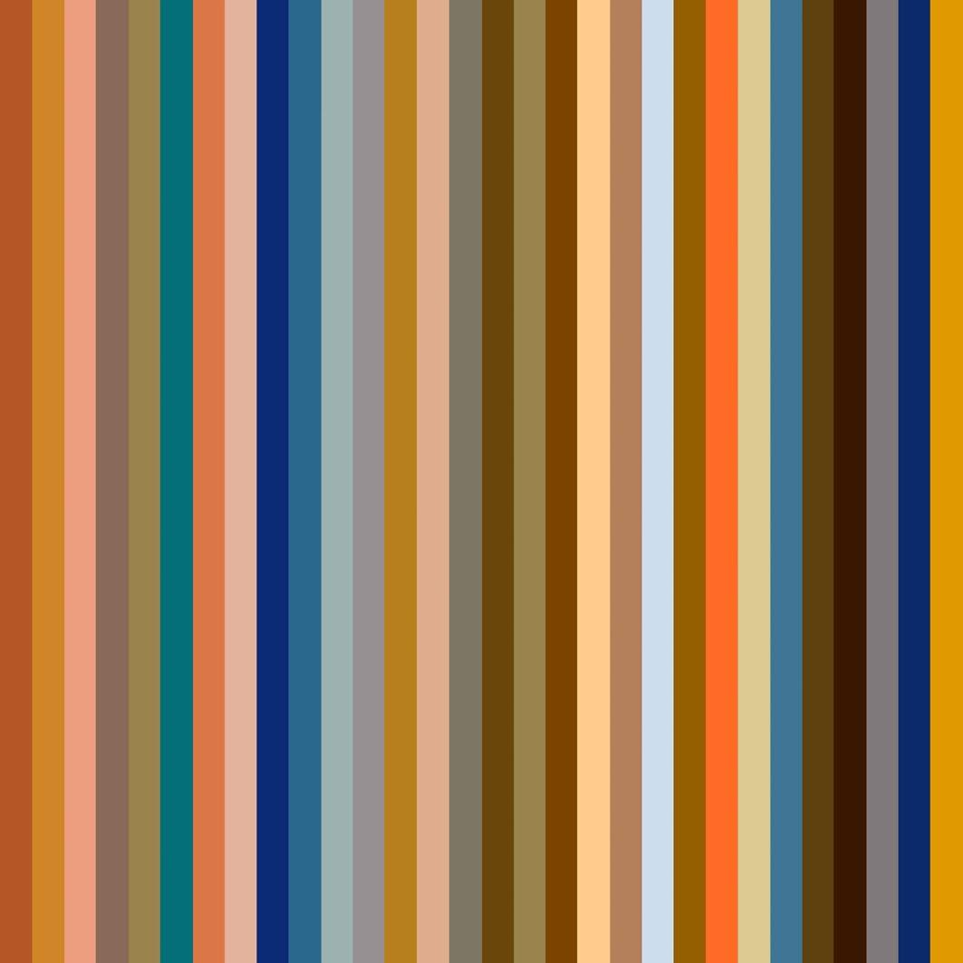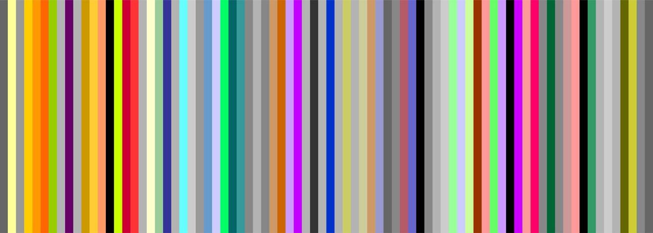 Die Extrahierung der einzelnen Farben erfolgte aus digitalen Vorlagen, die für Jedermann zur Verfügung stehen. Trotz dieser etwas profanen Übertragungstechnik bin ich der Meinung, dass auch die Reproduktionen das Farb-Wesentliche reflektieren. Hier geht es nicht um absolute Farbtreue zum Original, sondern um die generelle Erscheinungsfarbigkeit des Farbstreifenbildes im Vergleich zu seiner digitalen Gemäldevorlage. Sie verraten durchaus die pauschalen Farbvorlieben der großen Maler jener Zeit in diesen abstrakten Bildobjekten. Sein Ergebnis kann durchaus auch als selbstständiges Farbobjekt betrachtet werden. Die Idee des Extrahierungsvorgang und deren Ordnung im Farbstreifen ist genauso wichtig wie ihre Farbimpression bei der Betrachtung der Tafel in der Totalen.