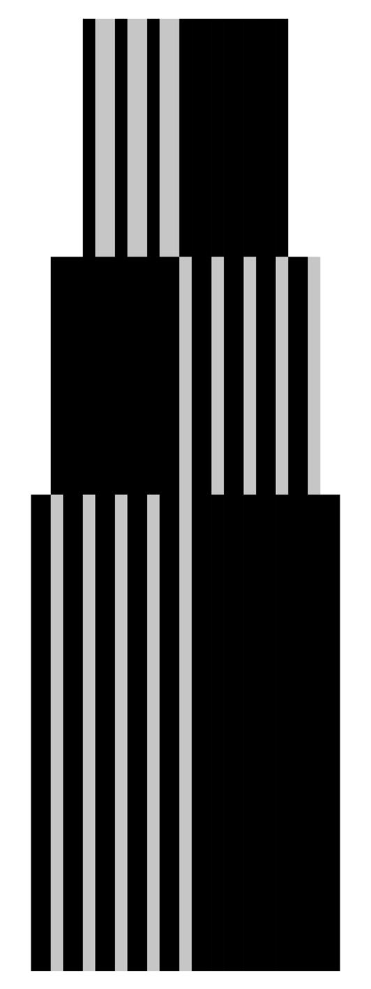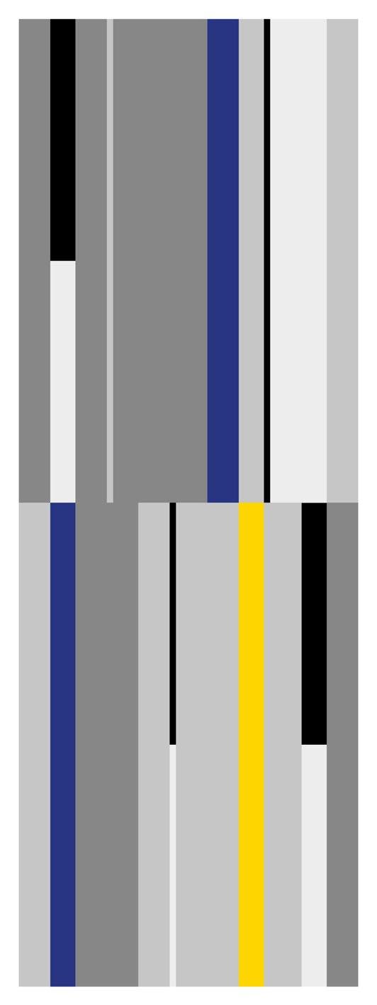 Was daran fasziniert ist, dass eine absolut reduzierte Strichgrafik ähnlich wie die der Binärcodes mit ihren Ziffernsequenzen jegliche Information transportieren können. Beim Barcode wird die Informationsweitergabe durch einfache lapidare Strichsequenzen erzielt. Als vertikal ausgerichtetes Liniensystem, das mit unterschiedlichen Abständen und Stärken