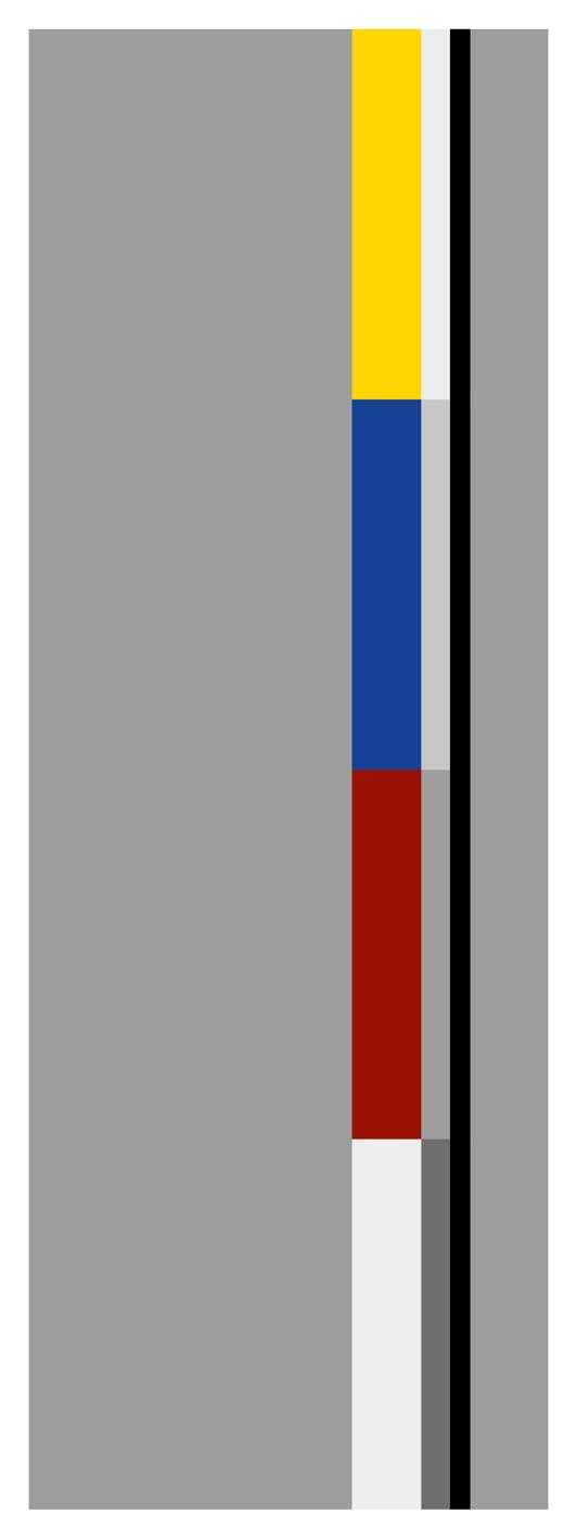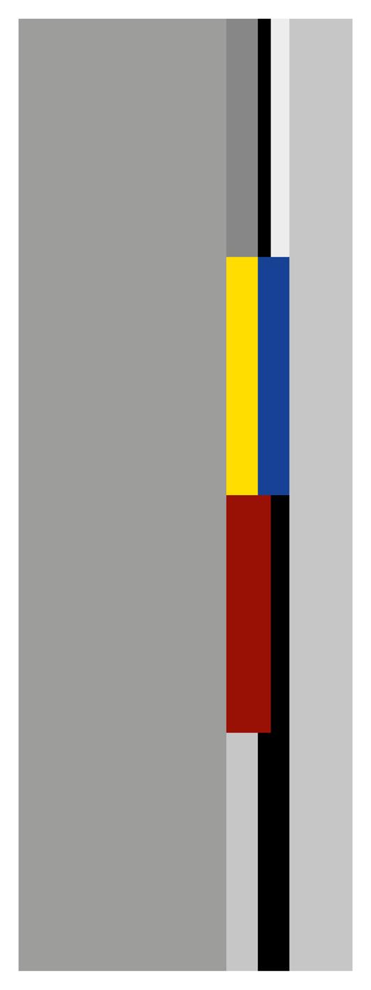 Dabei war mir wichtig visuelle Spannungsfelder zu erzeugen, in denen Linien und Flächen interagieren und interessante neue Ordnungsgefüge bildeten. Natürlich stand dabei immer im Fokus die Sichtbarmachung der Vertikalen. Ausschlaggebend waren dabei auch die Entwicklung sublimer Proportionen, die Schaffung ungewöhnlicher Bildcharakteristiken und Formrhythmen, die sich mit den Prinzipien von Symmetrie und Asymmetrie in Szene setzen konnten. Eine Serie von Bildunikaten ist entstanden, die das Thema der Vertikalen signifikant präsentieren. In der Strenge dieser Hochformate und ihren minimalistischen Gittervarianten entstanden Arbeiten, die partiell das latente Abbild ihres untergelegten Linienrasters darstellen und somit automatisch eine formale Werktreue entwickelten ohne in Monotonie abzugleiten. Dabei spielten die Möglichkeiten von Formvarianz und der Einsatz von interessanten Farbstrukturen eine wesentliche Rolle. Fast spielerisch versuchte ich aus den Grid-Baukästen reduzierte Bildkonstrukte abzuleiten, die letztlich bestimmte Themengruppen hervorbrachten. Dazu gehören minimalistische Flächen- und Linienkompositionen, Turm- und Säulengebilde, Grenz- und Messlinien Motive oder einfach farborientierte Streifenbilder.