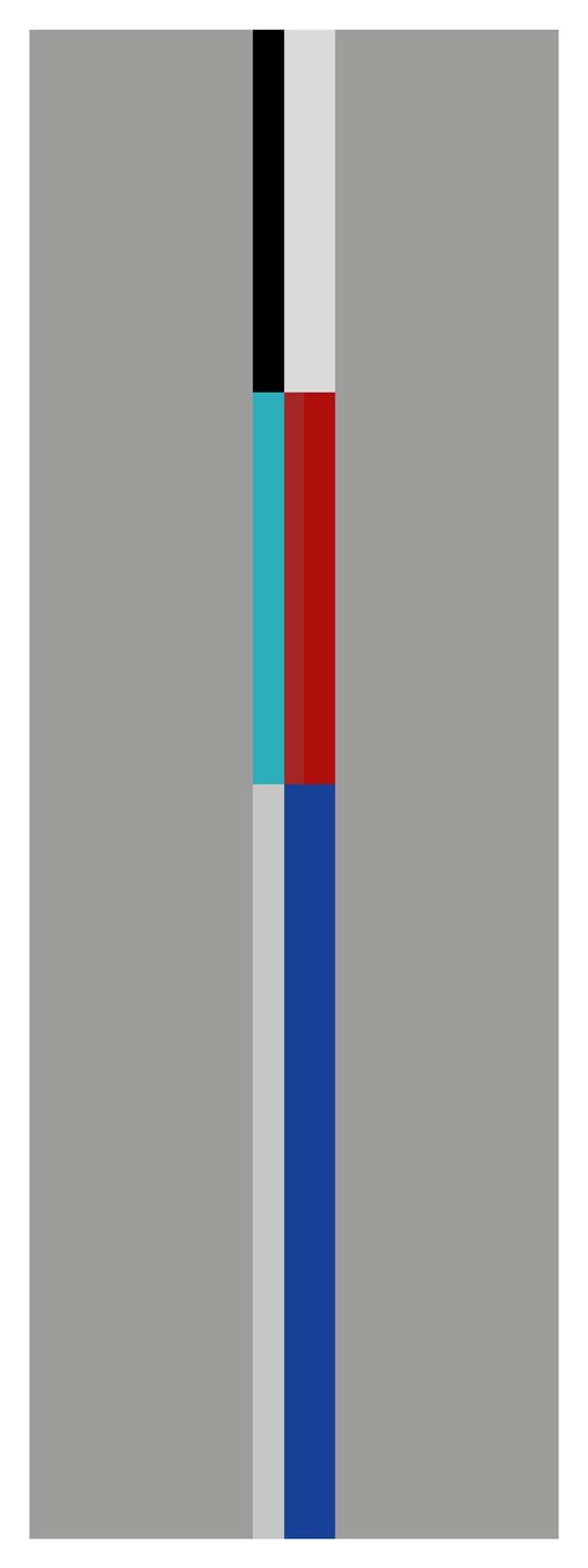 Nur aus einer bestimmten Entfernung kann das Farbtafelobjekt ganzheitlich wahrgenommen und mit Farbassoziationen oder Tendenzen in Verbindung gebracht werden. Konkrete Farbkonstellationen beziehungsweise Korrelationen lassen sich nur aus der Nähe studieren. Der Zusammenhang des kompletten Farbumfeldes verlangt eine hohe Konzentration vom Betrachter ab. Die Merkfähigkeit von längeren Farbsequenzen können vom Sehapparat nicht optimal erfasst werden, da den Rezeptoren des Auges in Verbindung mit der neuronalen Leistung des Gehirns Grenzen gesetzt sind. Dieses Faktum hat mich bewogen einen bestimmten Bereich aus diesem 80-streifigen Farbfeldobjekt heraus zu selektieren.
