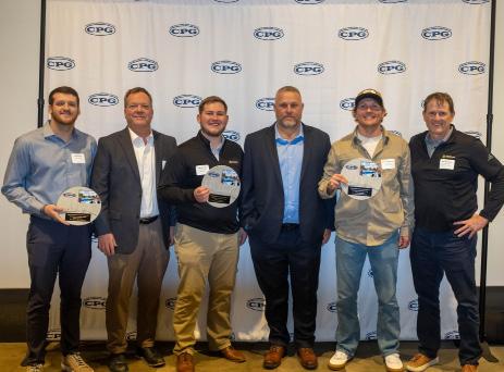 Matt Forbus, Chase Swenson, and Eric Swenson along with Waters Edge accepted the CPG Excellence in Concrete Award for the Tony Aguirre Pool.