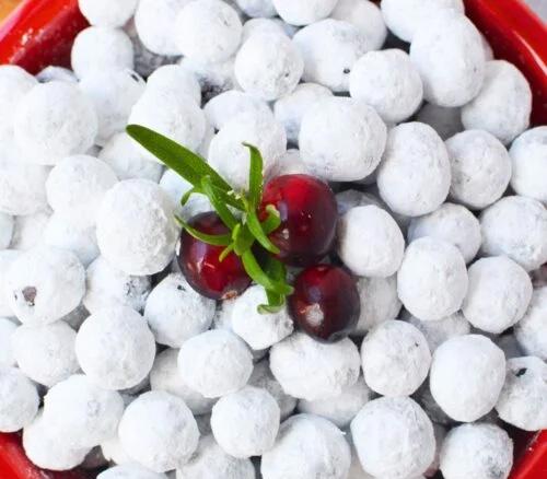 • Add 2 cups powdered sugar to a large resealable gallon bag. Pour in the drained cranberries, seal tightly, and shake until every berry is coated.