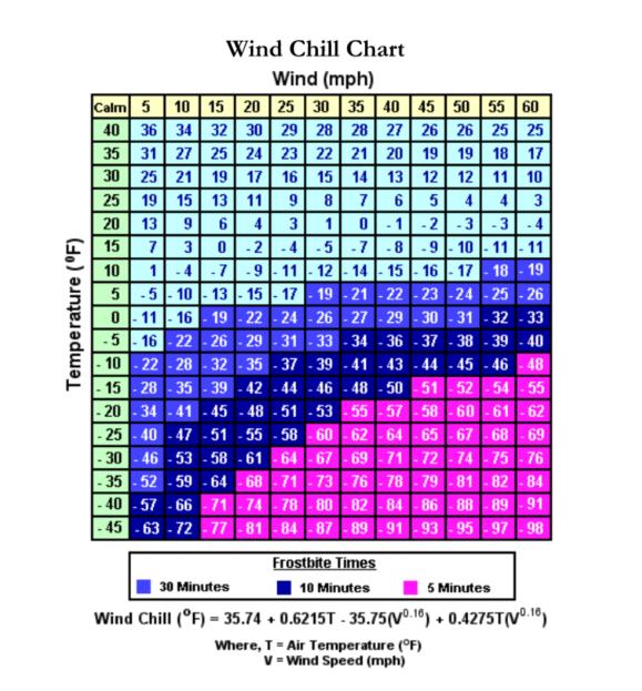 • For example, exposed skin can start to freeze at just 28 degrees Fahrenheit and deep frostbite can cause blood clots and even gangrene.
