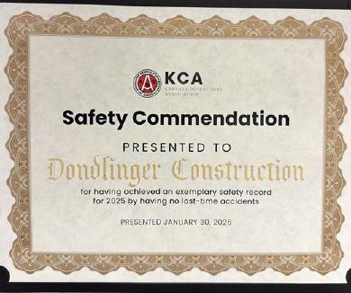 Dondlinger was recognized for our dedication to safety by KCA! Keep up the good work and as always, safety first!