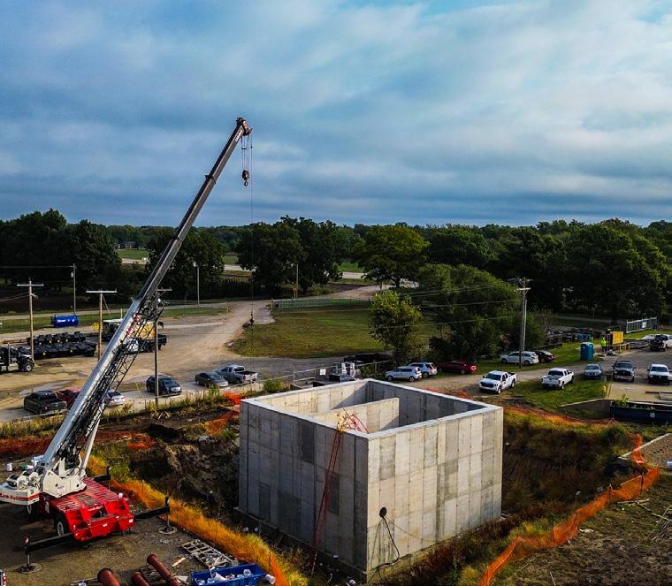 The Derby Wastewater Treatment Plant is nearing completion of Phase 1. Startup and commissioning of the wastewater equipment and the odor control system are scheduled throughout the weeks of November. Currently, crews are leak-testing the Anaerobic Basin prior to backfilling. Dondlinger’s utility division is installing underground process piping and recently completed pouring the chemical building’s foundation walls. They will soon begin the under-slab mechanical, electrical, and plumbing rough-in work.
