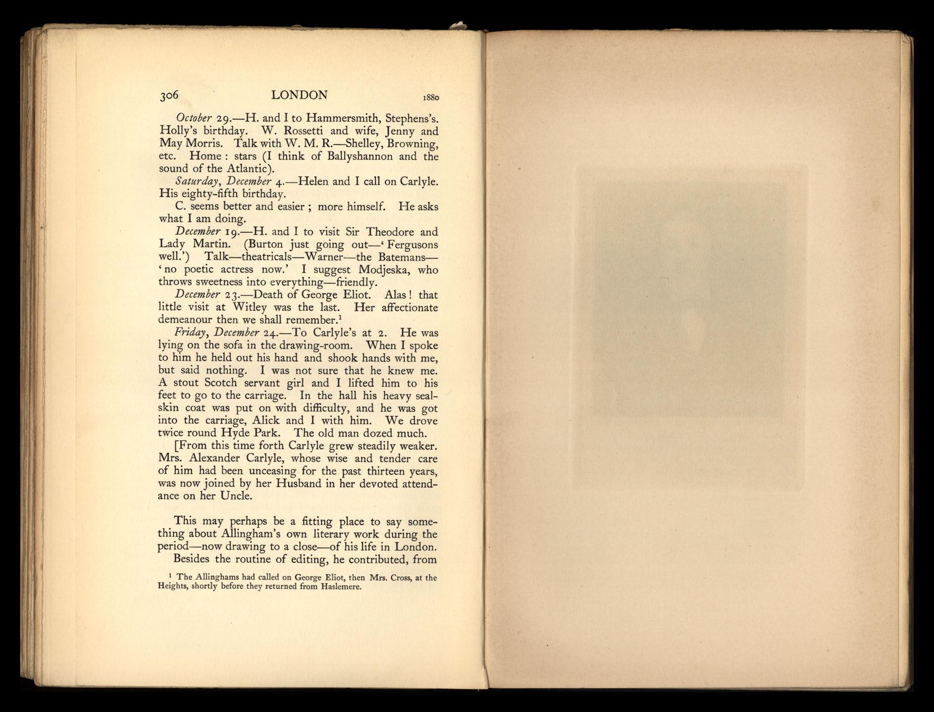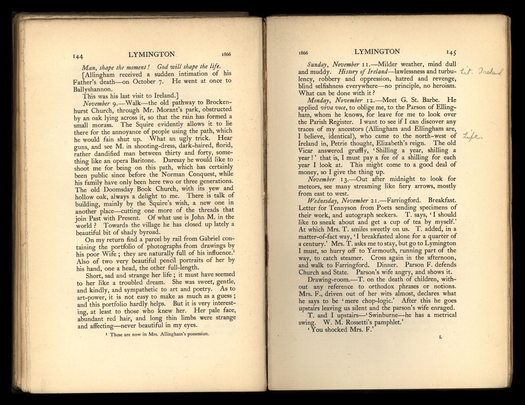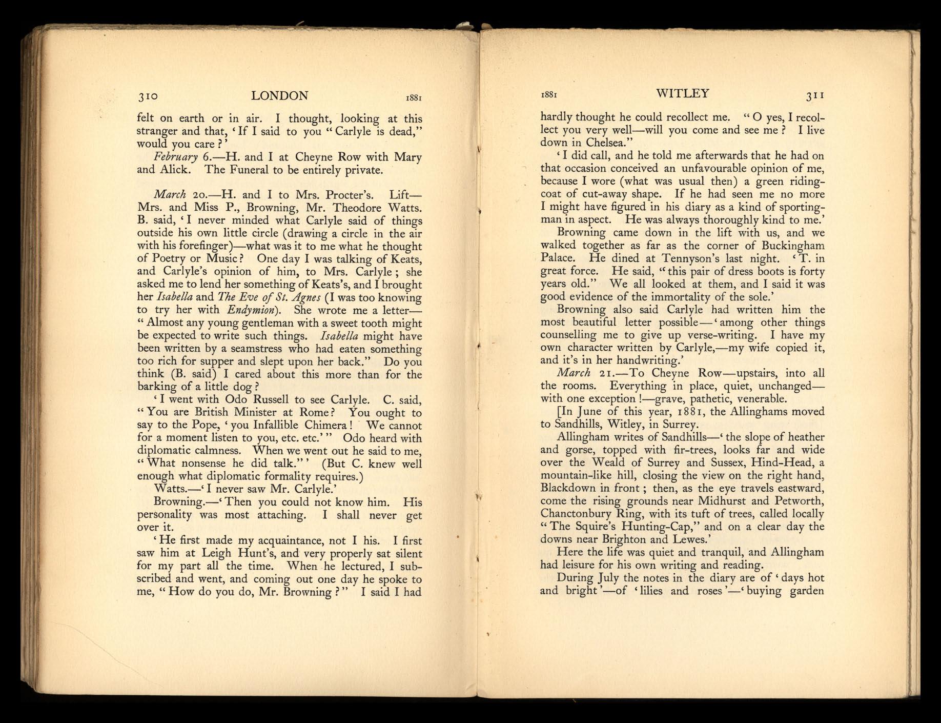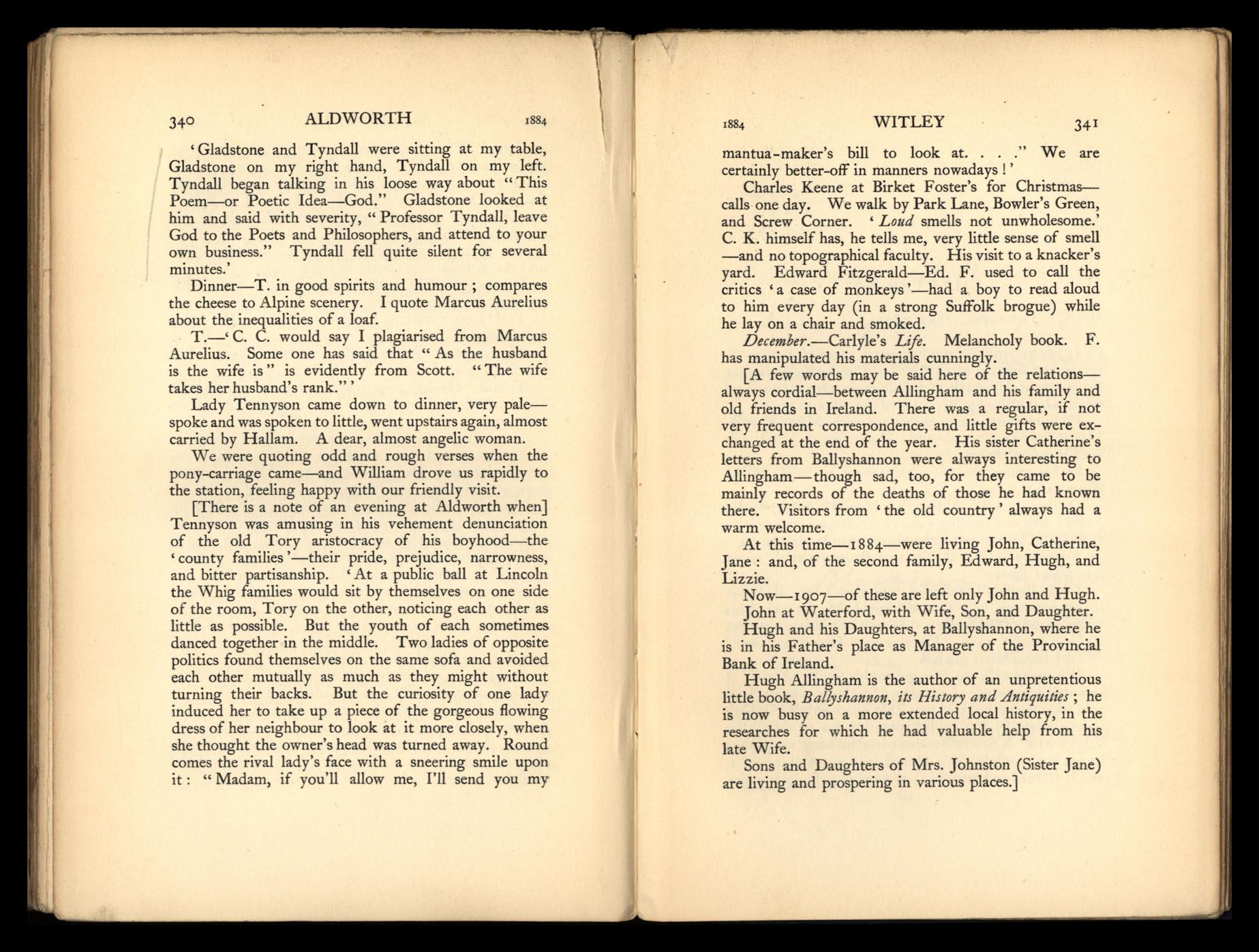 [The story of William A11ingham's life, in strict autobiographic form, ends at this point. He wrote out, from his note-books, conversations he had had with interesting men, evidently with the intention of incorporating them in his account, but beyond this date nothing was completed.
