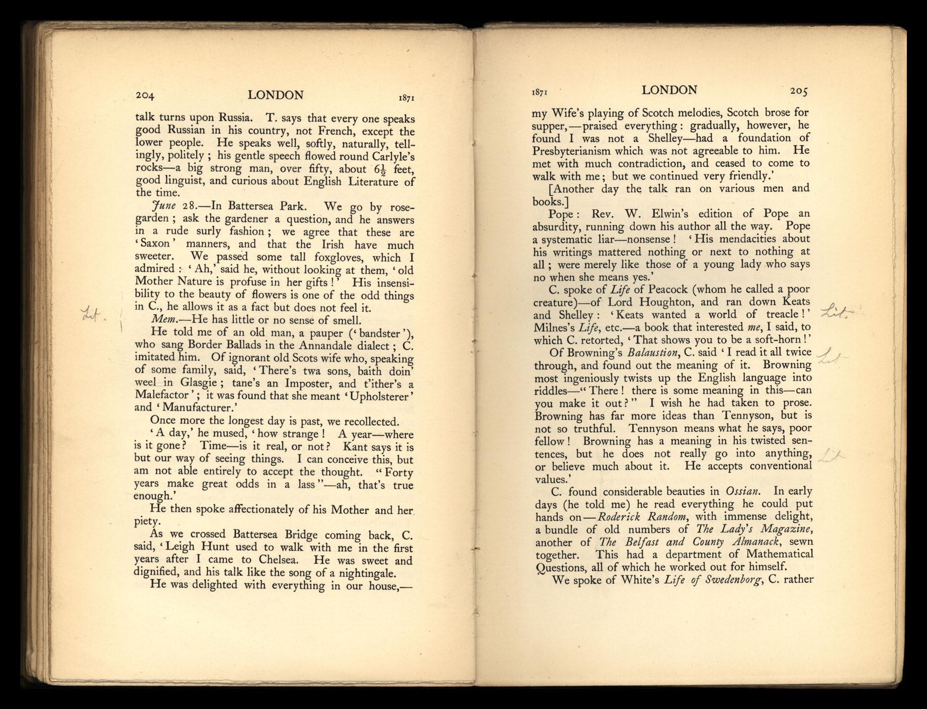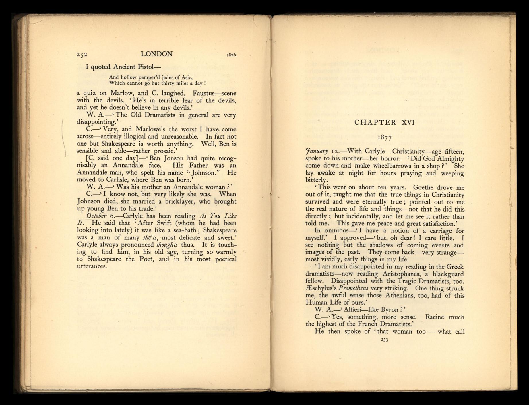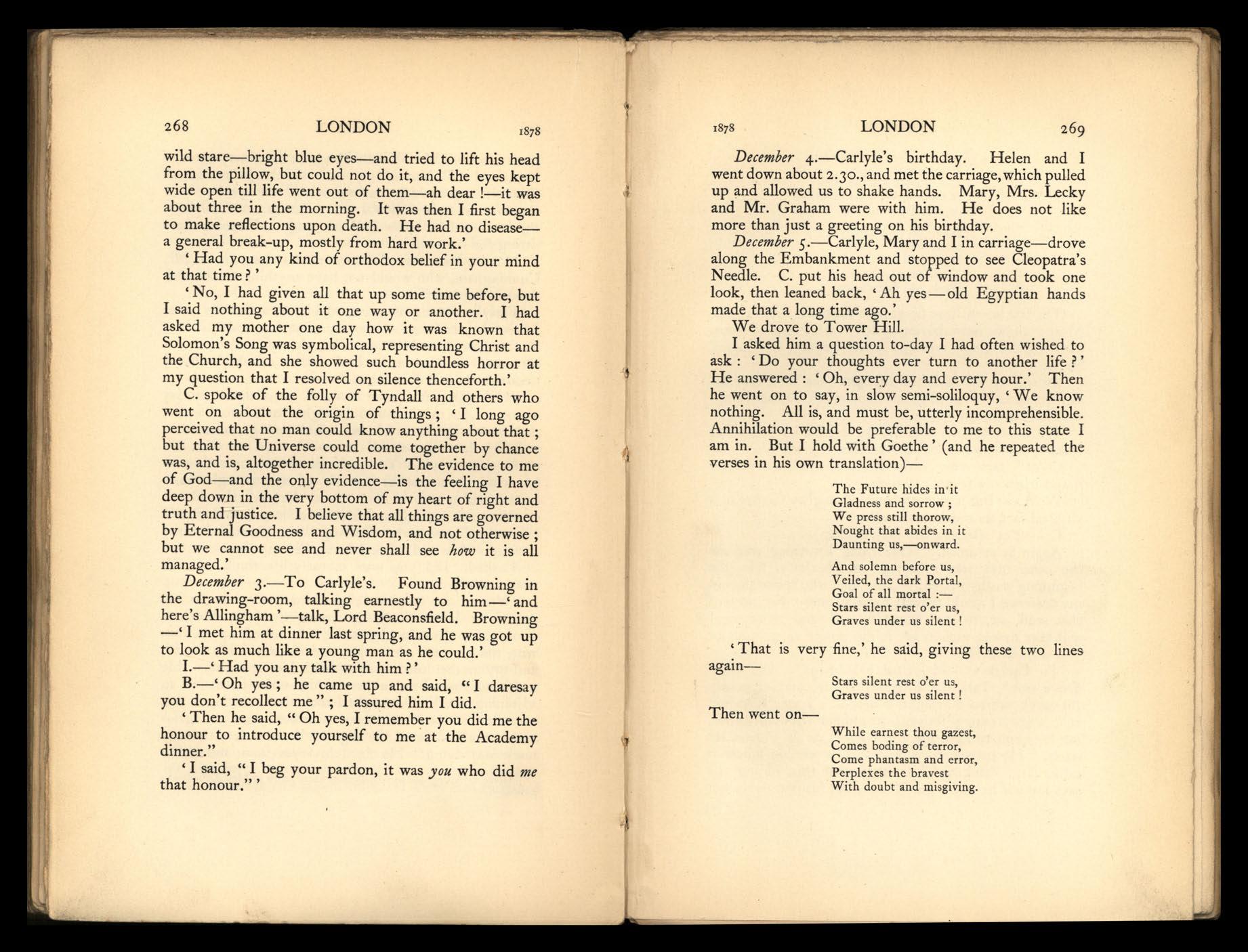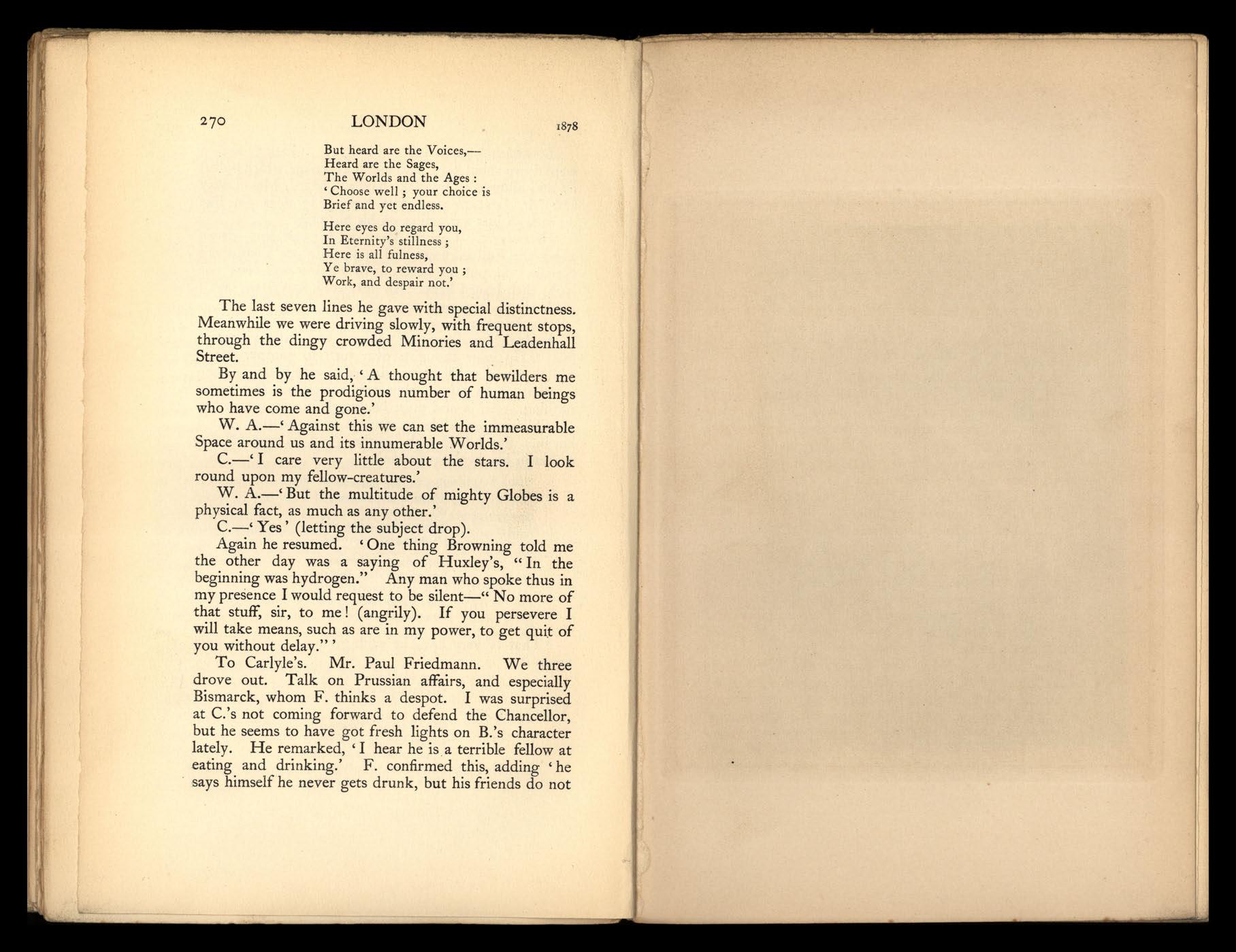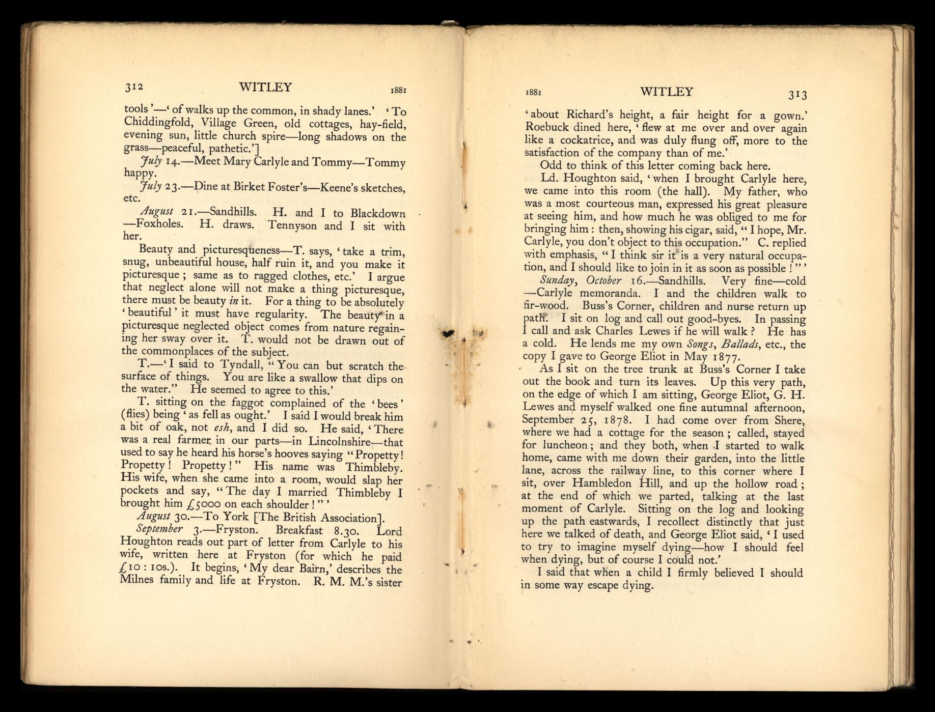 [The story of William A11ingham's life, in strict autobiographic form, ends at this point. He wrote out, from his note-books, conversations he had had with interesting men, evidently with the intention of incorporating them in his account, but beyond this date nothing was completed.