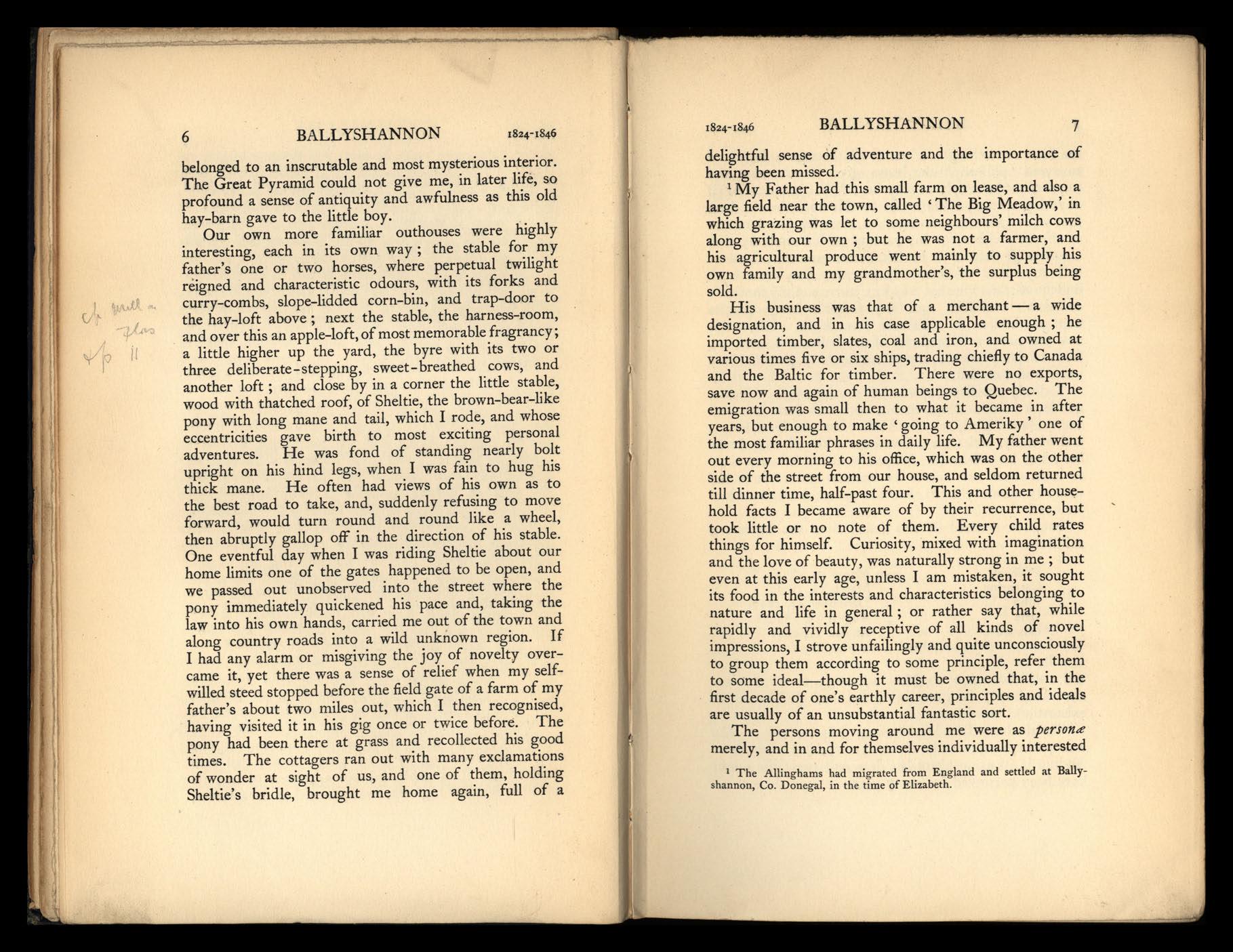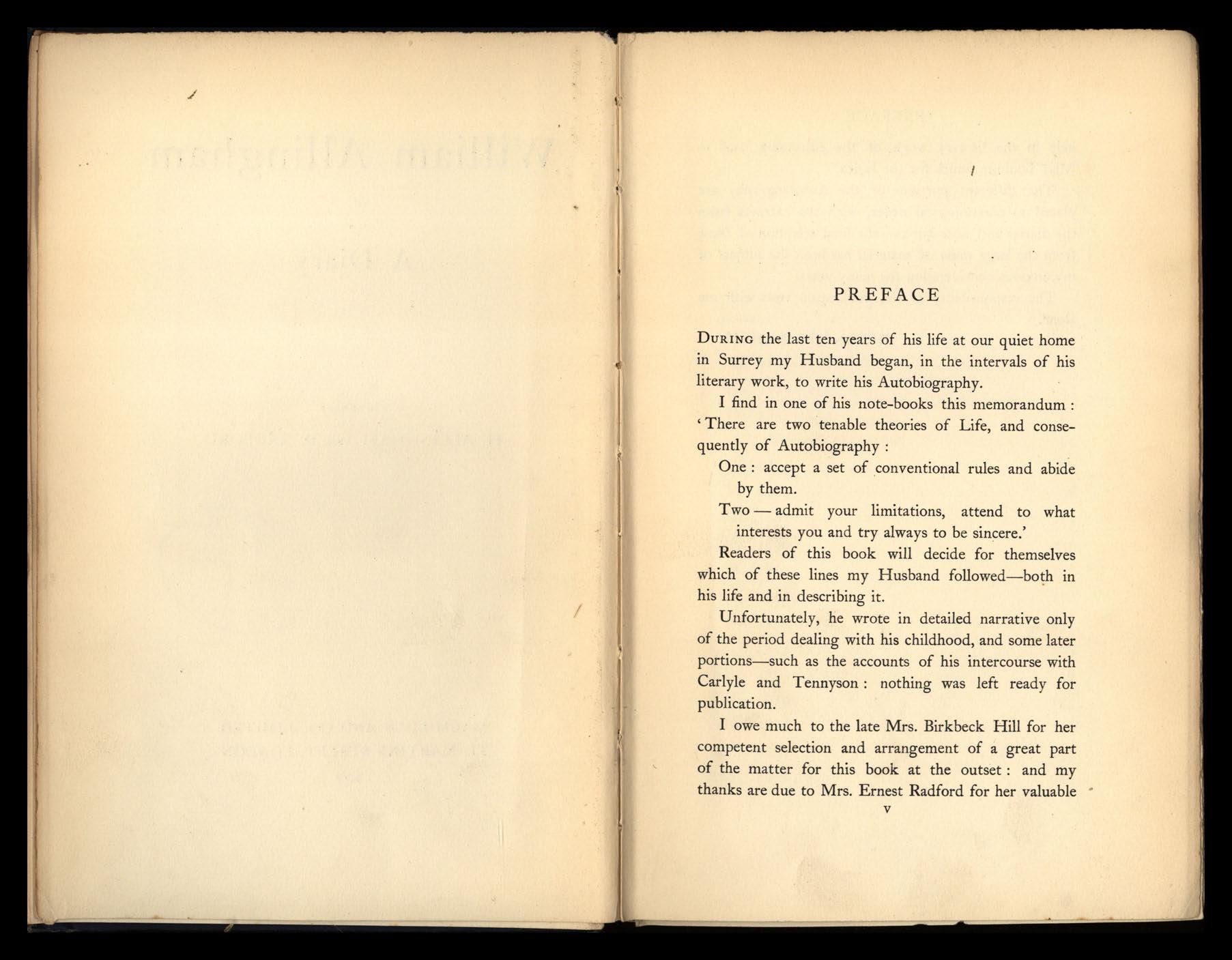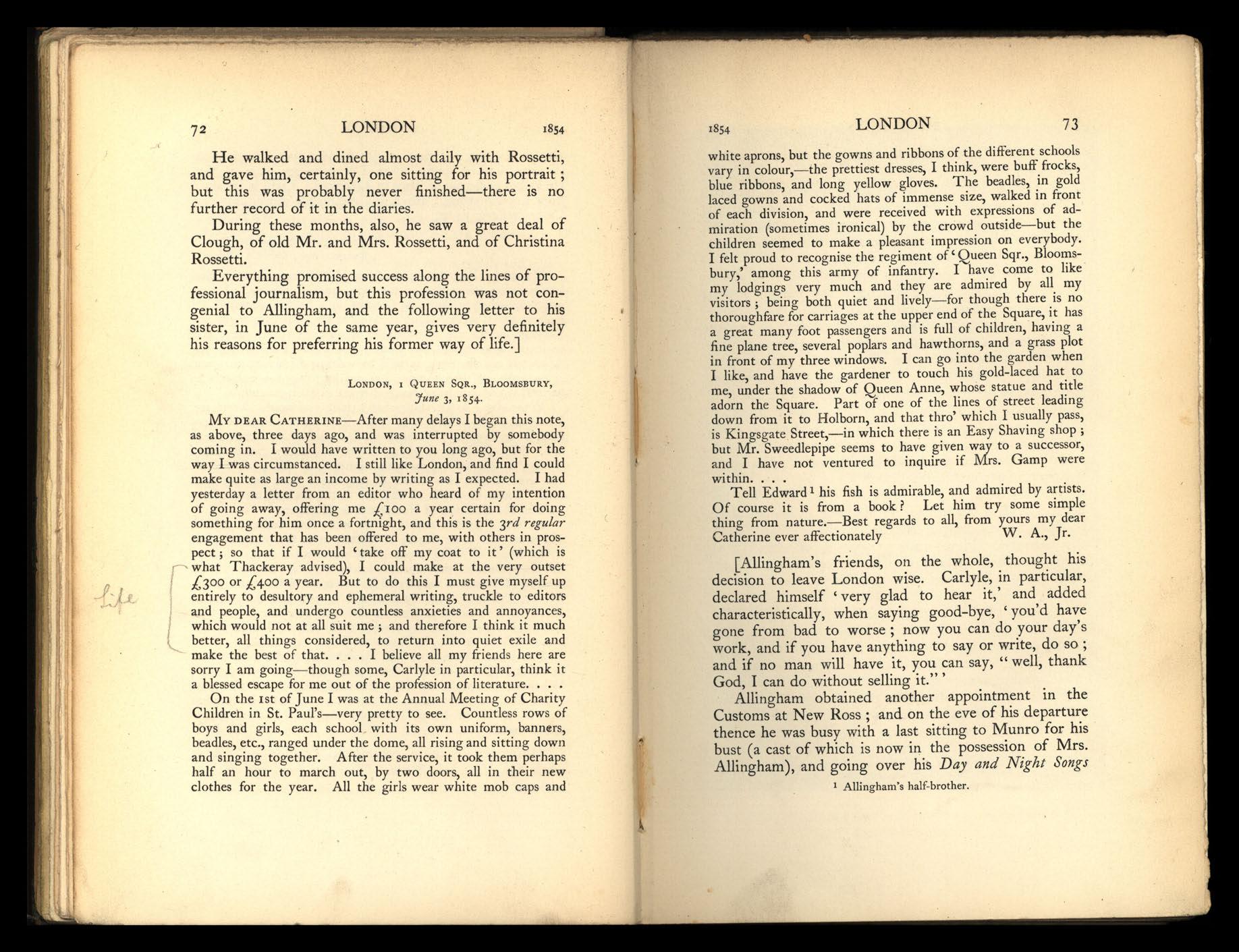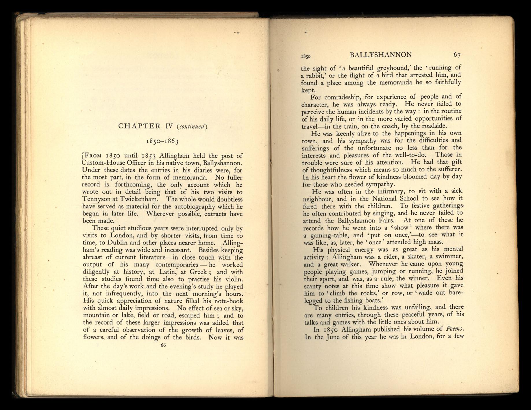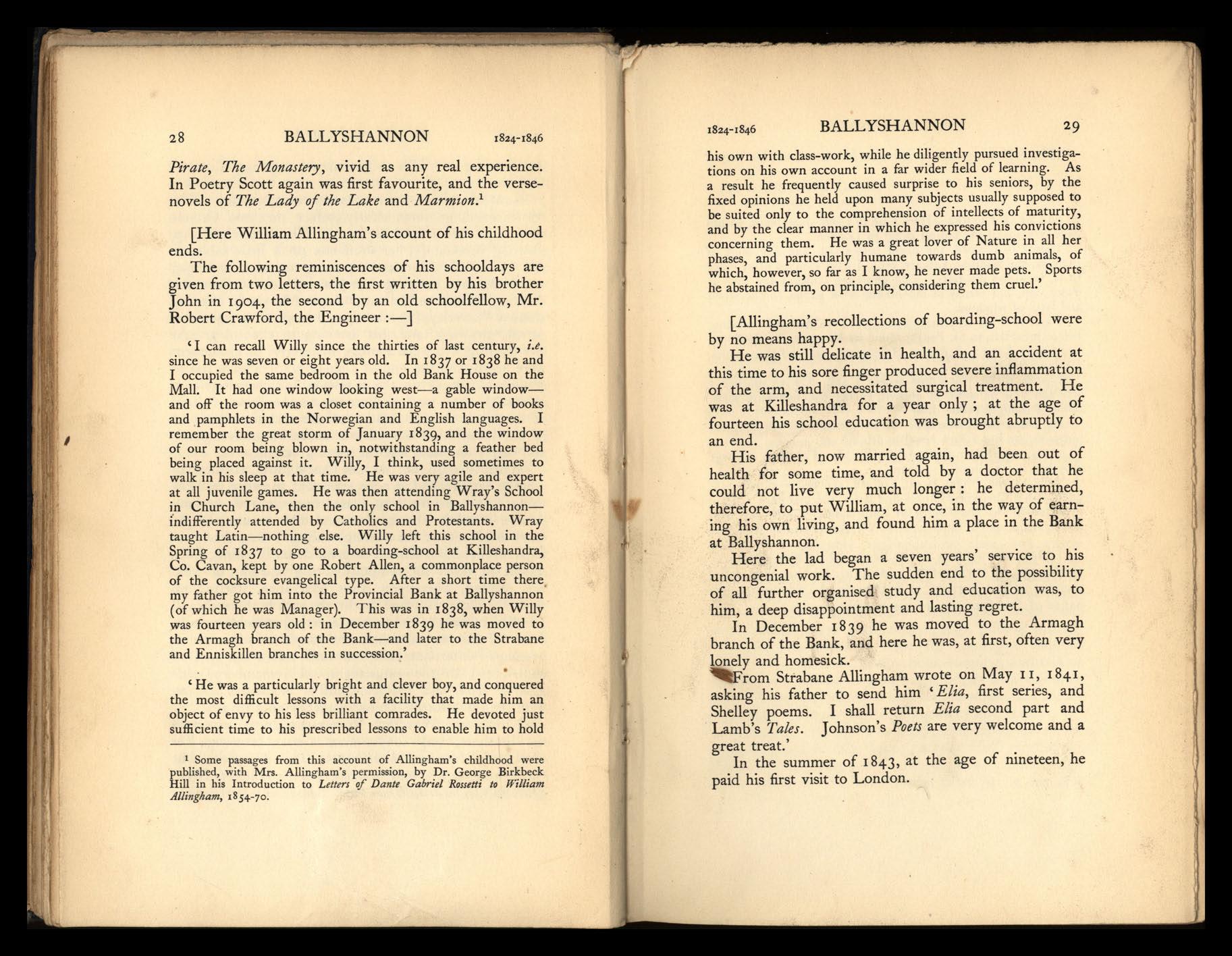 1 Some passages from th is account of Allin g ham's childhood were publi shed , with Mrs . Allin g ham s p er mission, by Dr. Georg e Birkbeck Hill in his Introduction to L etters of D a nte Gabriel Rossetti to William Allingham, 1854- 70