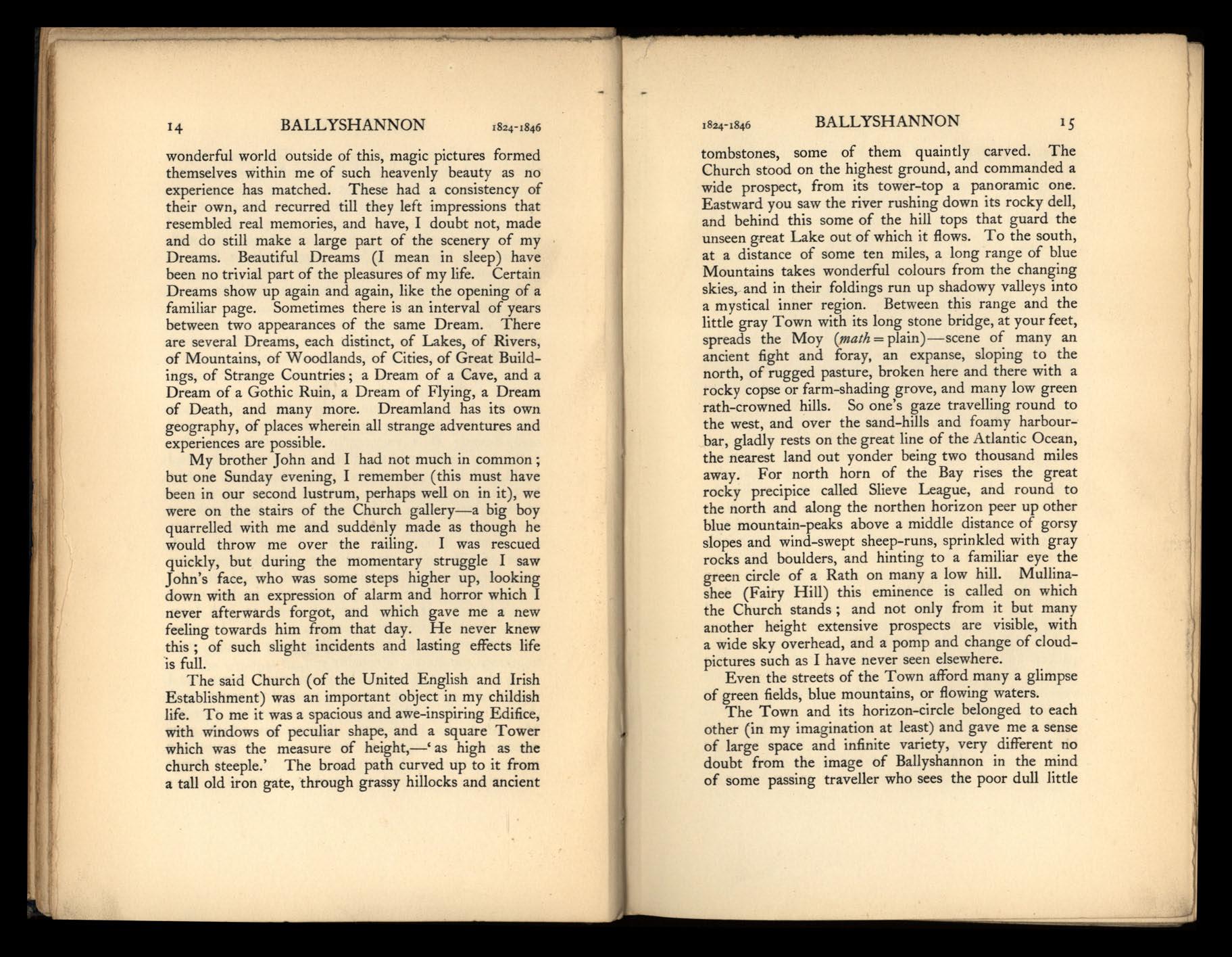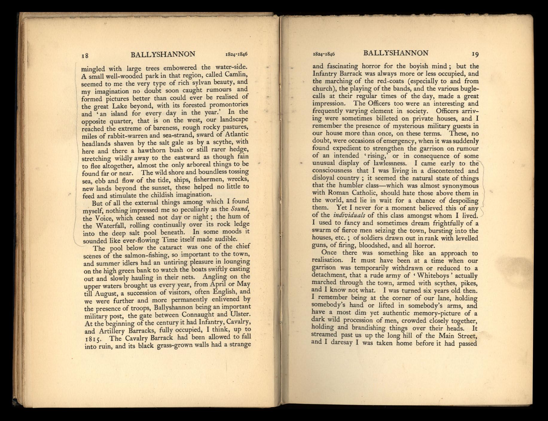 The Town and its horizon-circle belonged to each other (in my imagination at least) and gave me a sense of large space and infinite variety, very different no doubt from the image of Ballyshannon in the mind of some passing traveller who sees the poor dull little