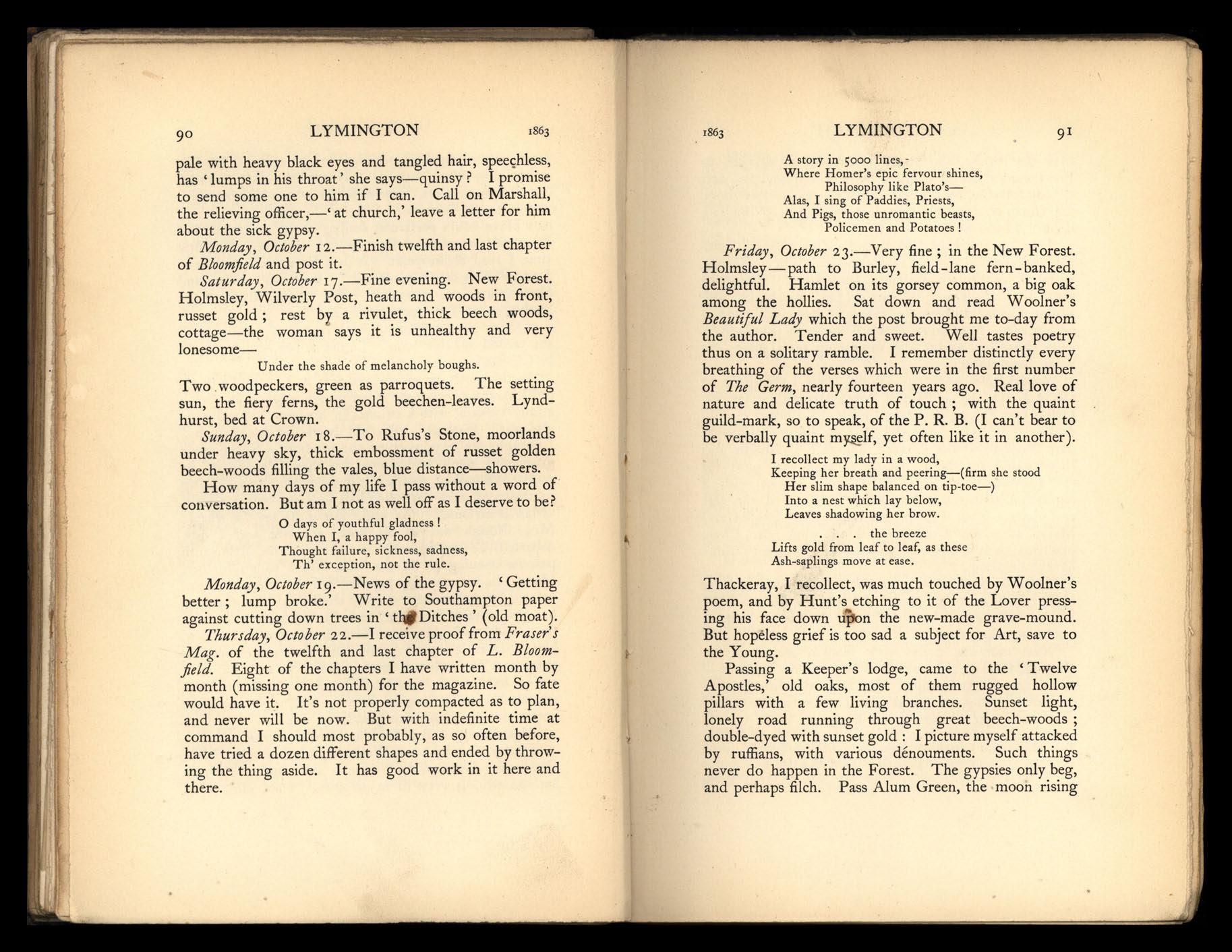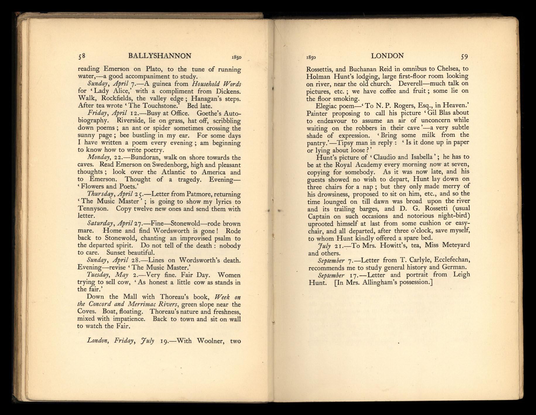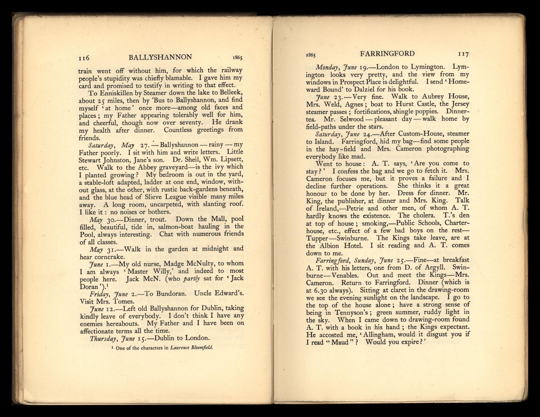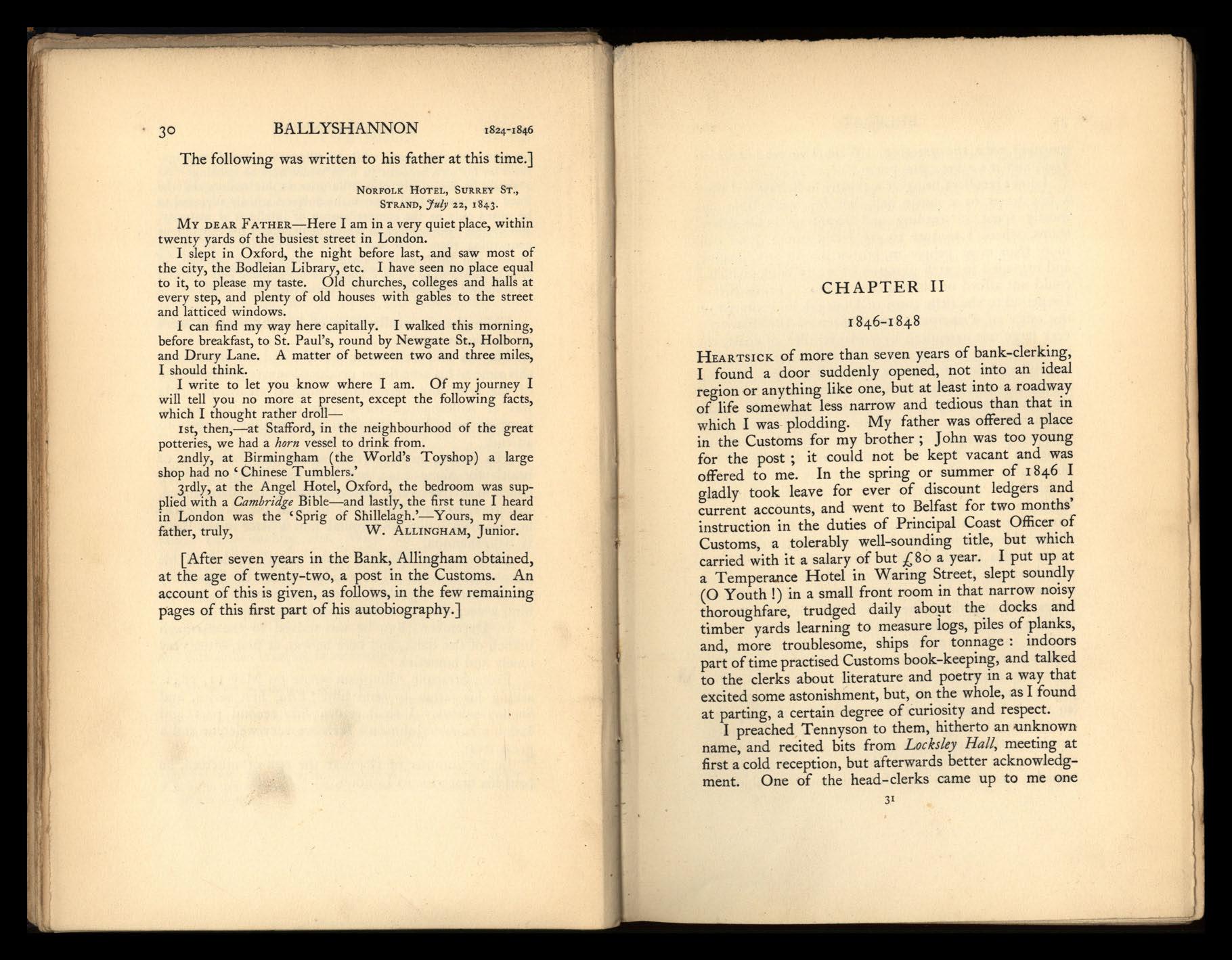 3rd1y, at the Angel Hotel, Oxford, the bedroom was supplied with a Cambridge Bible-and lastly, the first tune I heard in London was the 'Sprig of Shillelagh.'- Yours, my dear father, truly, W. ALLINGHAM, Junior.