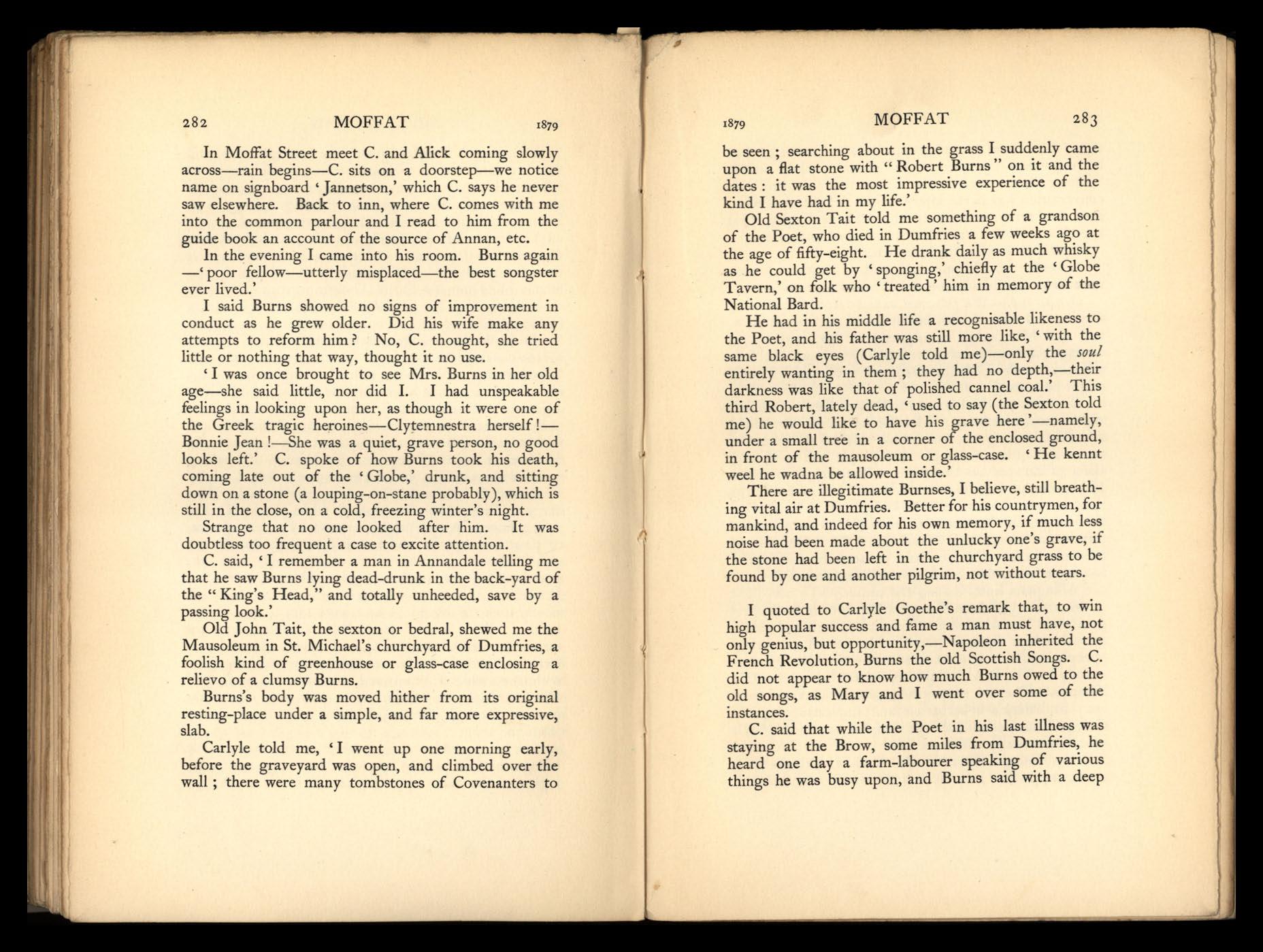 inscription, except 'SACRED' in a line by itself at the top, in Old English letters-not even the chief name, which was a lady's, (a remote and very slightly interesting relation or connection of ours, she must have been) nor the import of those Roman symbols which so ingeniously disguise a date to modern eyes. The wording no doubt was highly conventional, as nearly as possible meaningless, and felt ' by the child to be a sort of dull puzzle which after some attempts it was better to avoid. Had it been verse, of even moderate quality, it would have fixed itself in my memory; with point, it would have stuck there for ever.