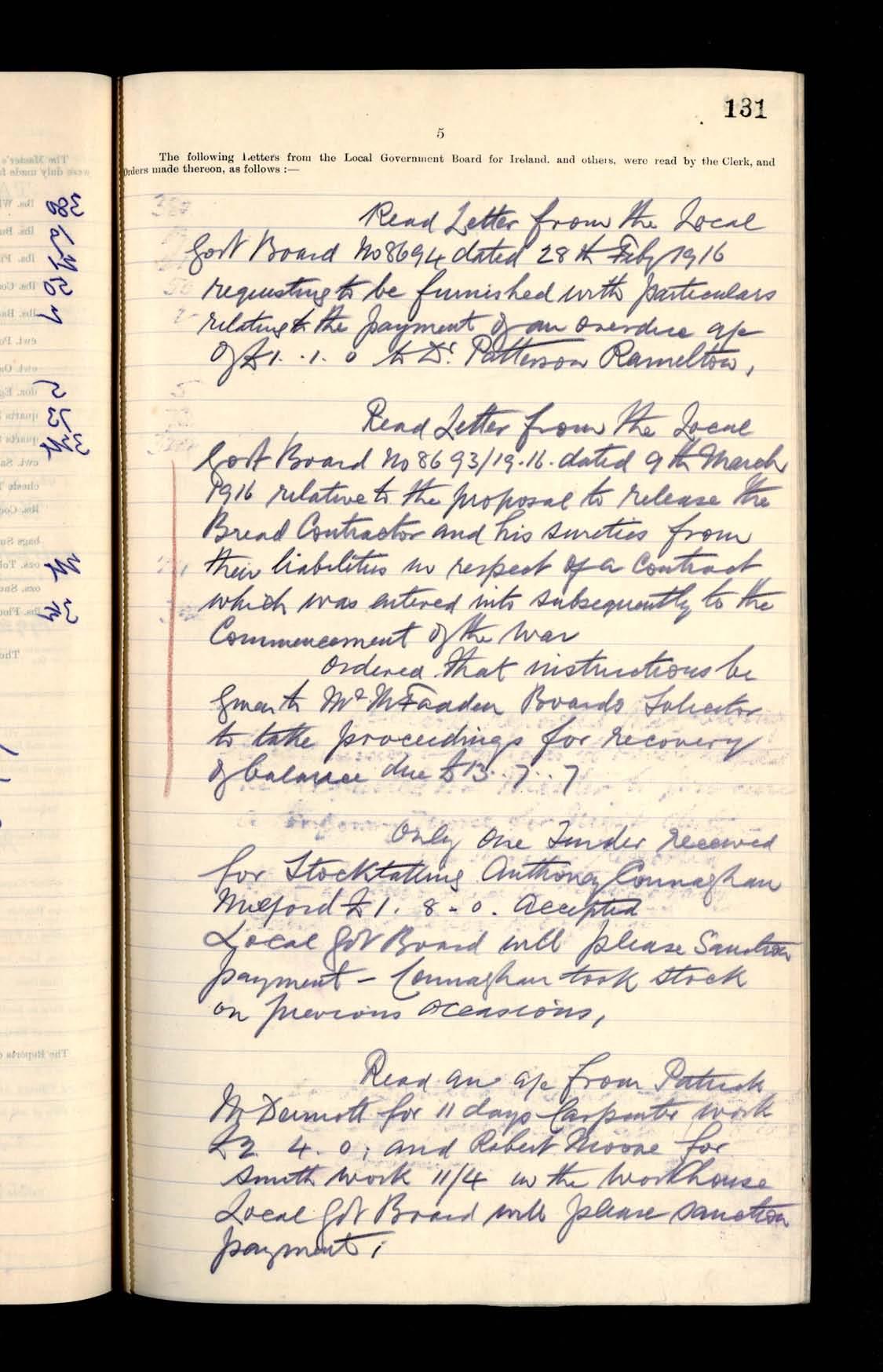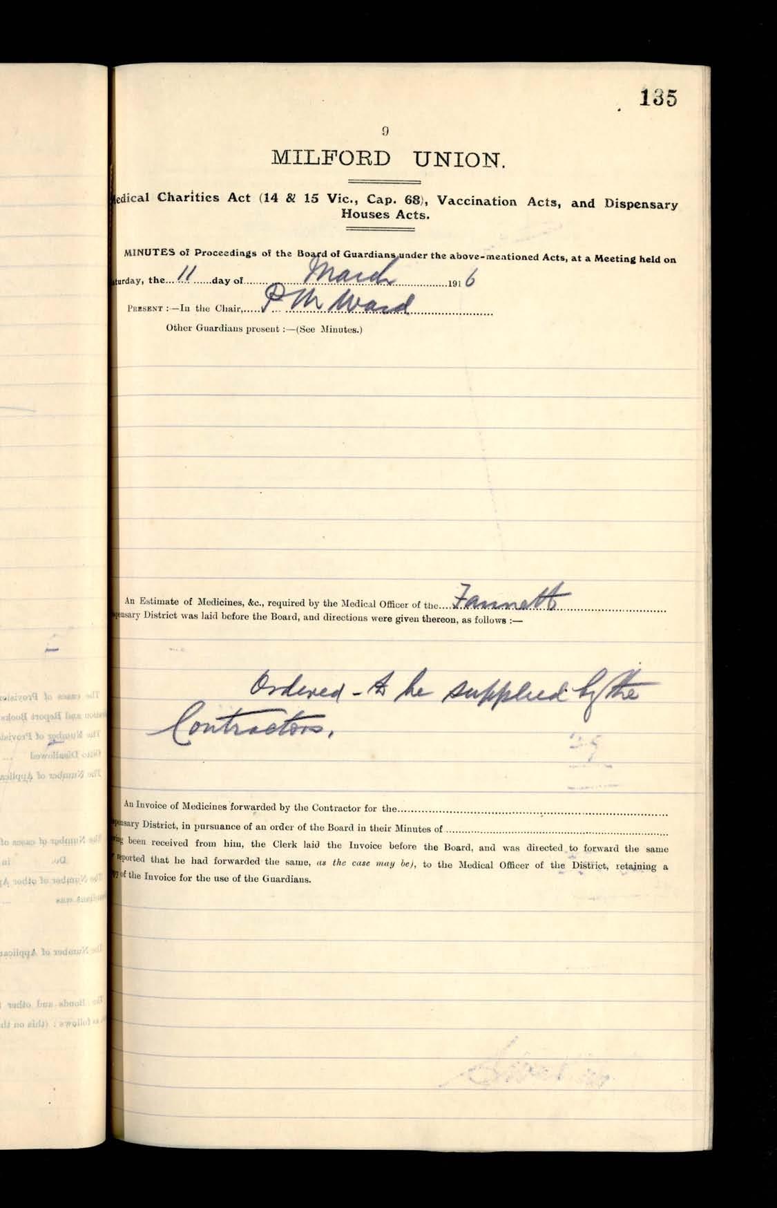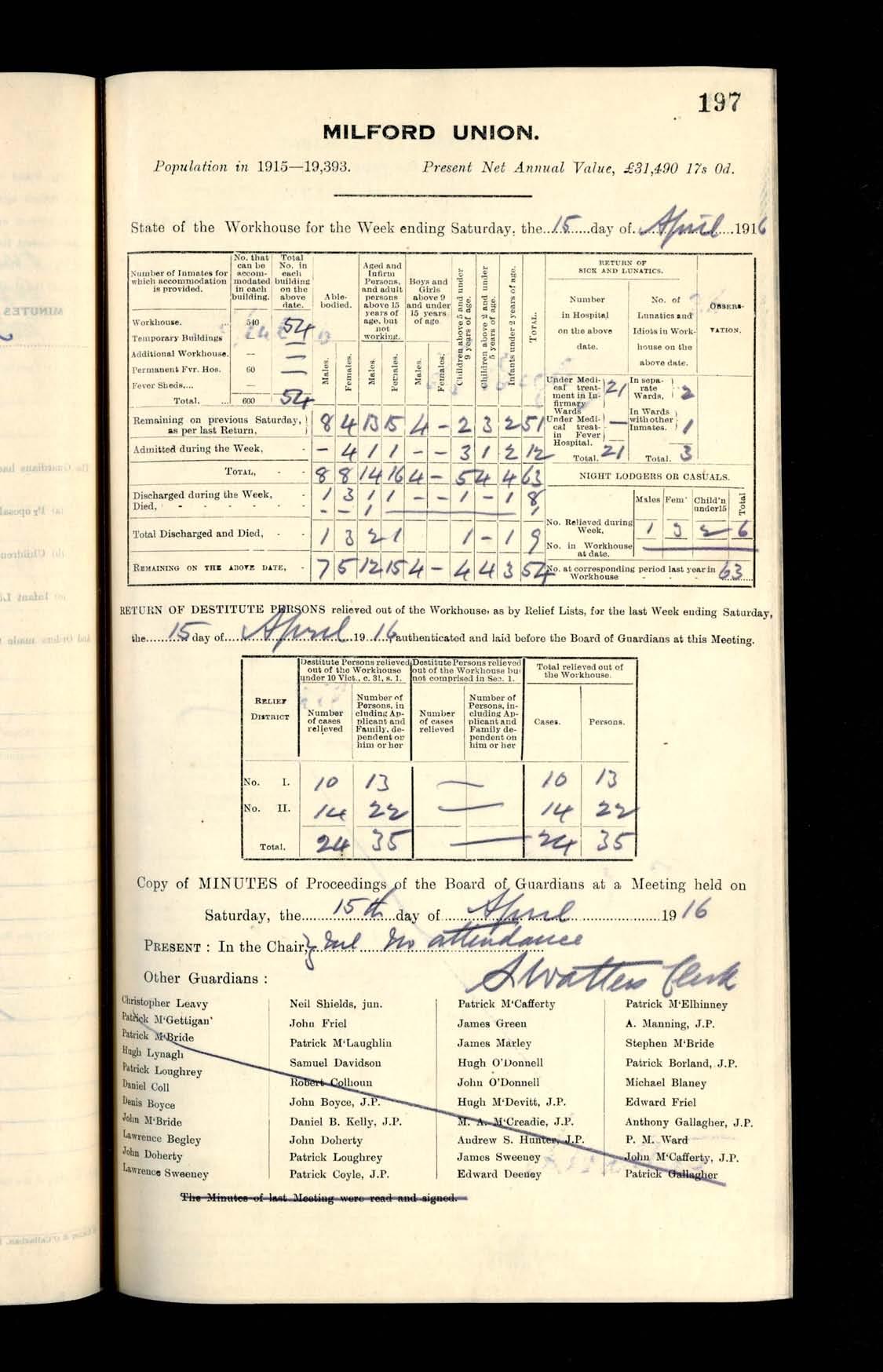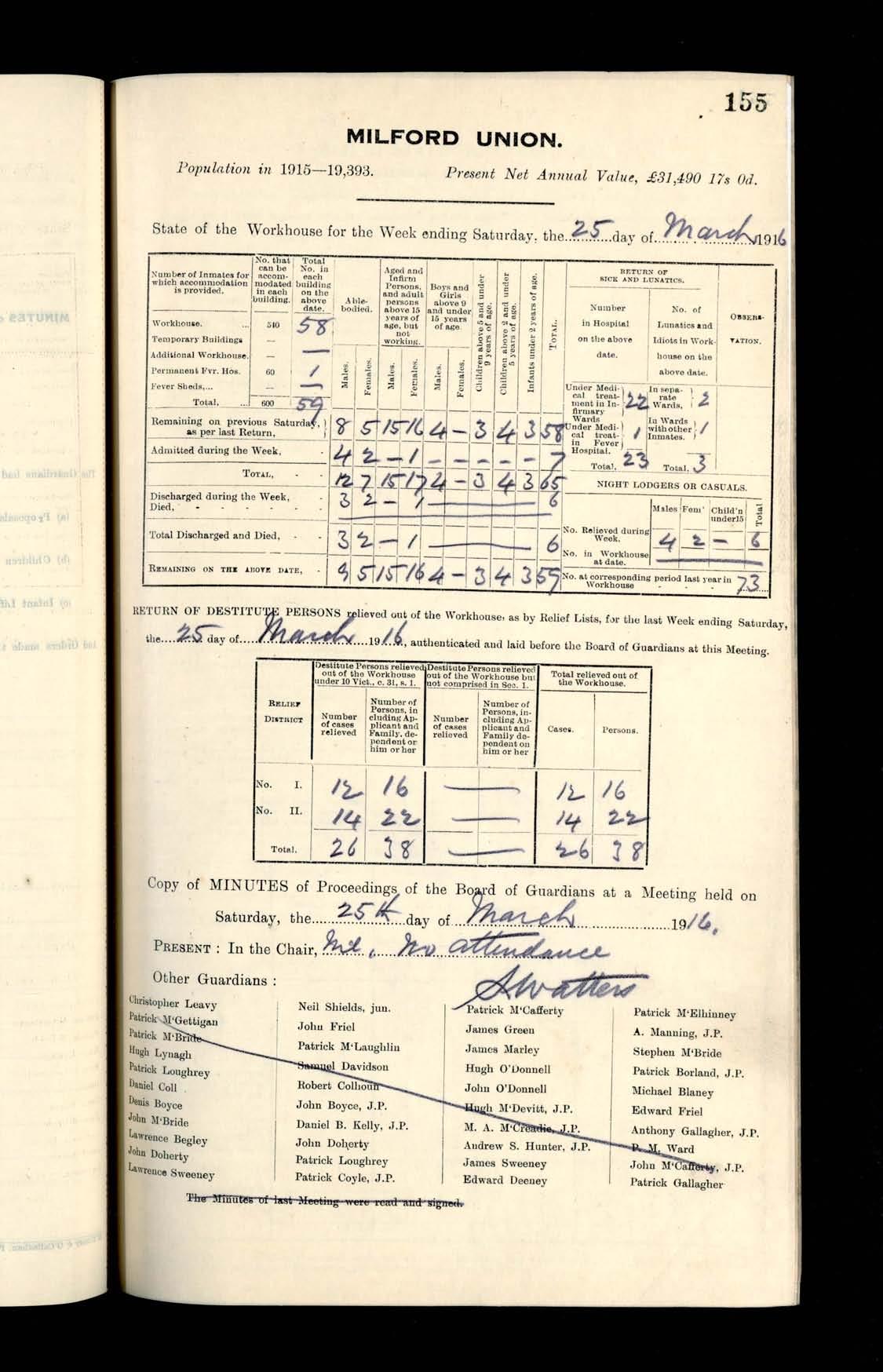 Milford Board of Guardians Minutes, 4 March - 15 April 1916