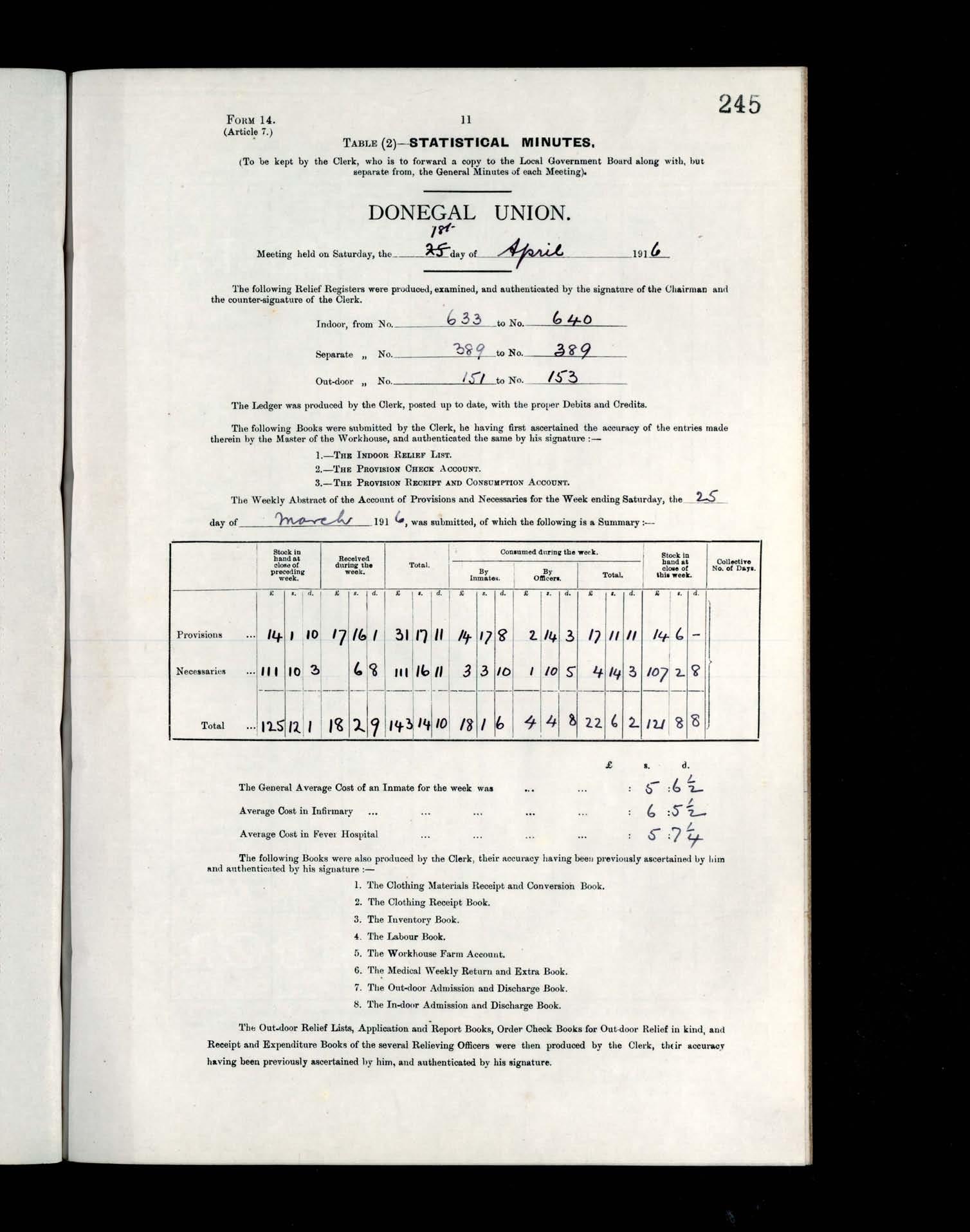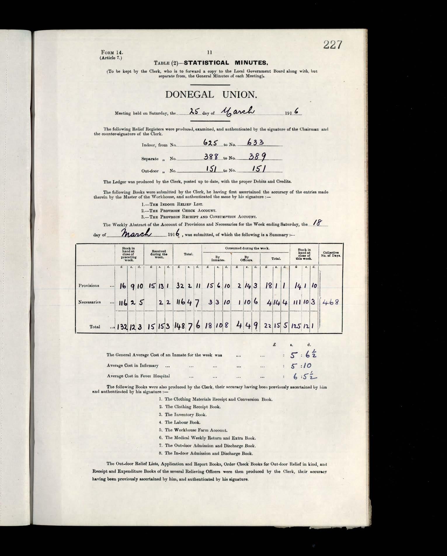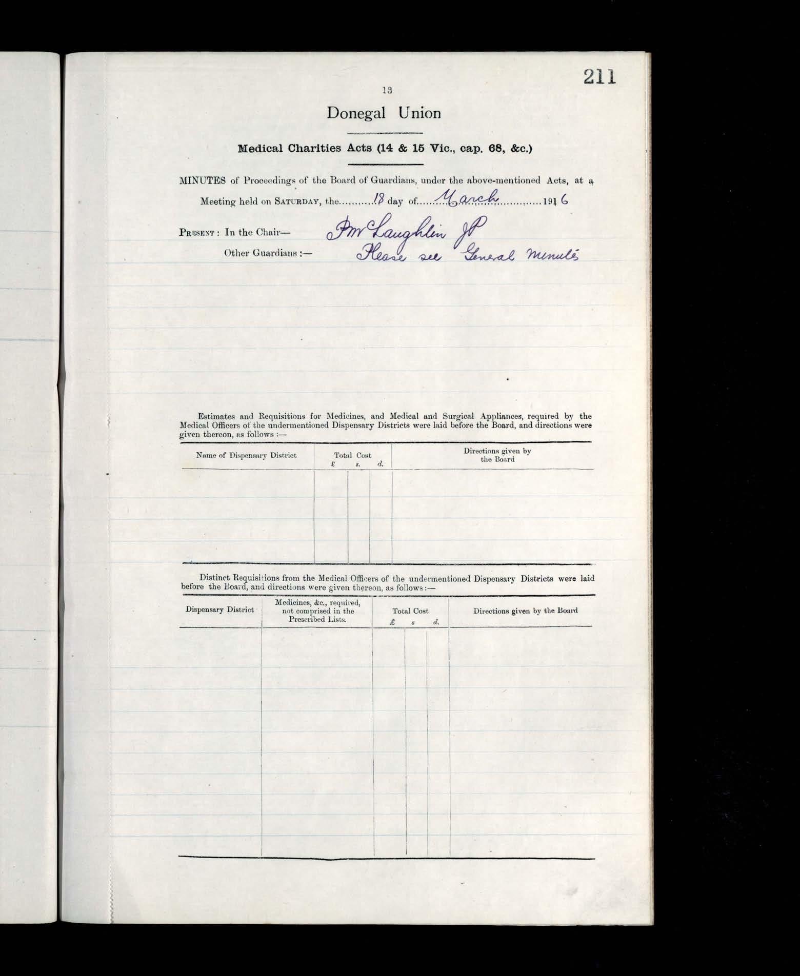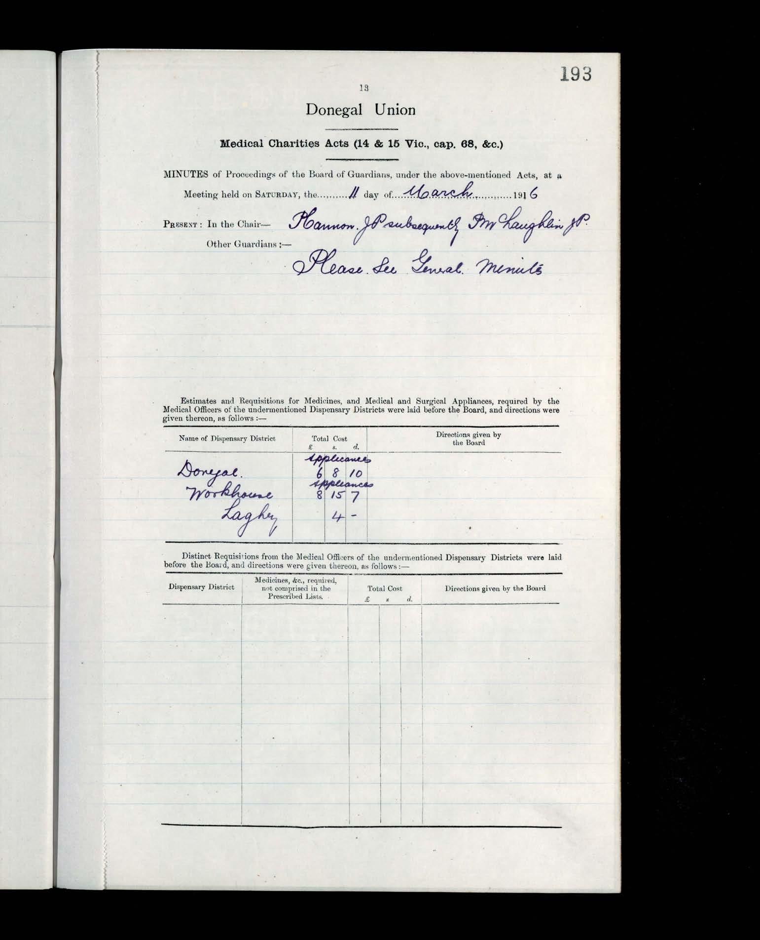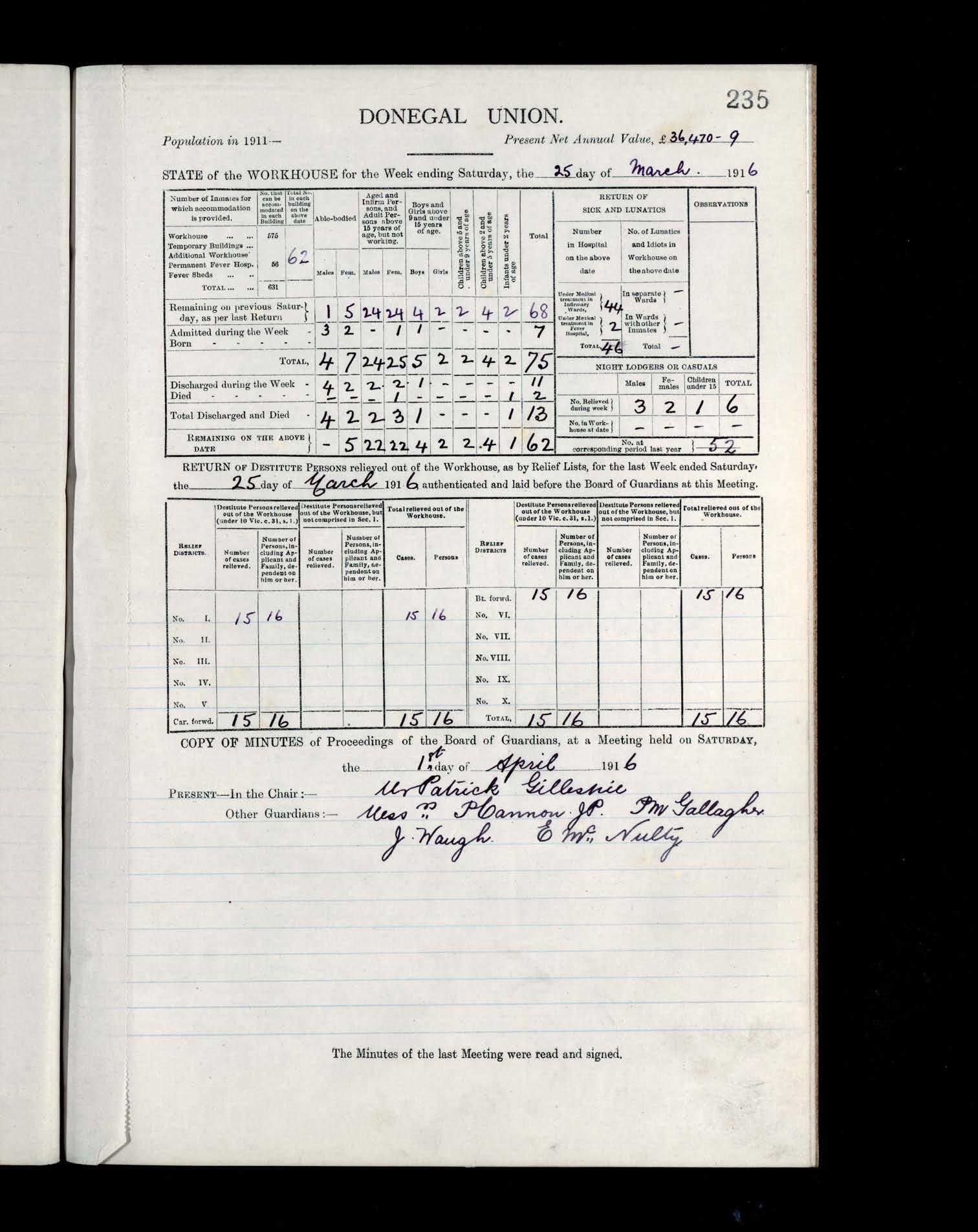 Donegal Board of Guardians, 4 March - 8 April 1916