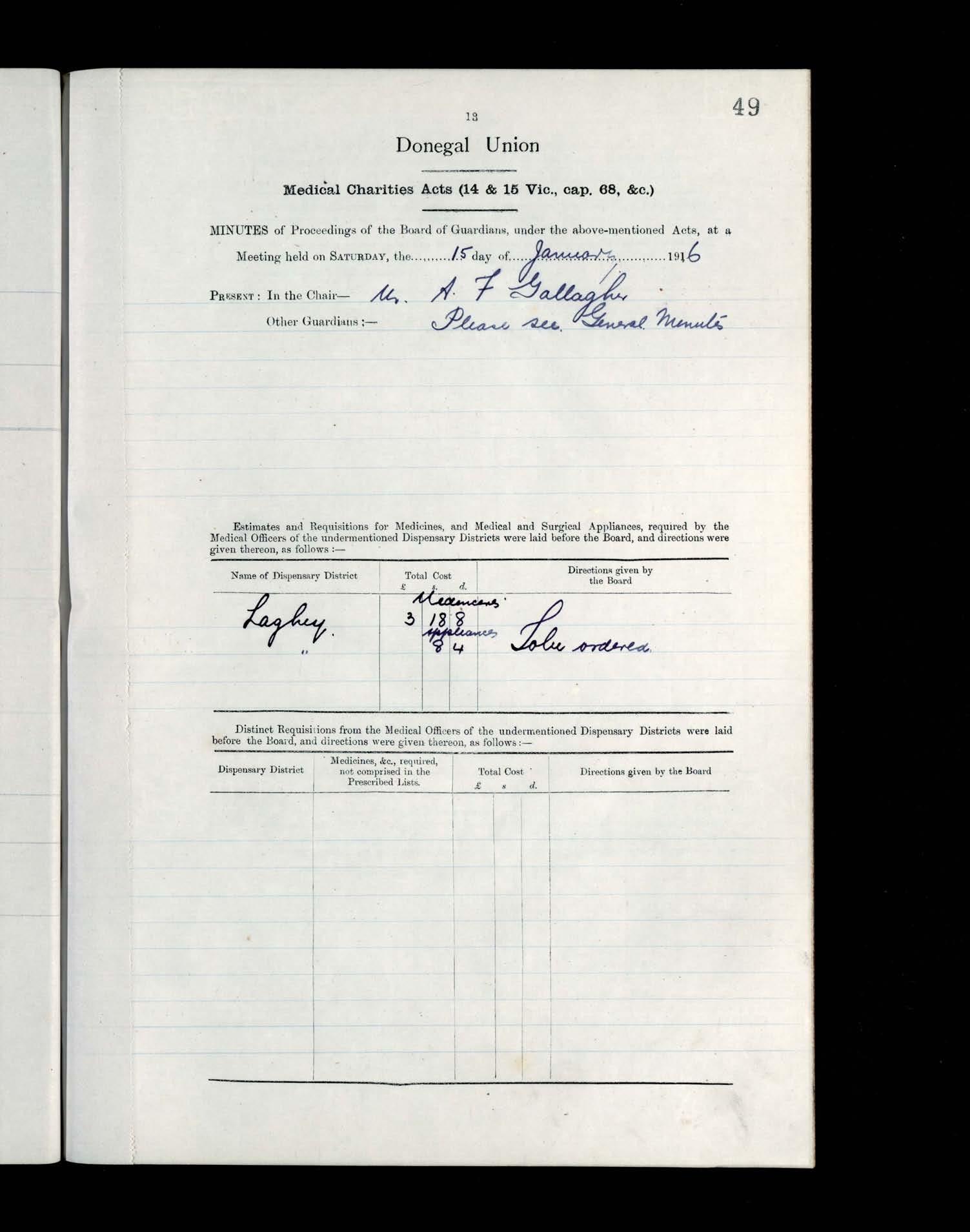 Donegal Board of Guardians Minutes, 1 - 29 Jan 1916