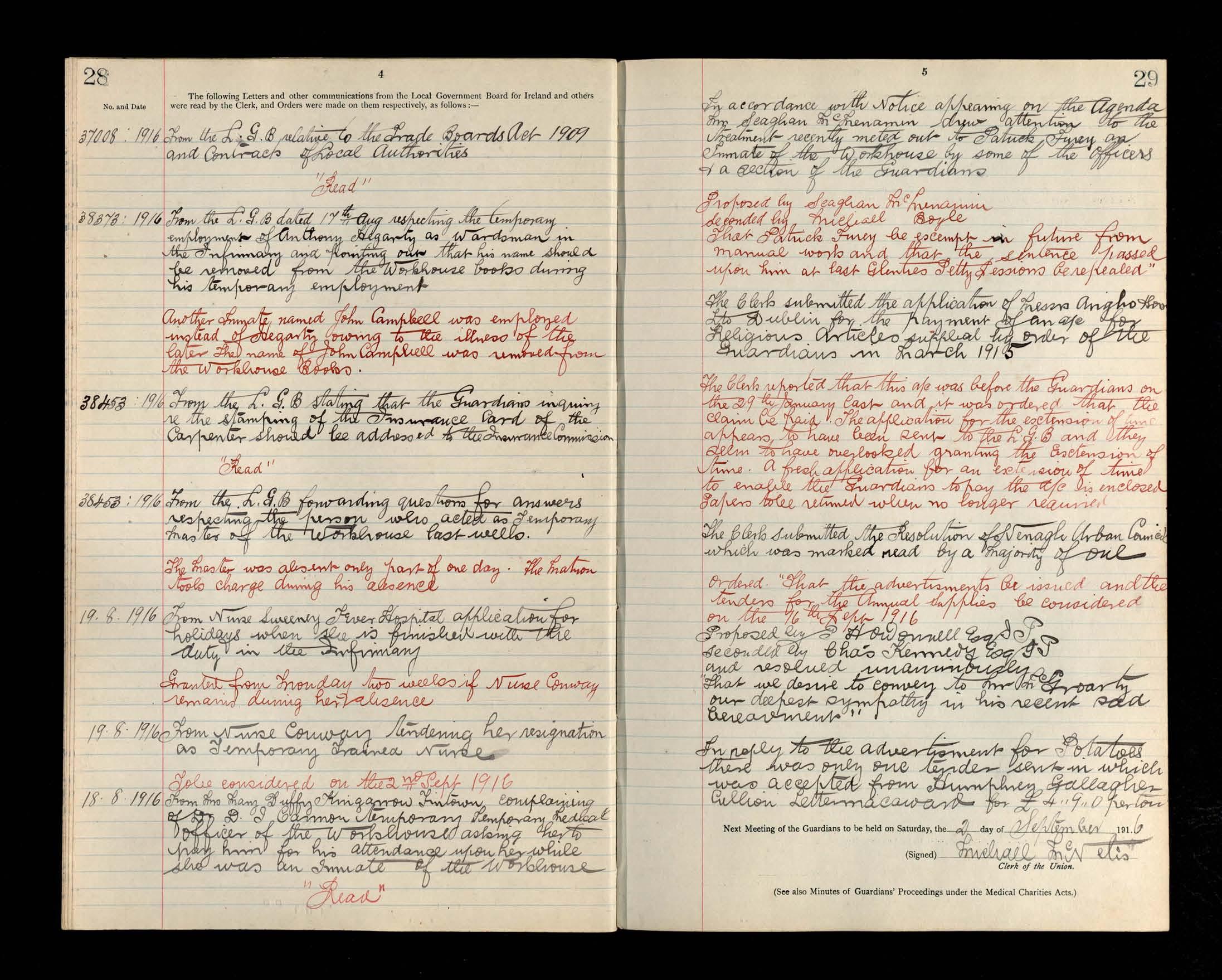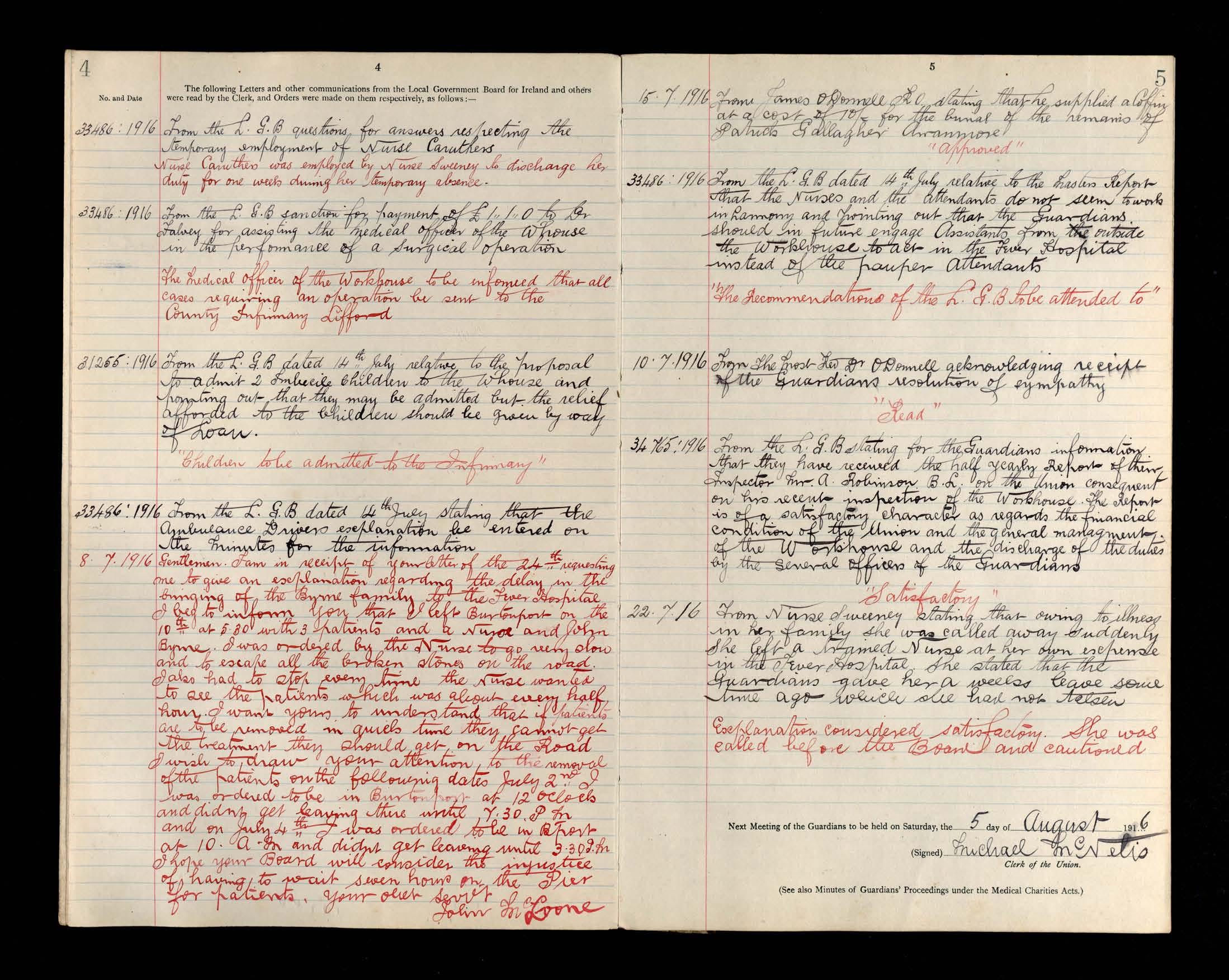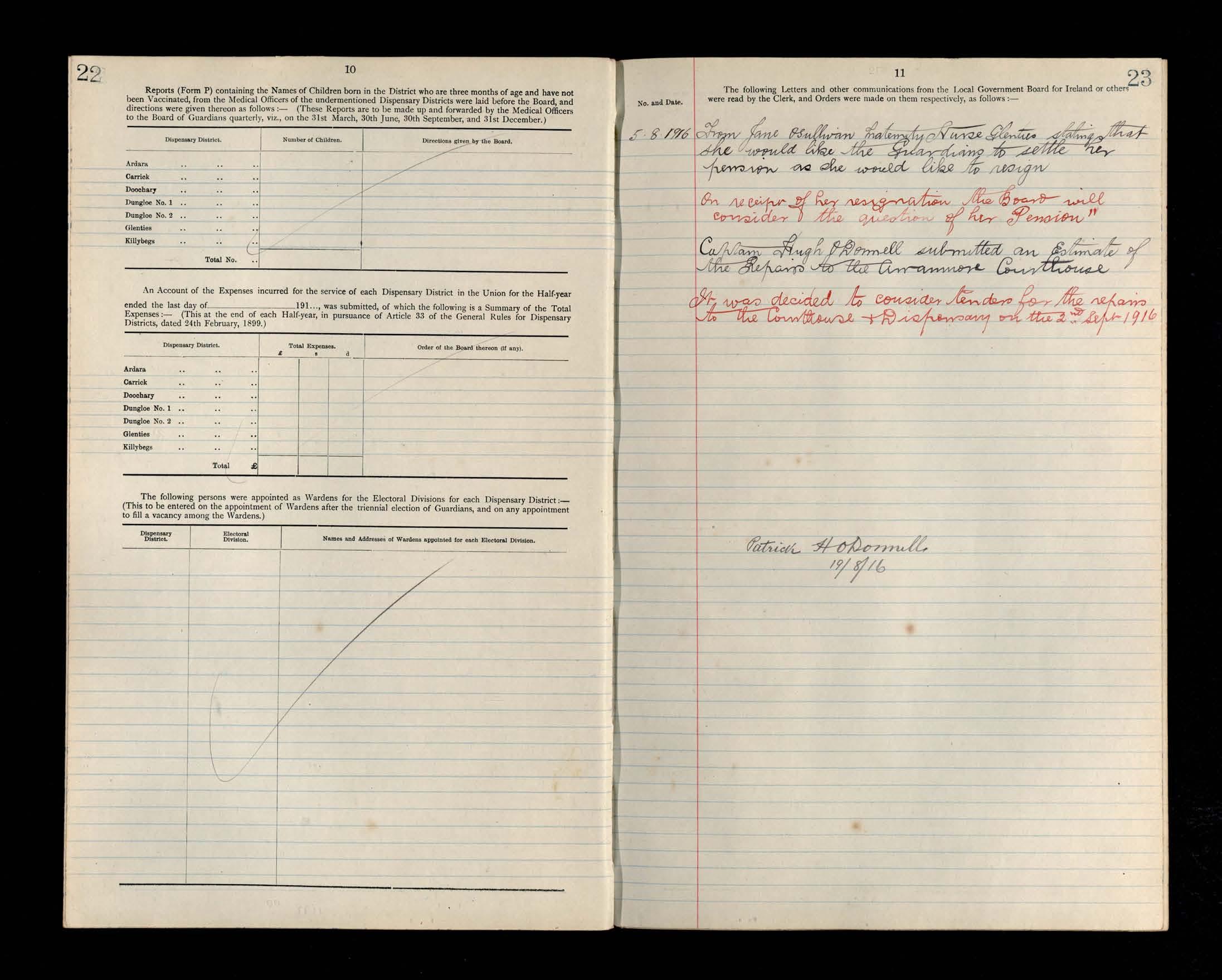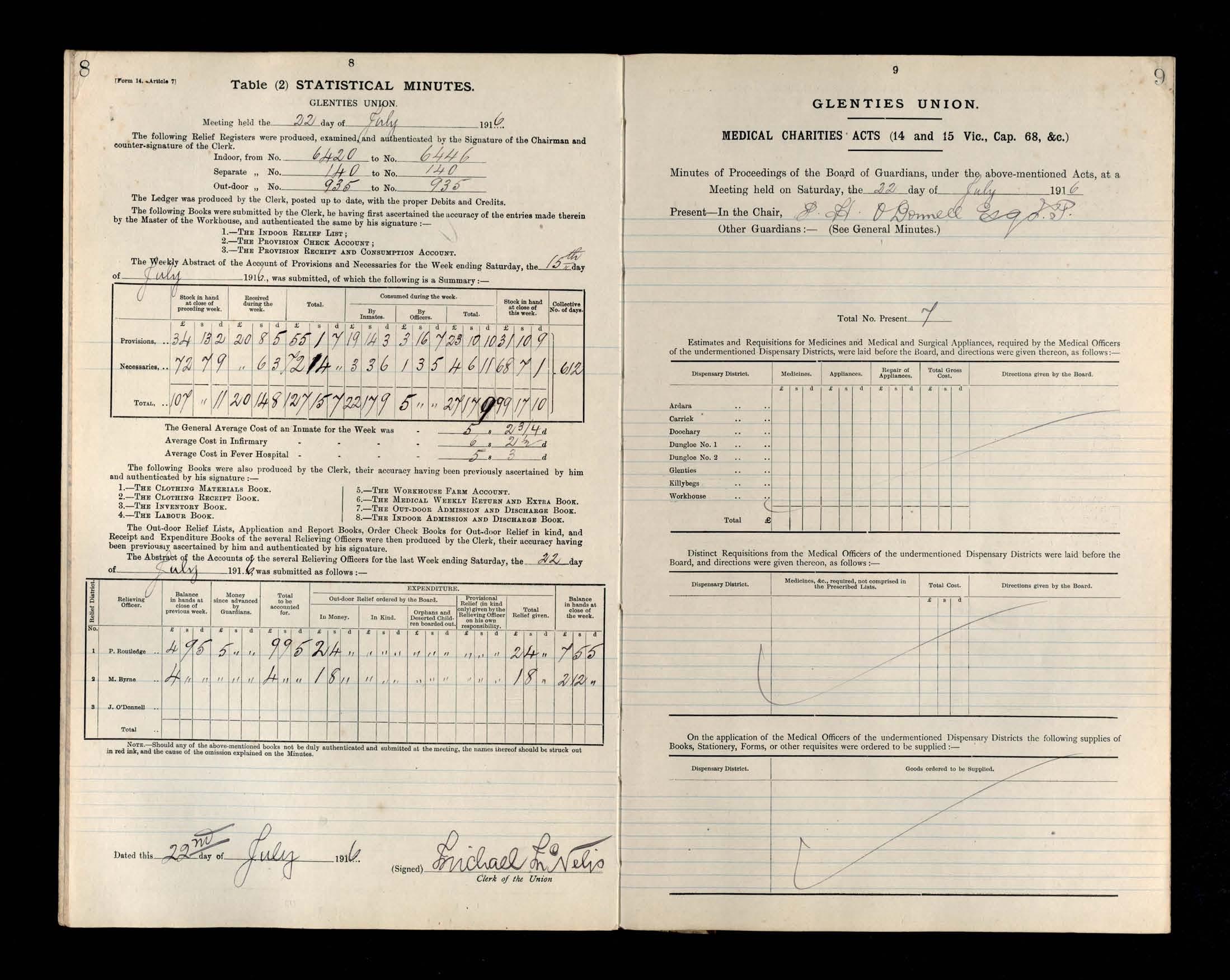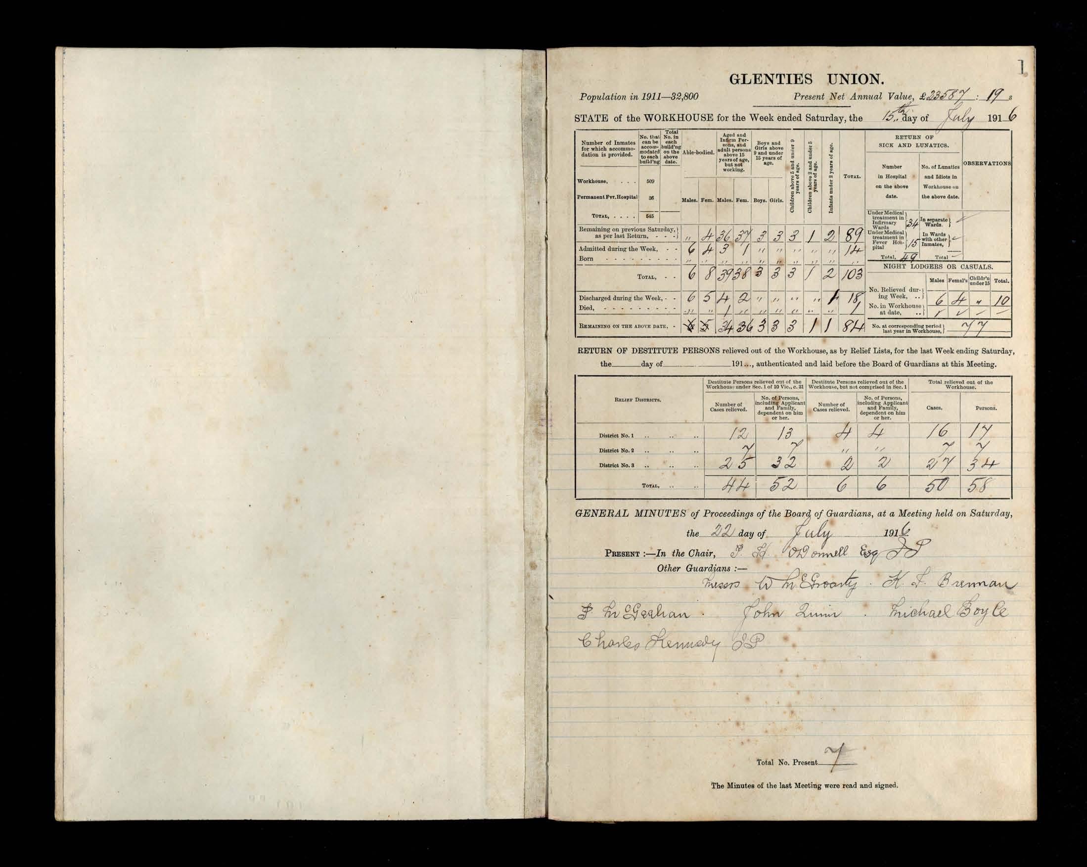Glenties Board of Guardians Minutes, 22 July 1916 to 28 October 1916