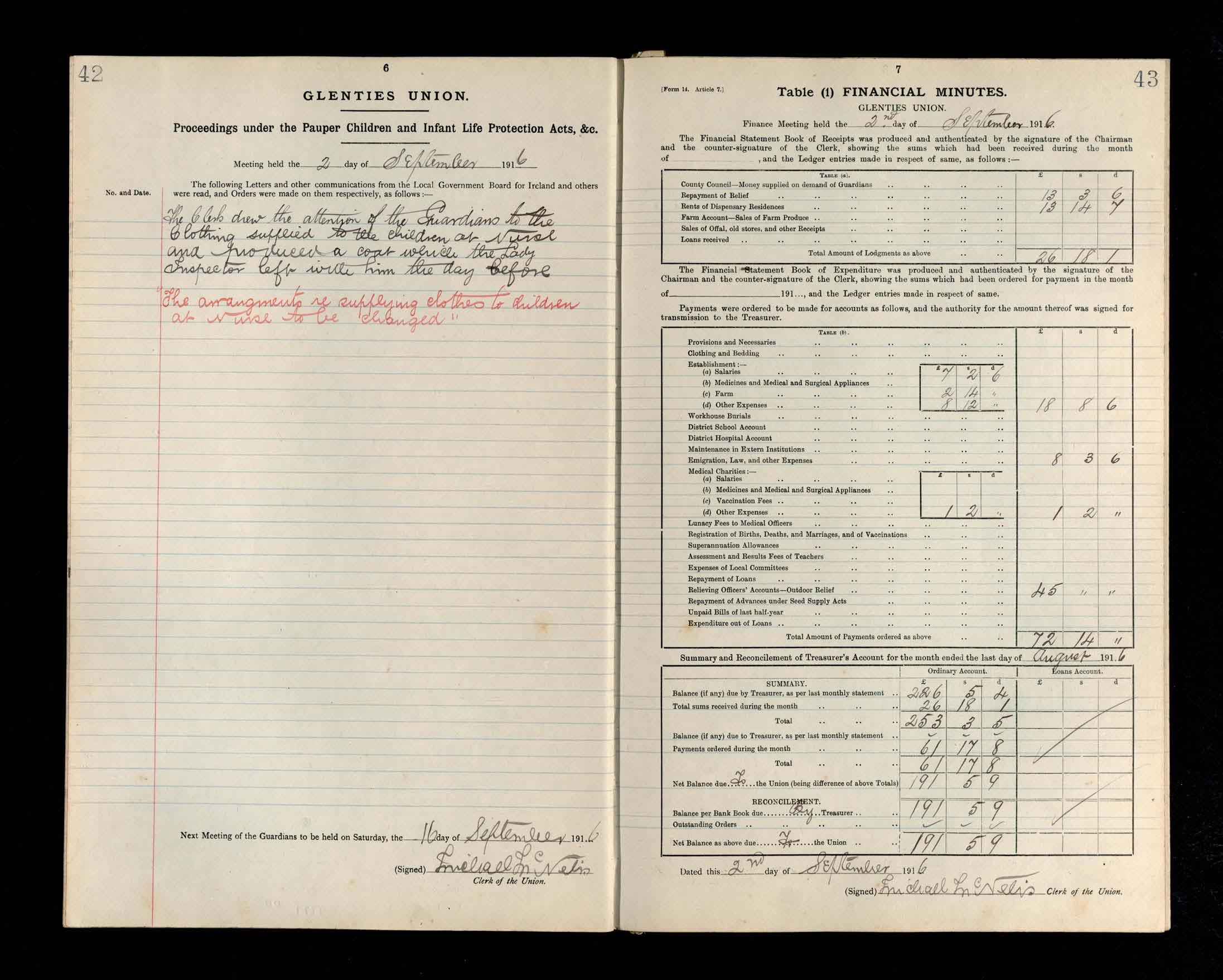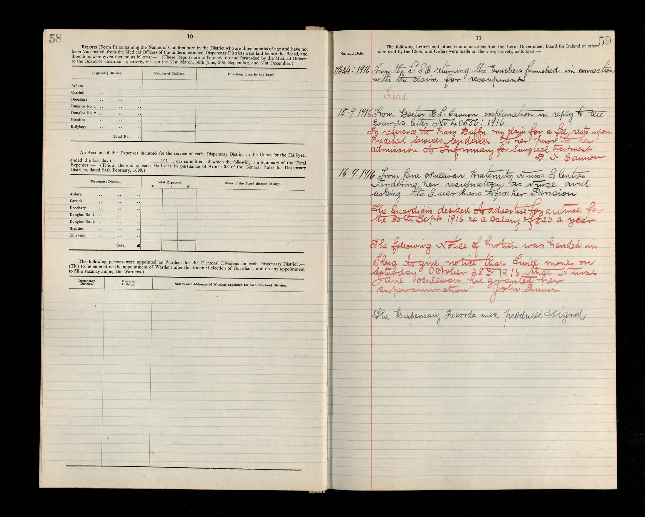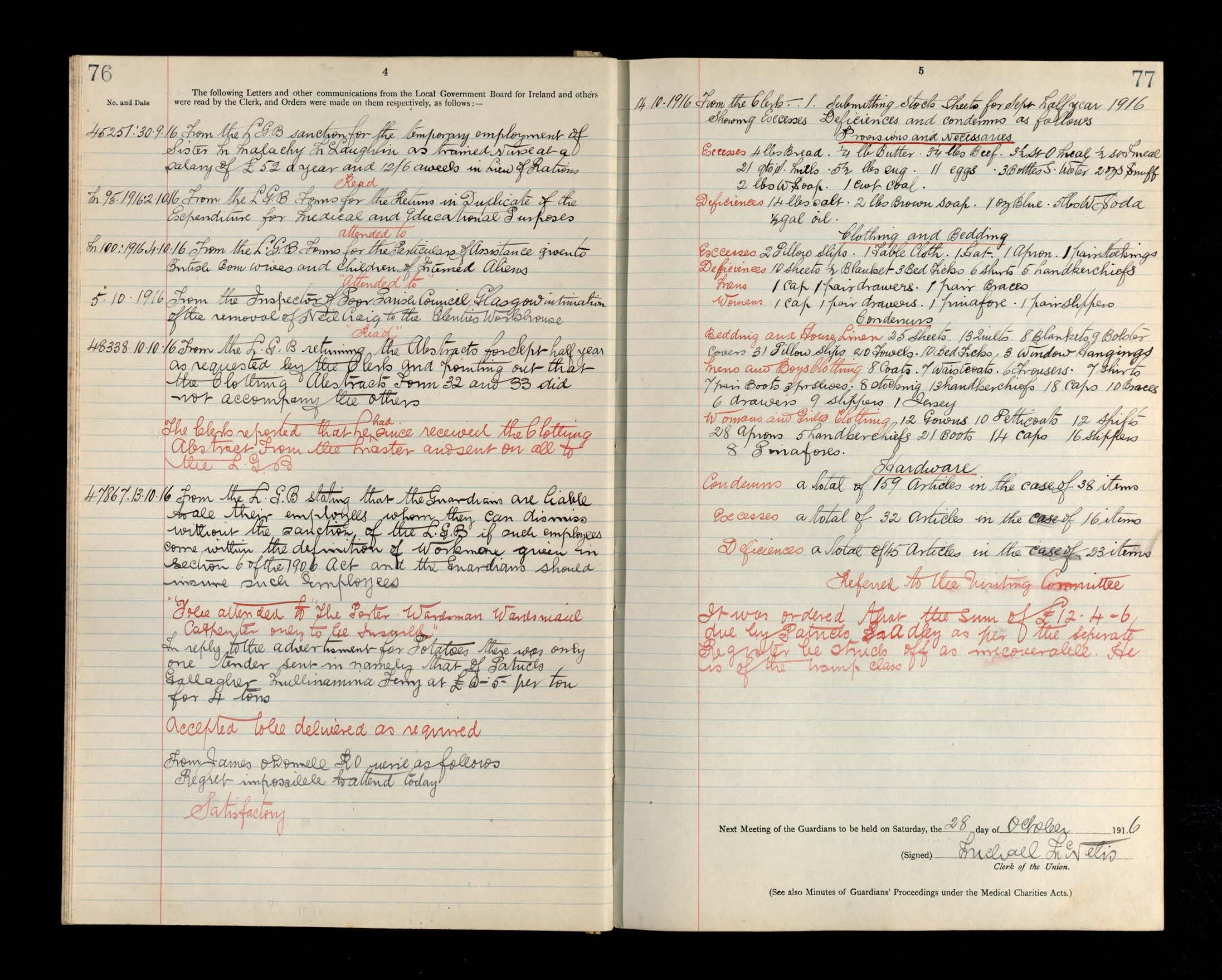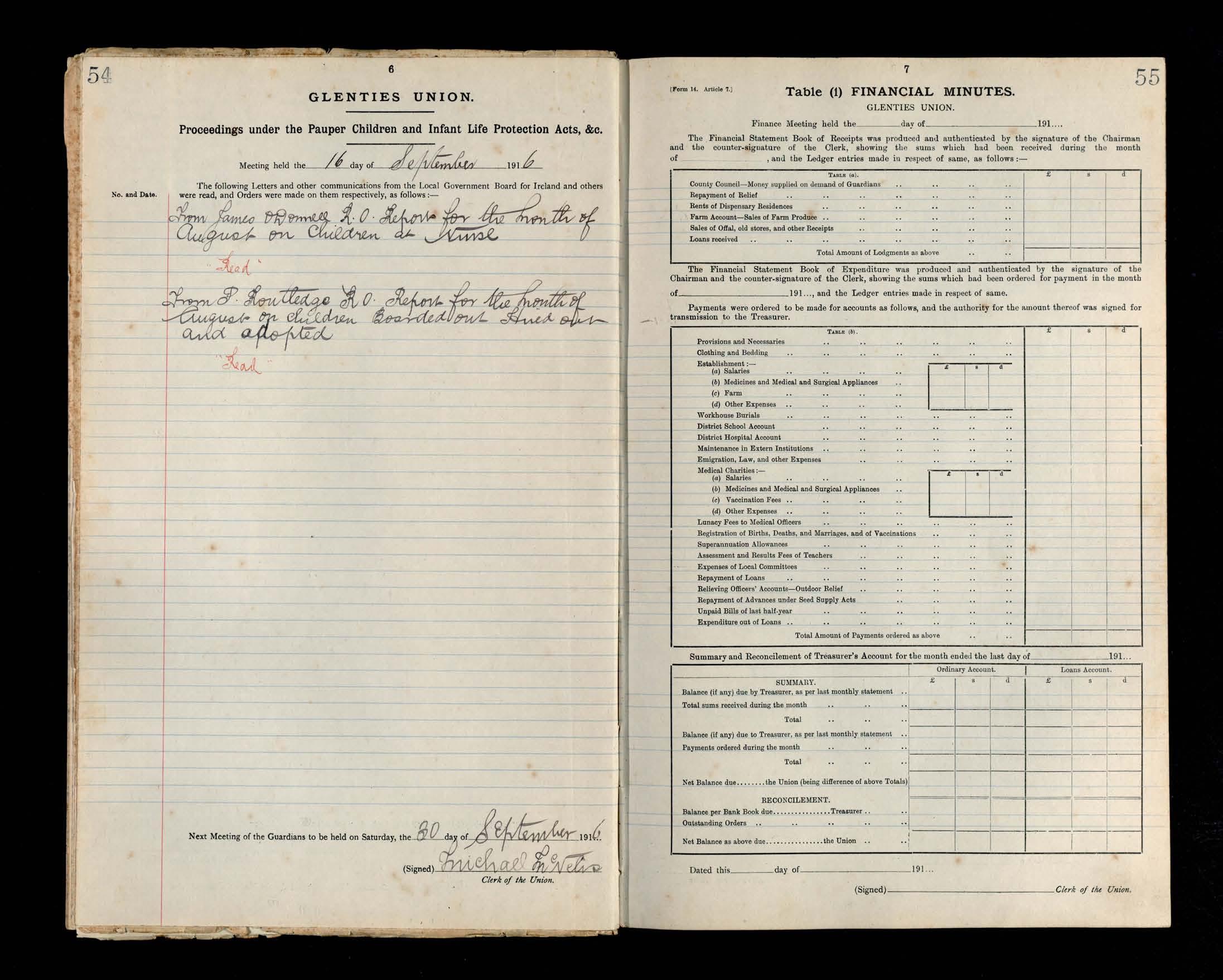 Glenties Board of Guardians Minutes, 22 July 1916 to 28 October 1916
