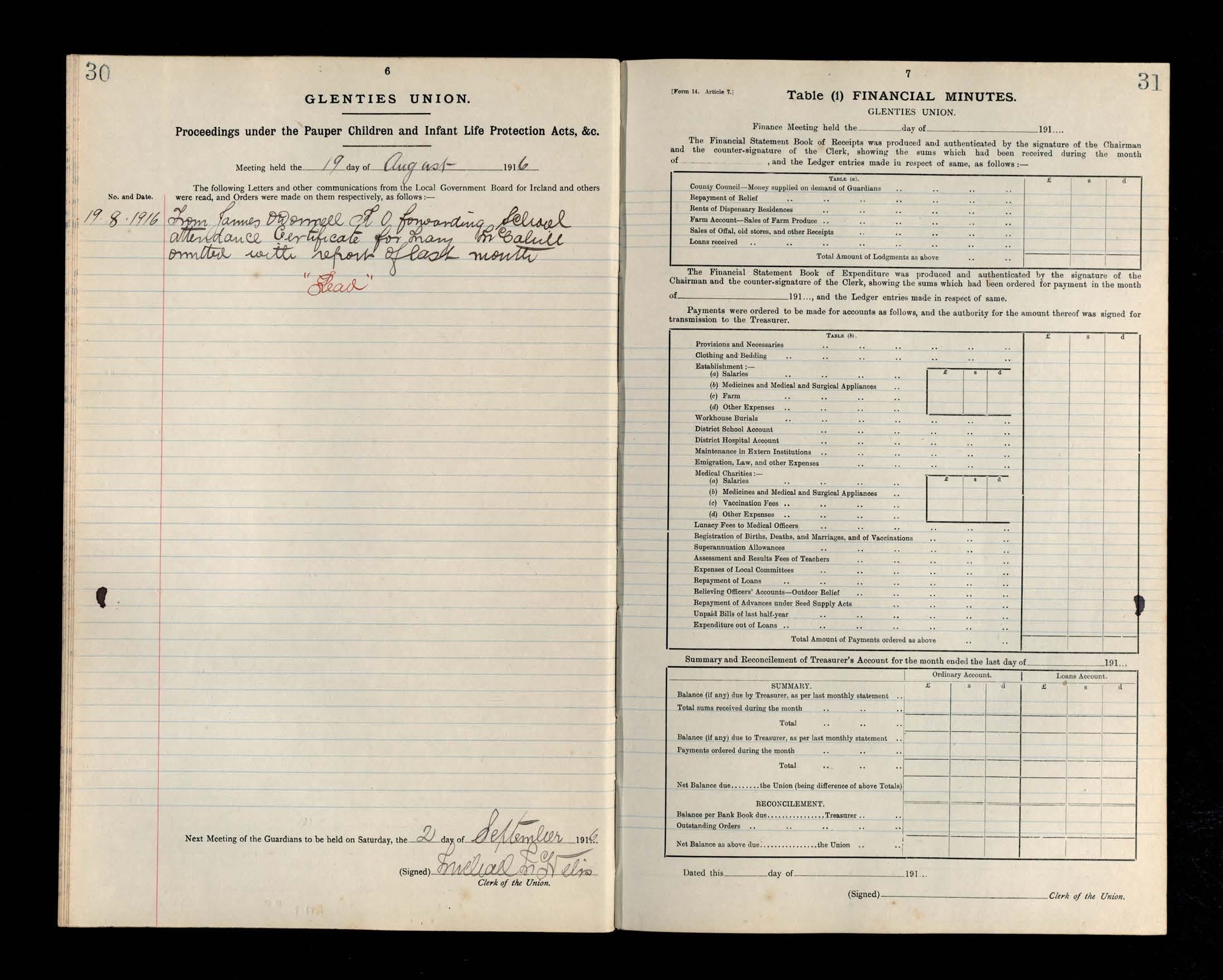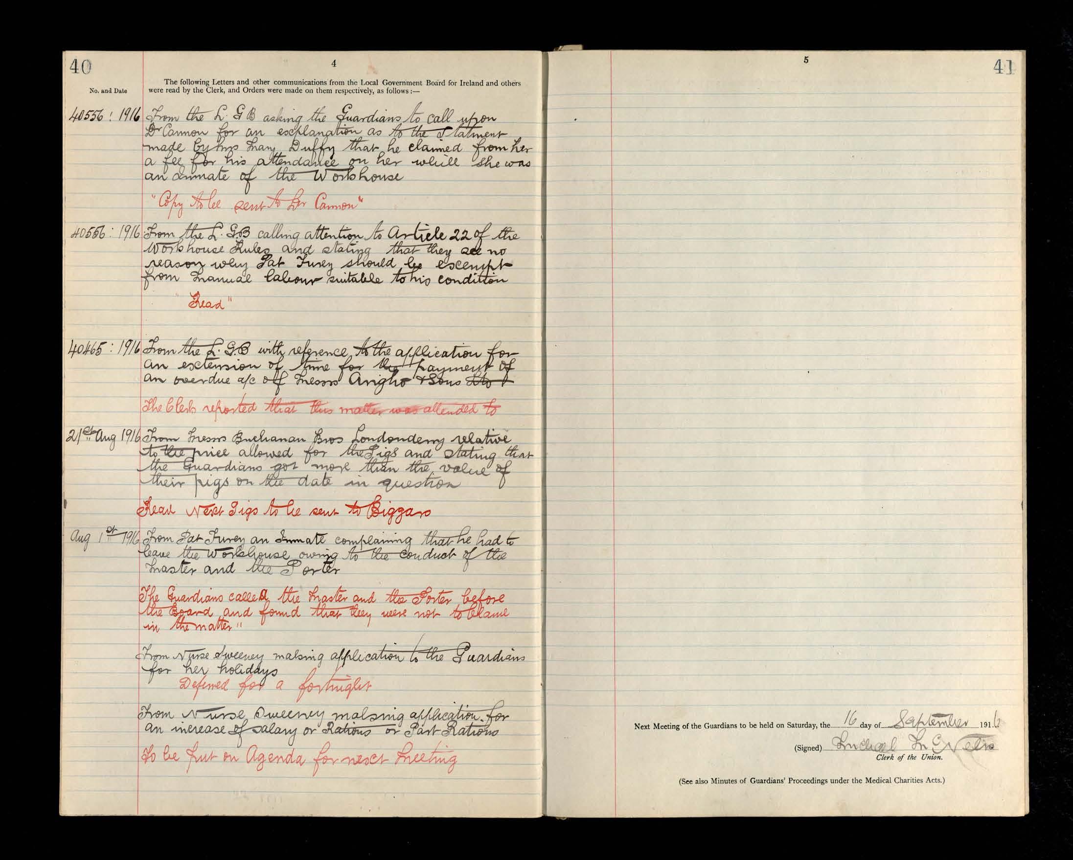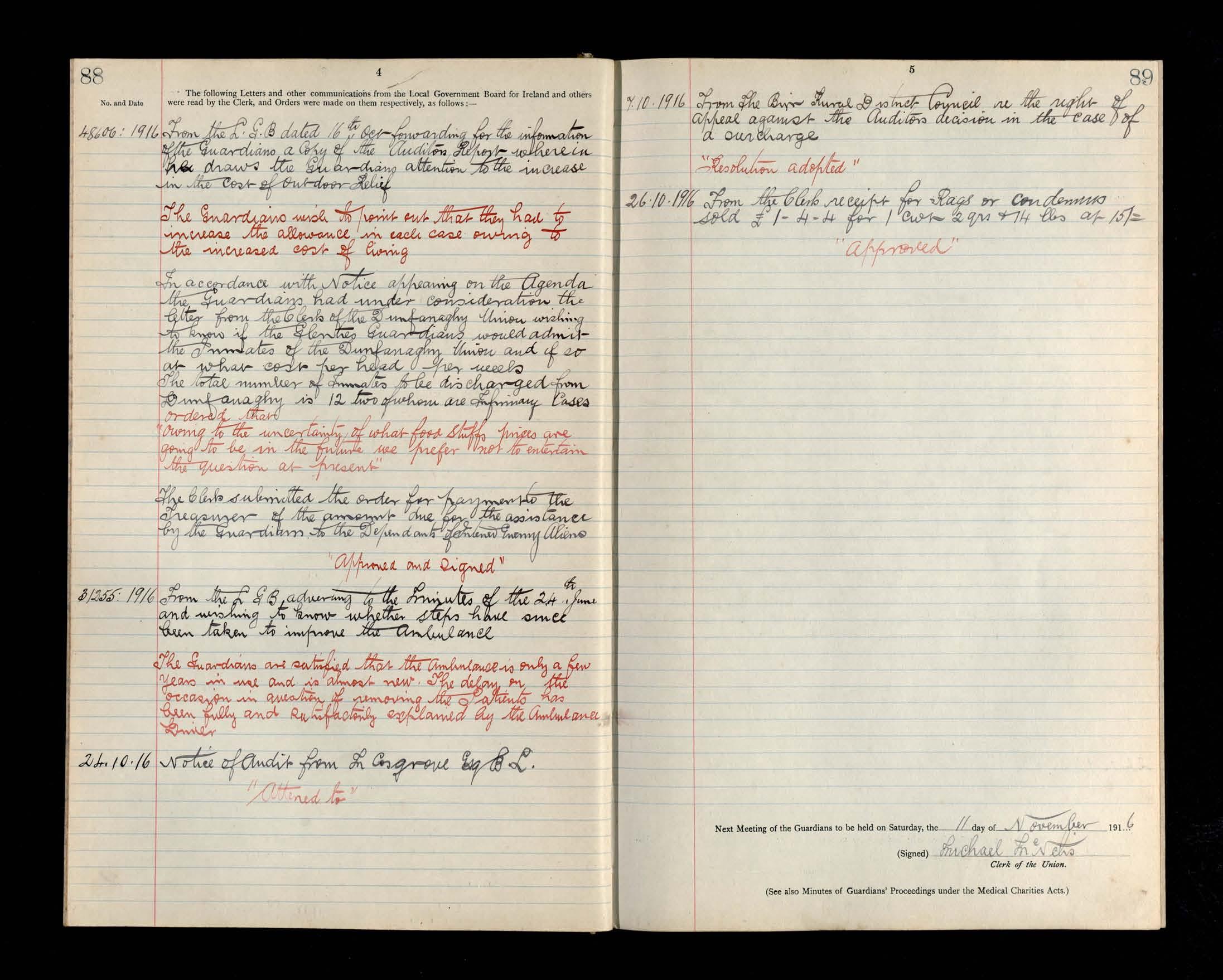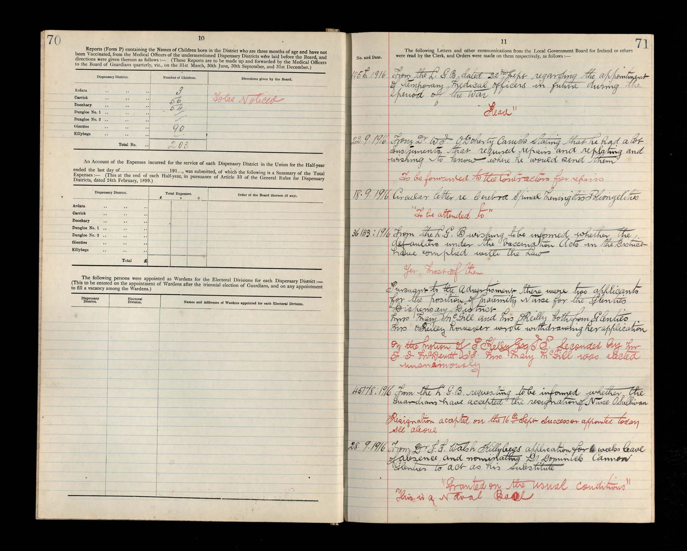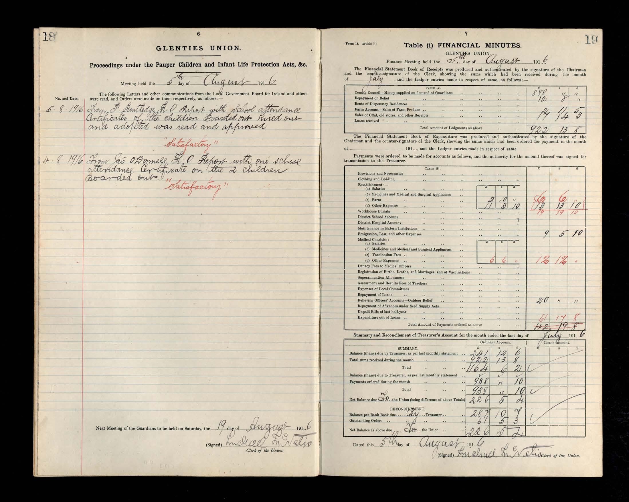 Glenties Board of Guardians Minutes, 22 July 1916 to 28 October 1916