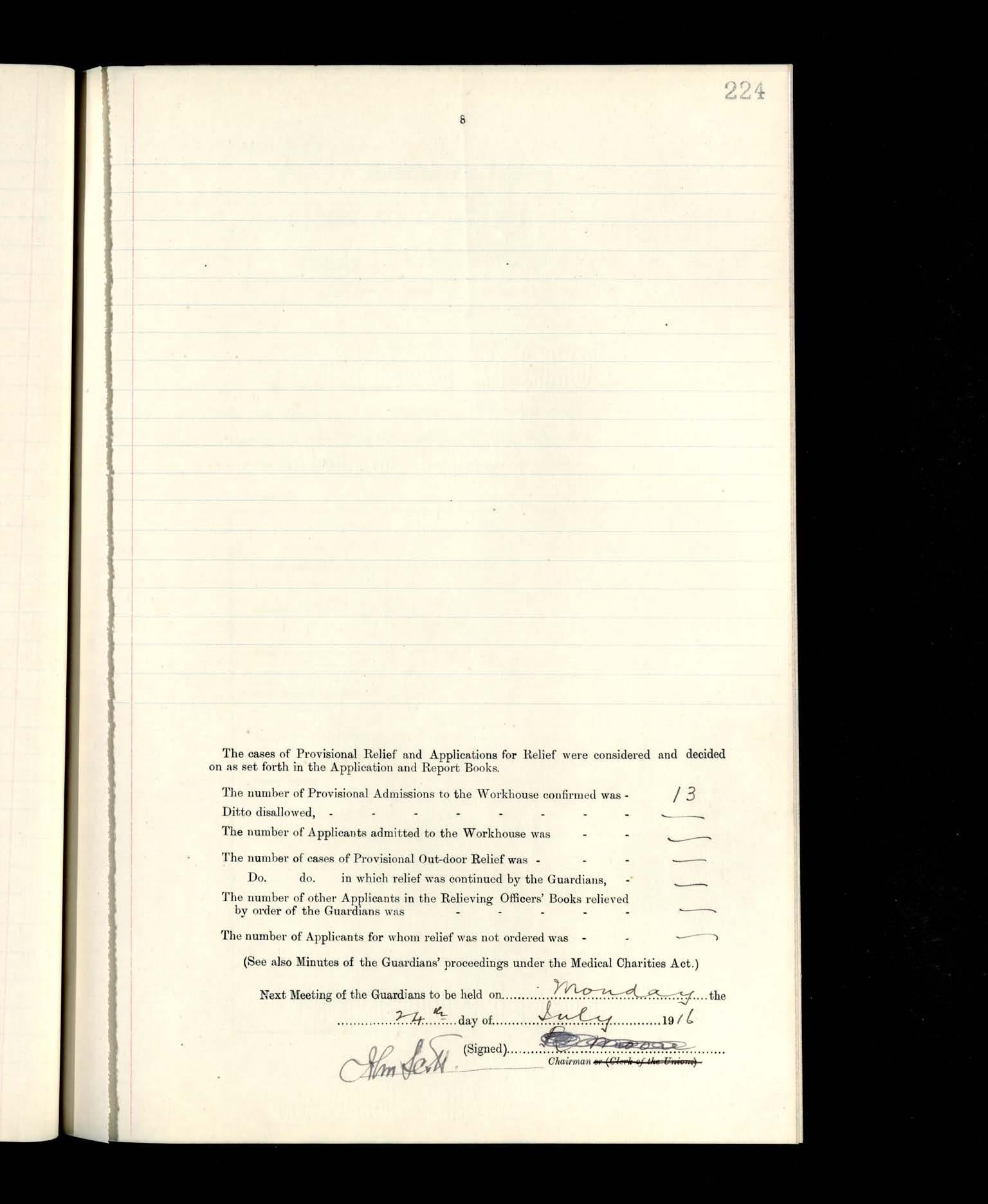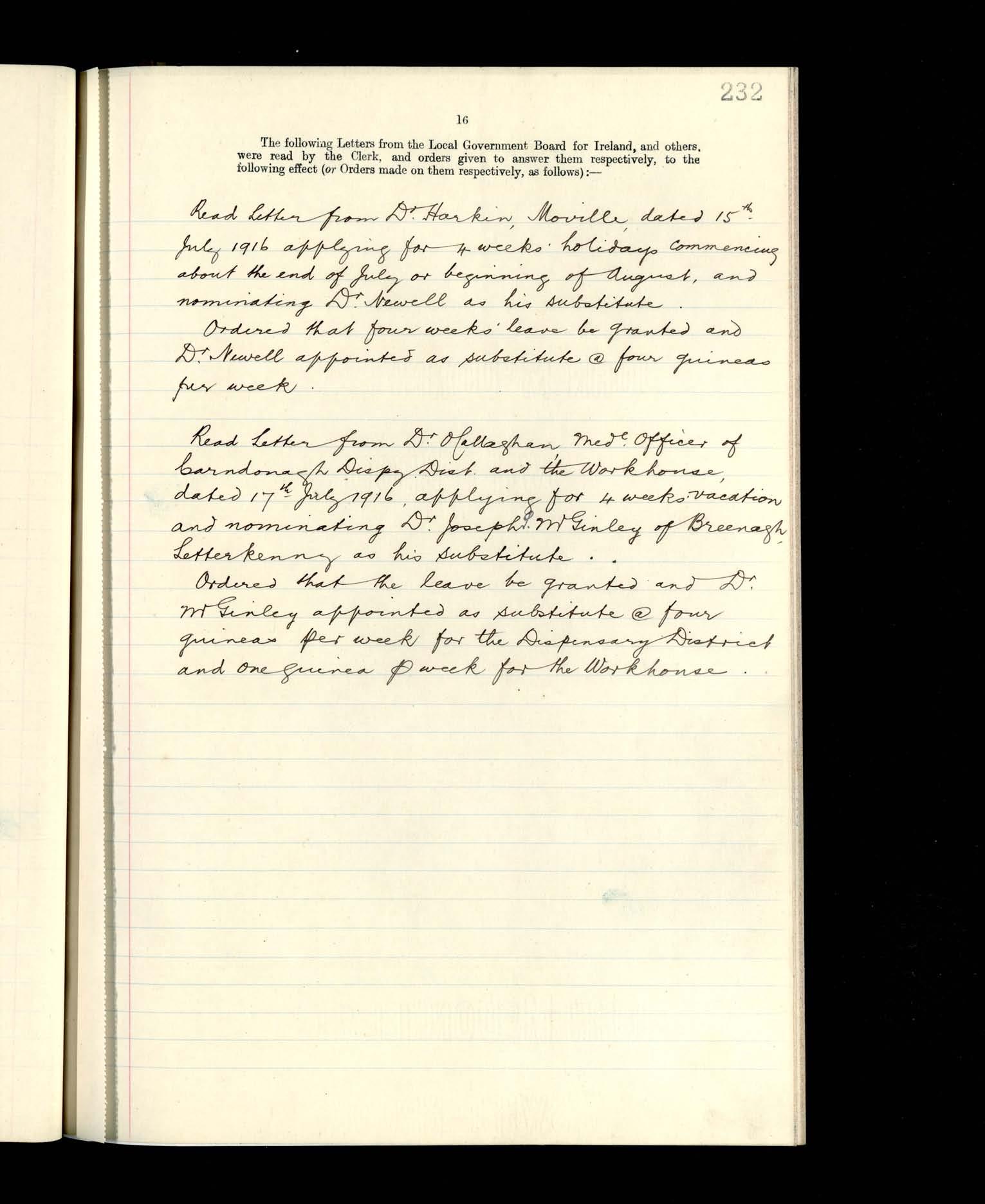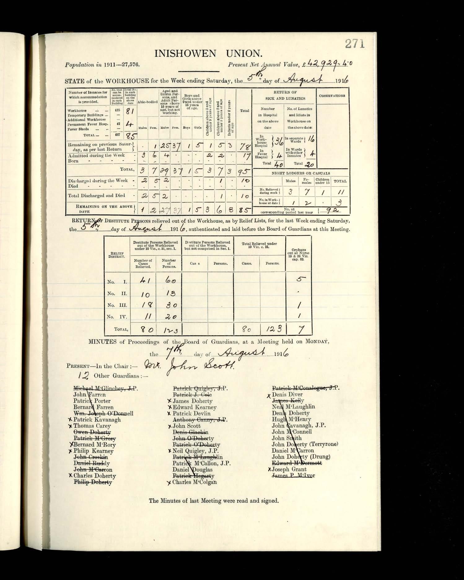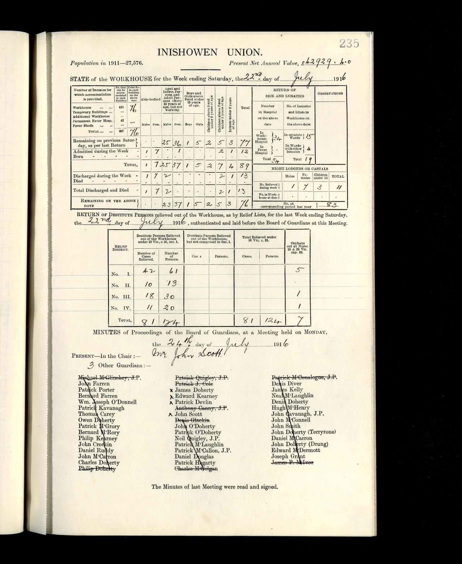 Inishowen Board of Guardians, 11 July 1916 to 28 August 1916