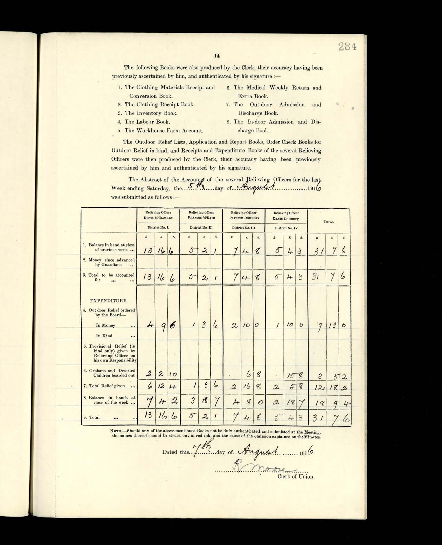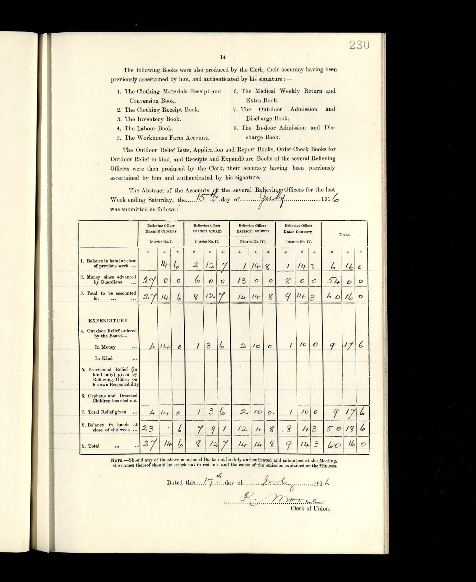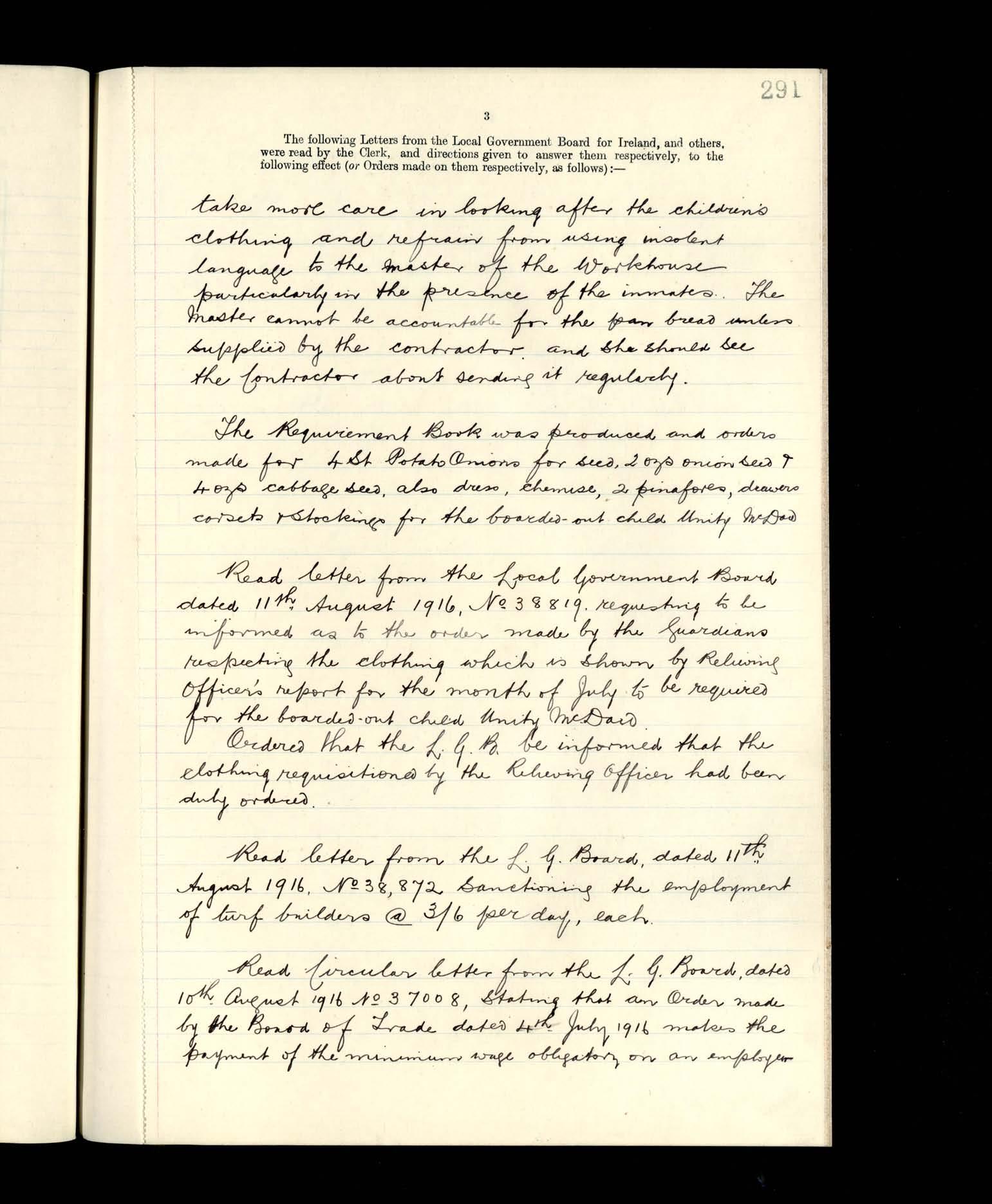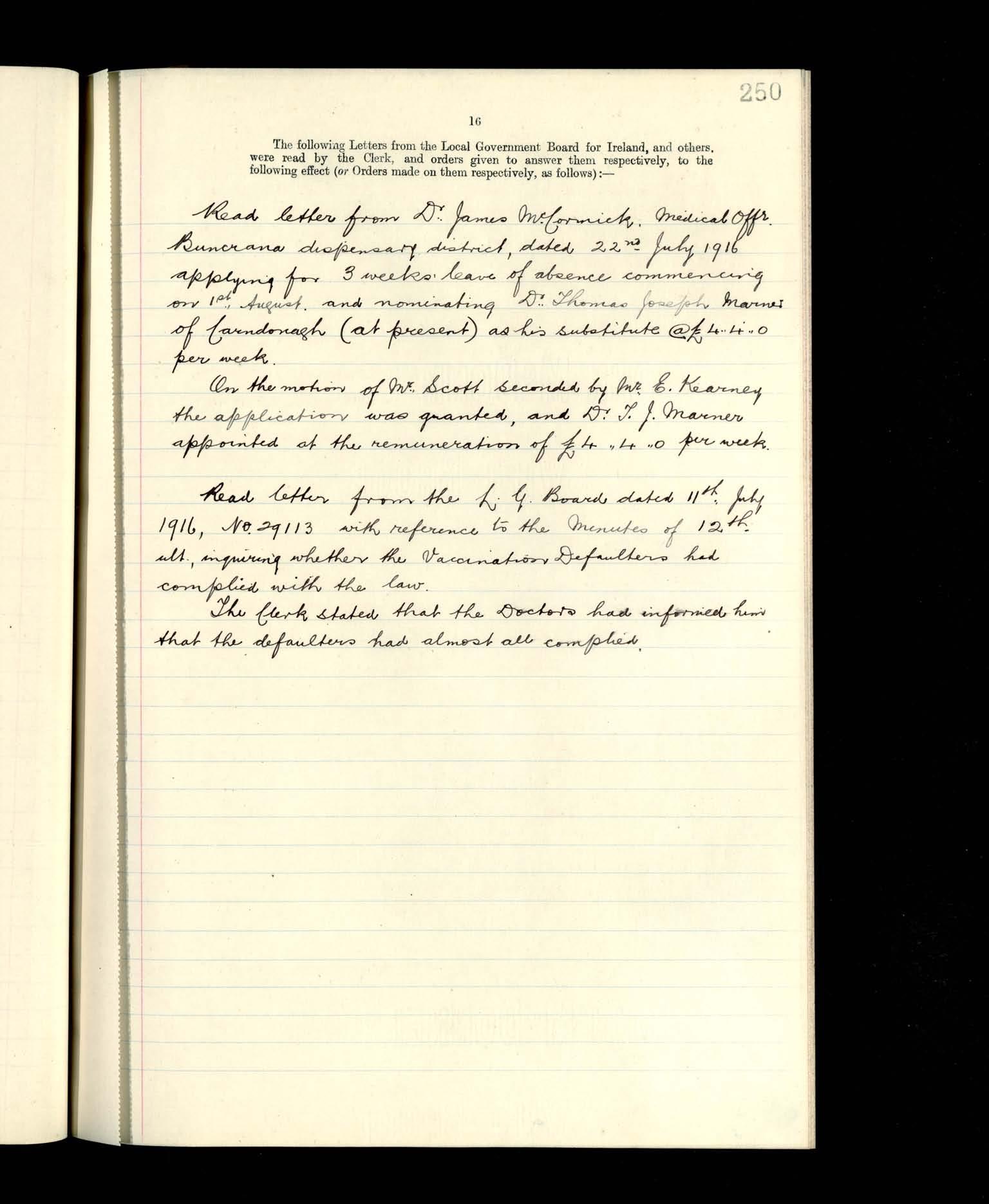 Inishowen Board of Guardians, 11 July 1916 to 28 August 1916