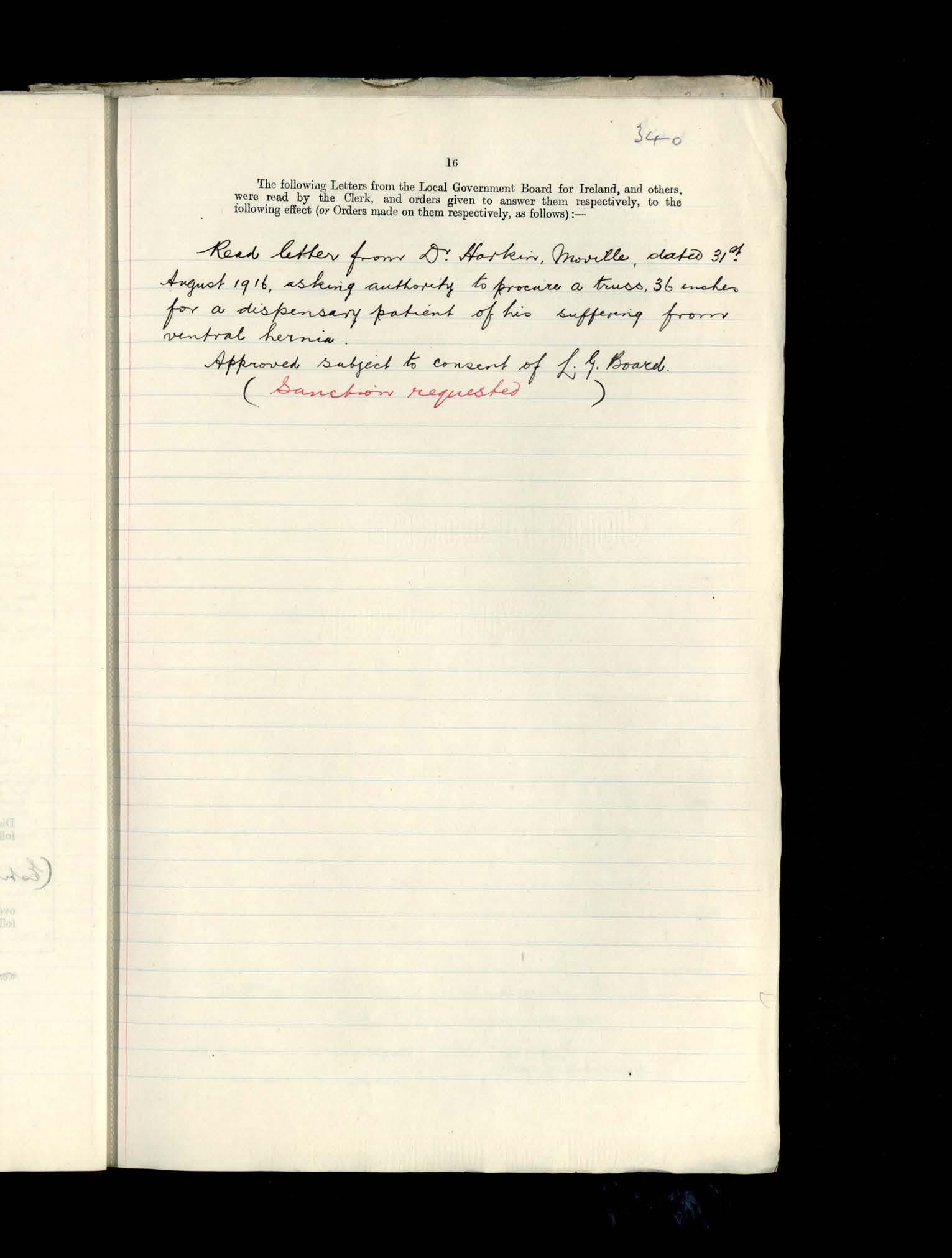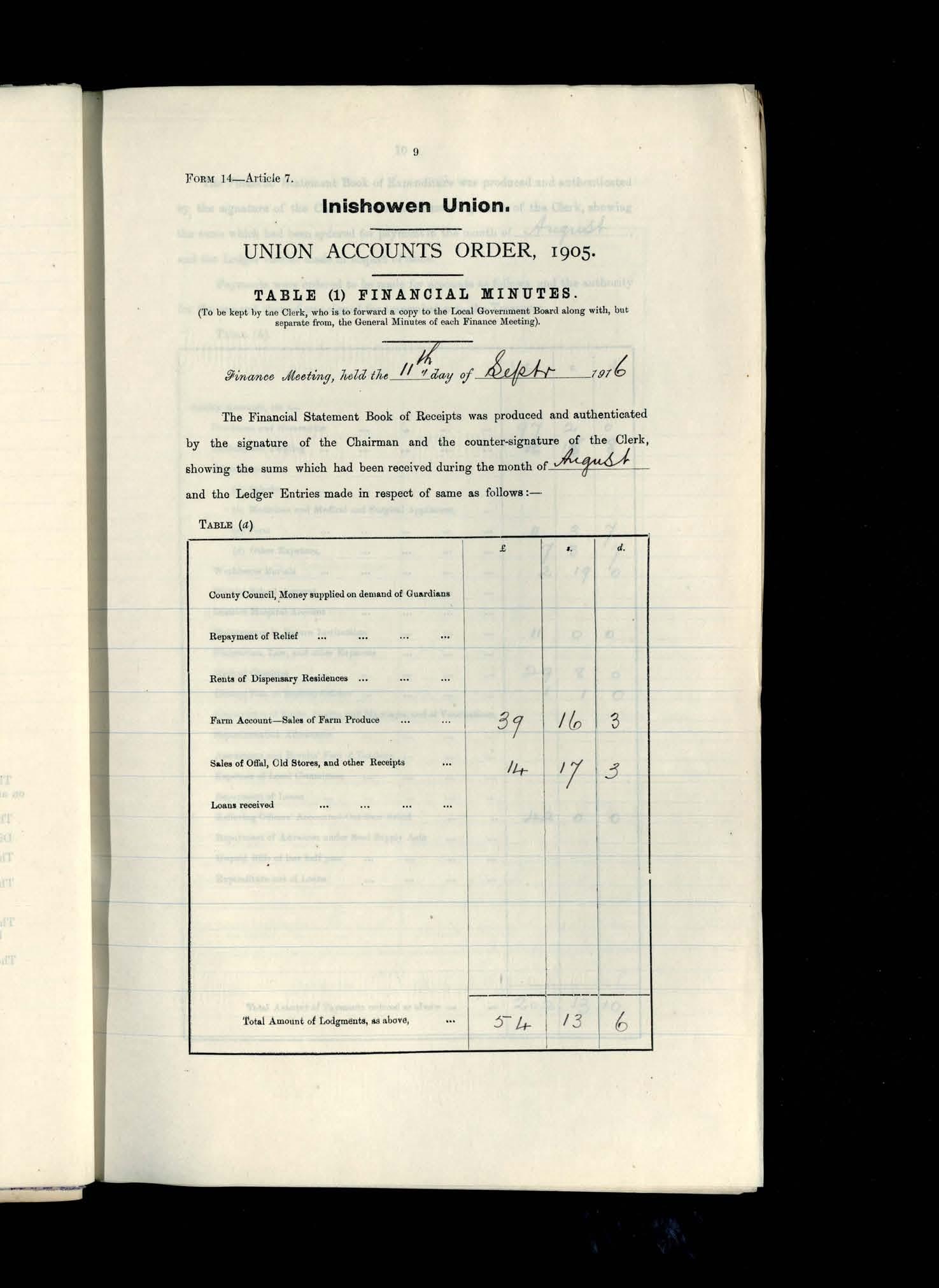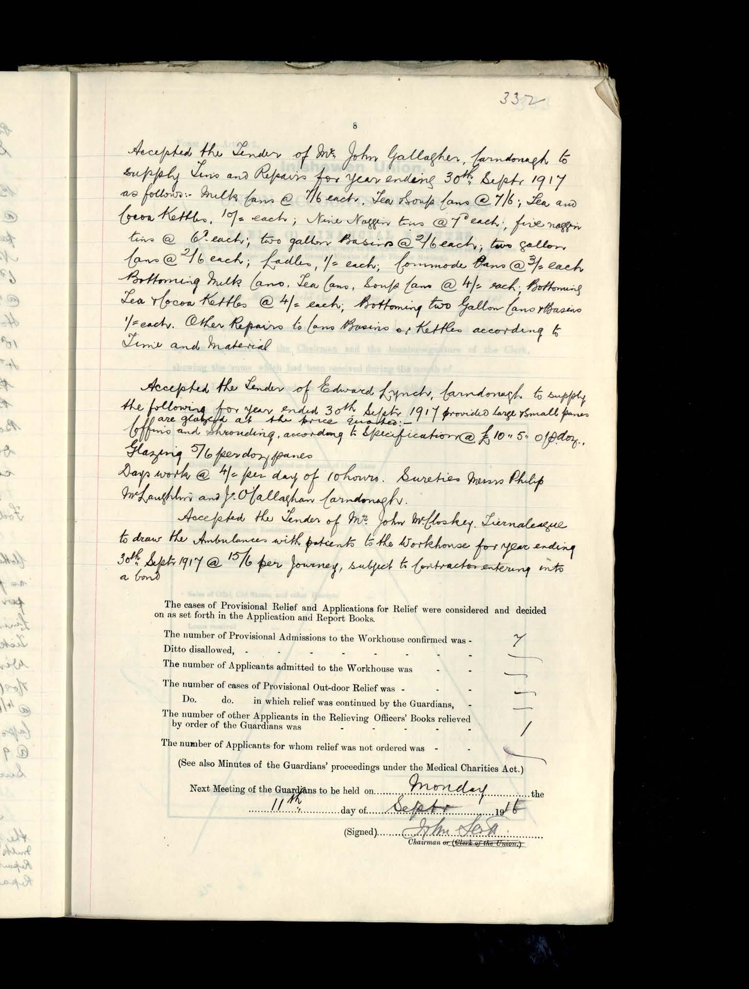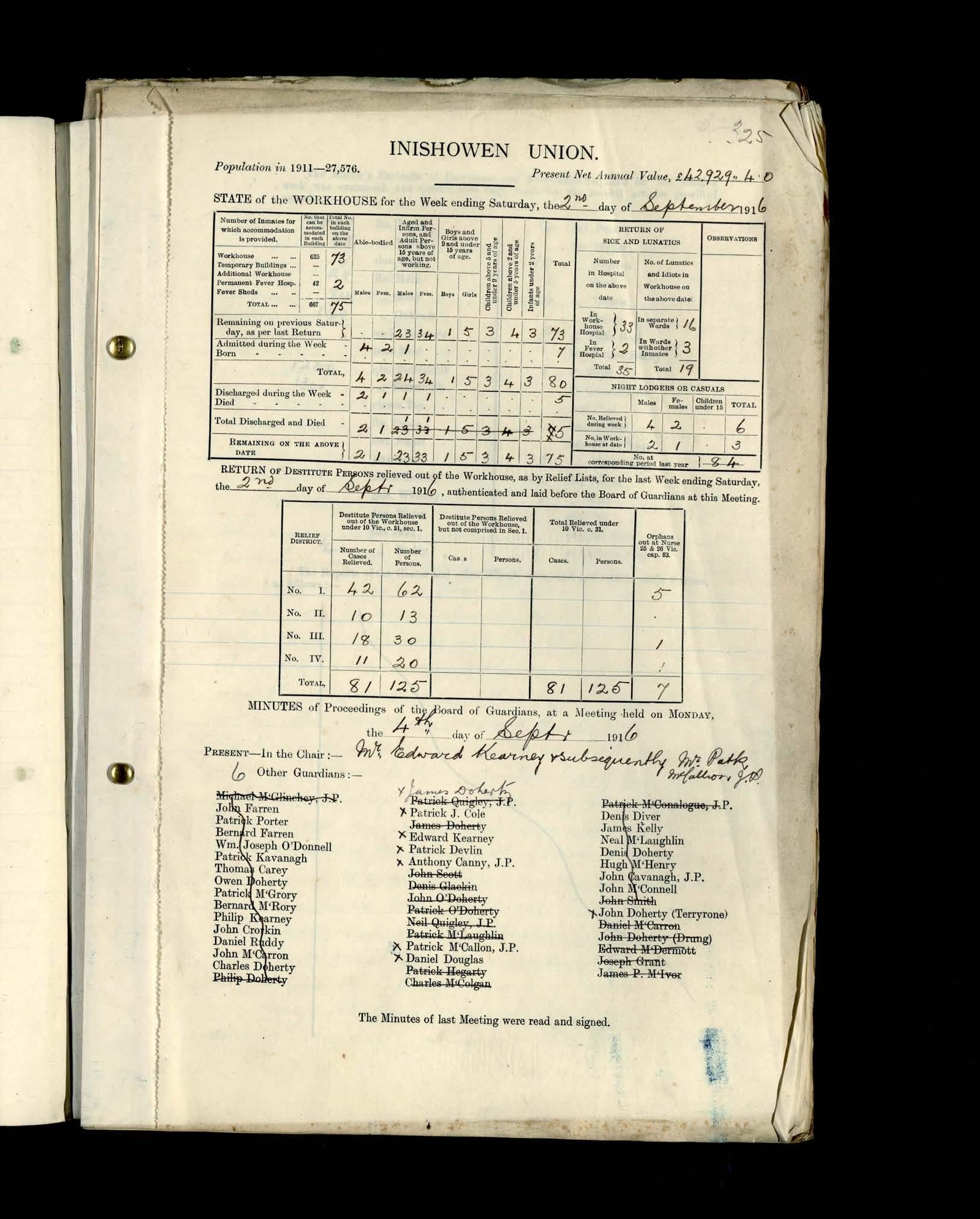 Inishowen Board of Guardians, 4 Sept 1916 to 11 Sept1916