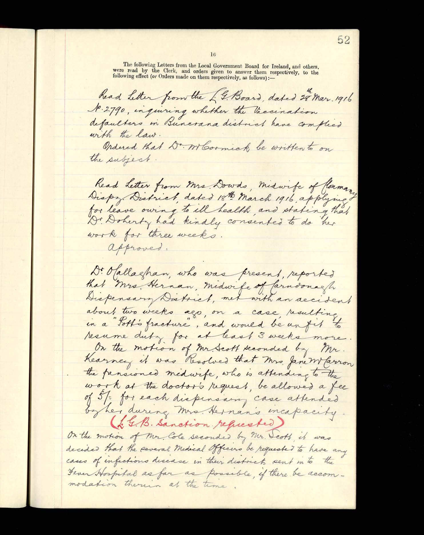 Inishowen Board of Guardians, 13 March 1916 to 1 May 1916