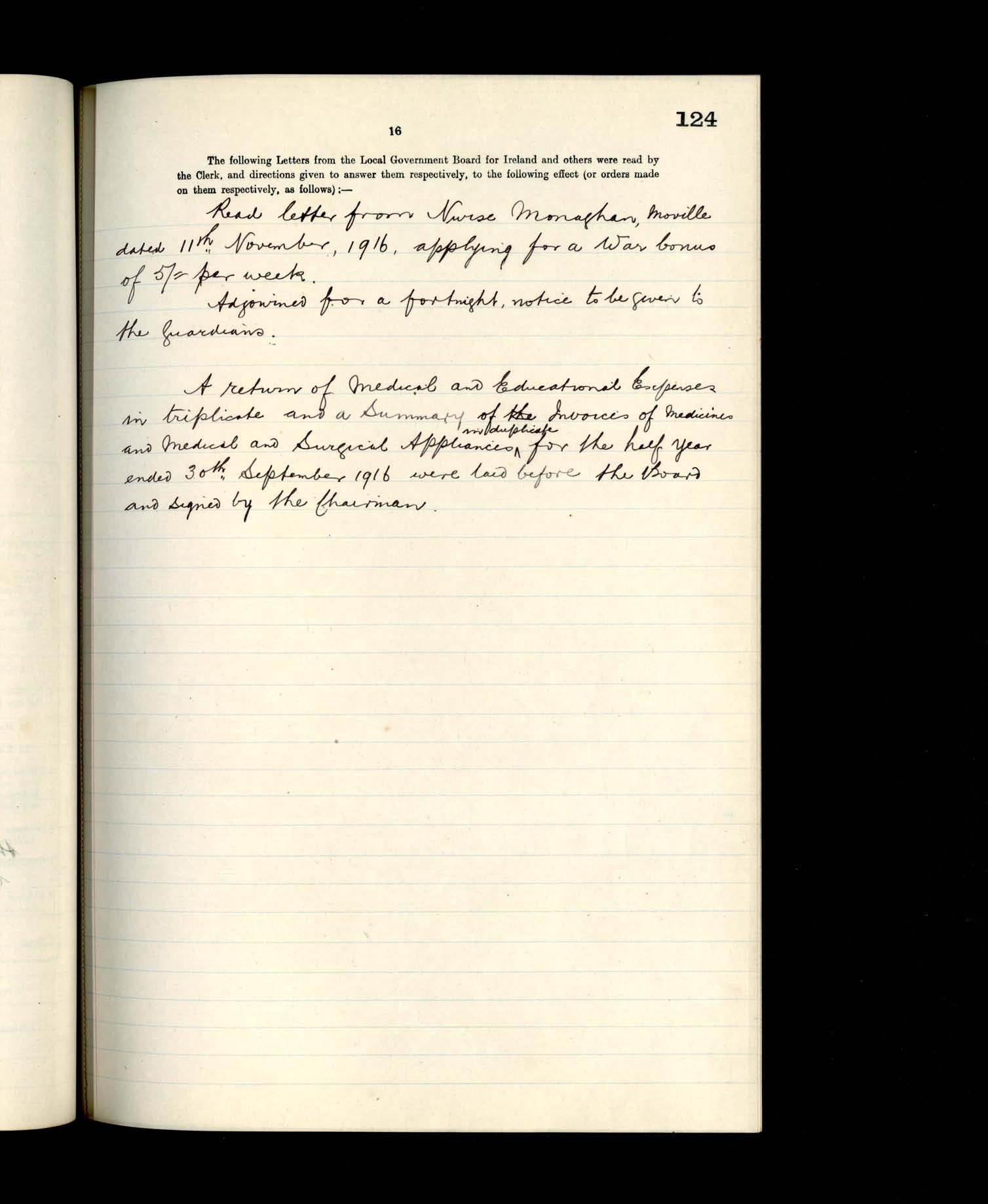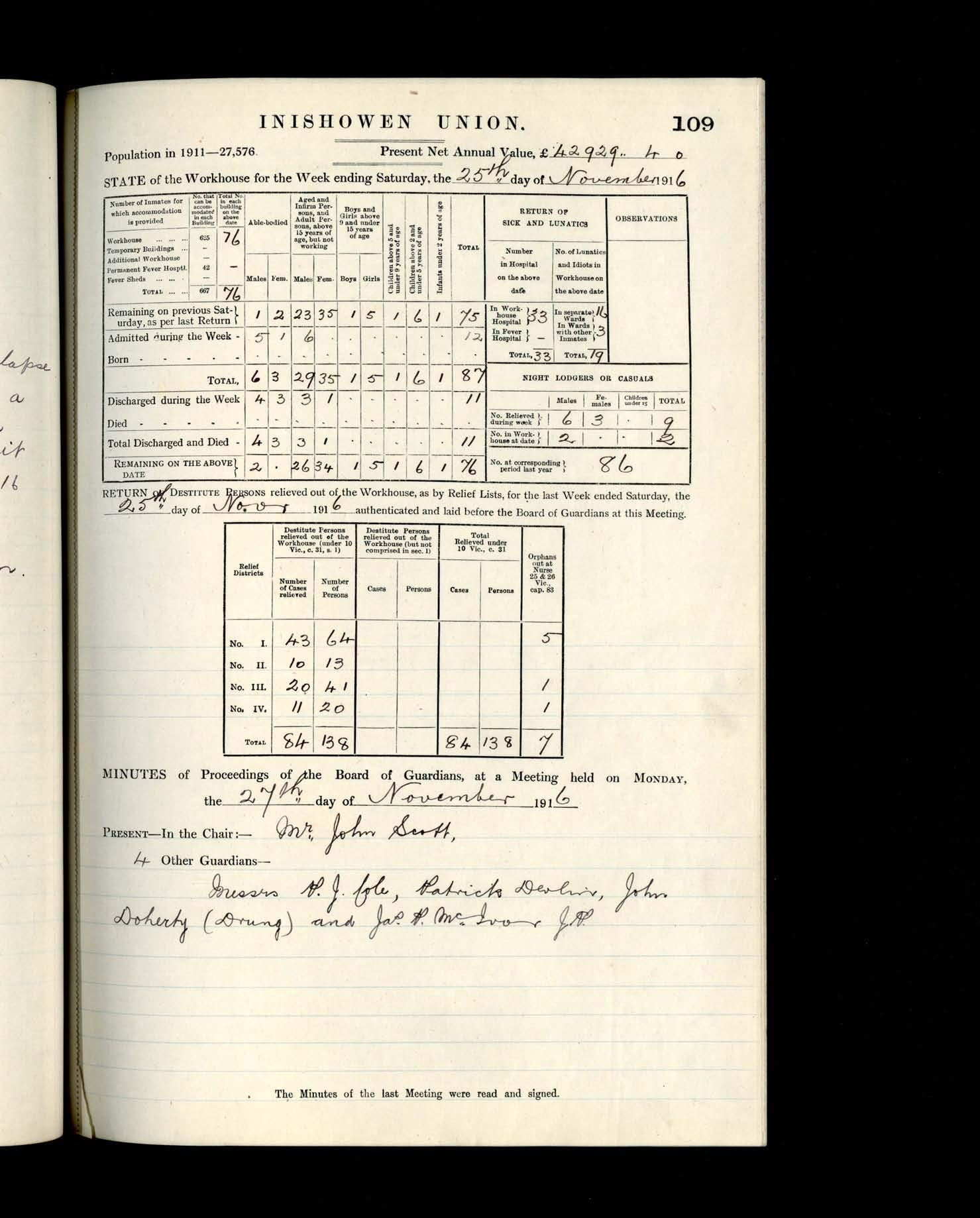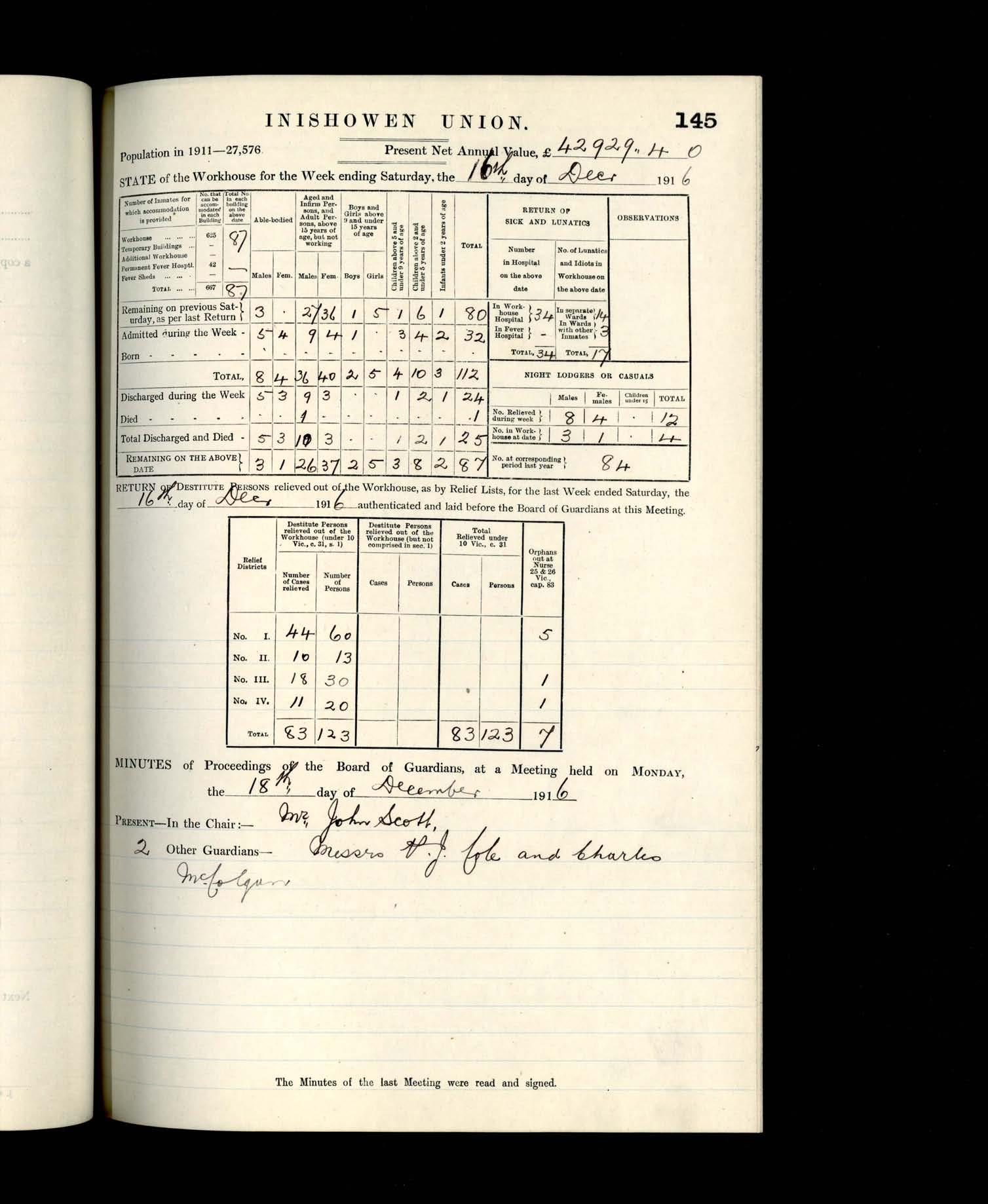 Inishowen Board of Guardians, 27 Nov 1916 to 20 Jan 1917-