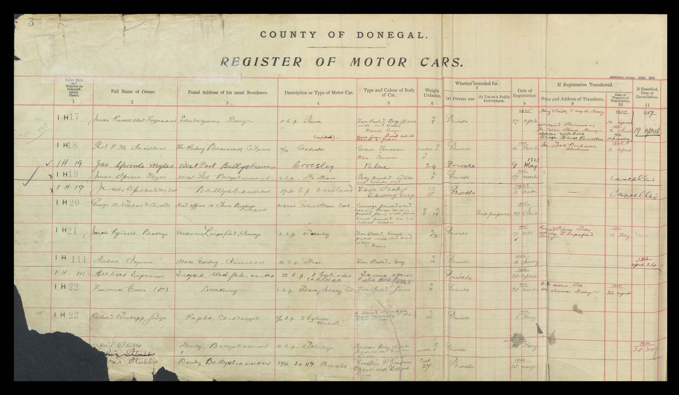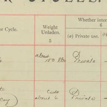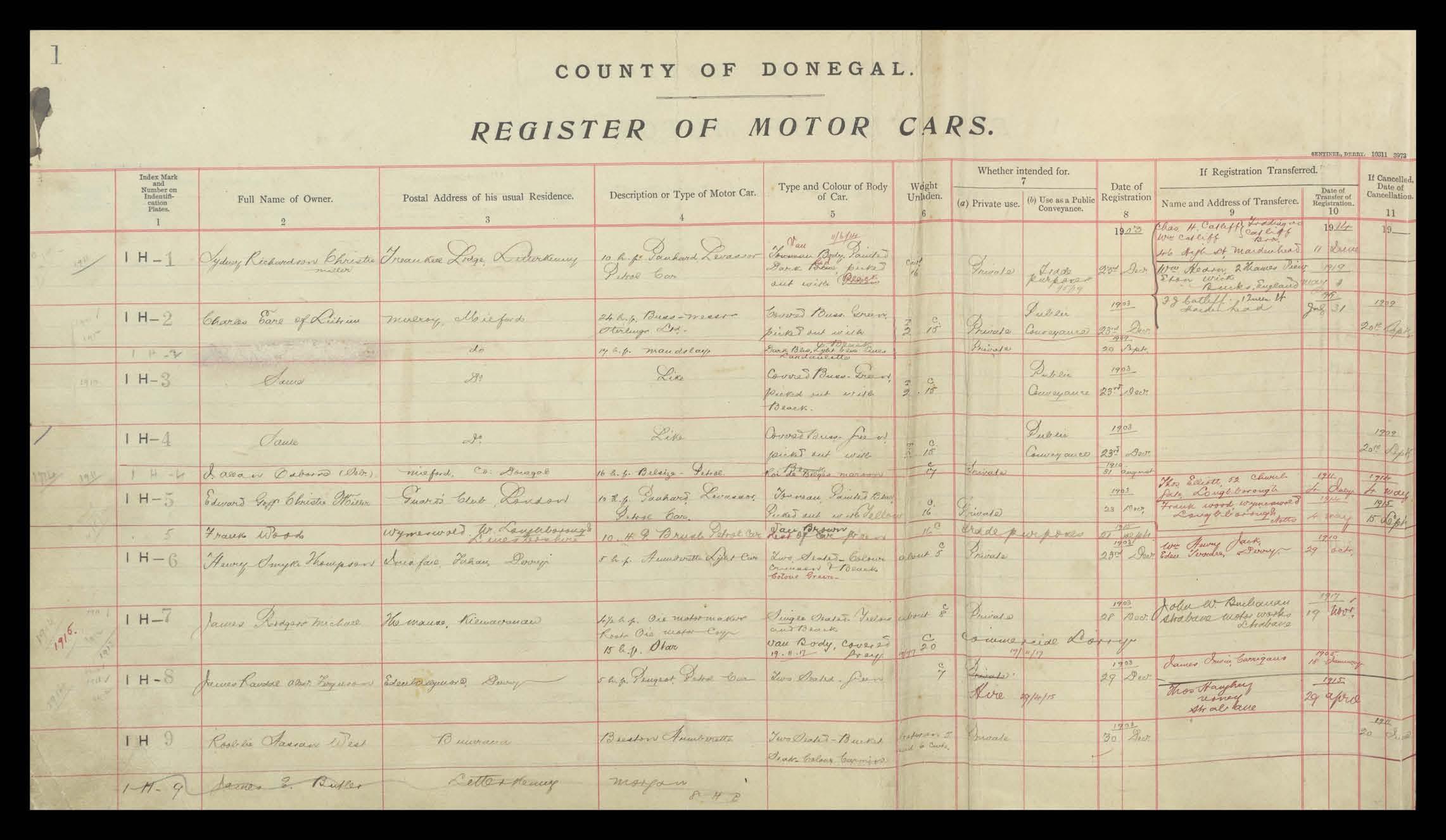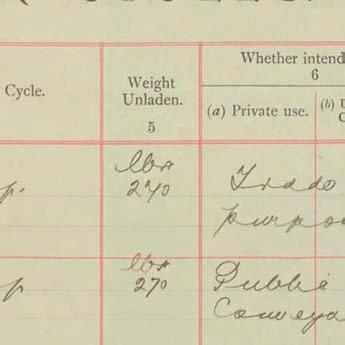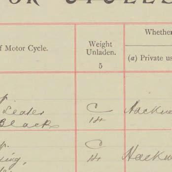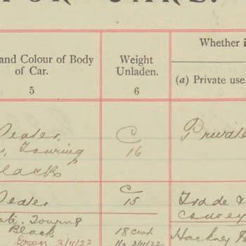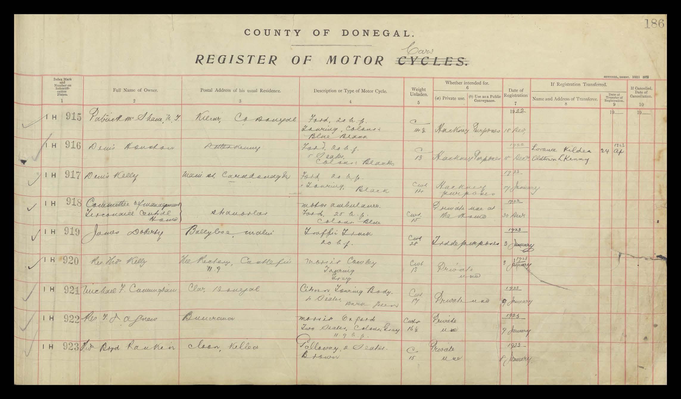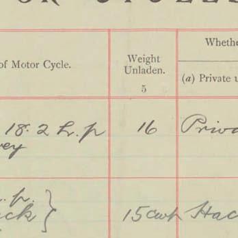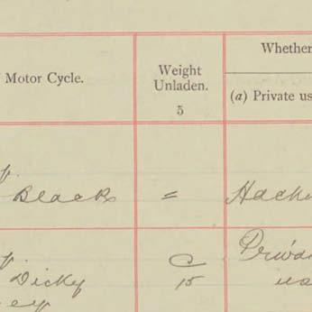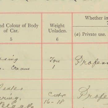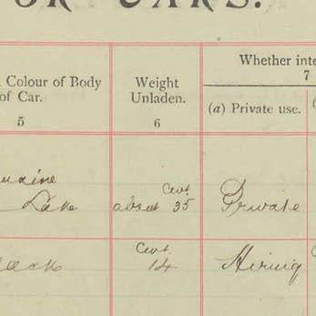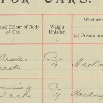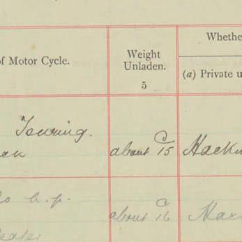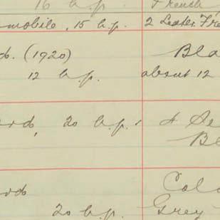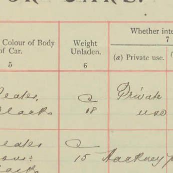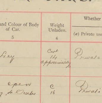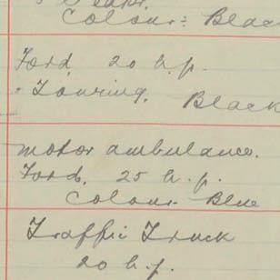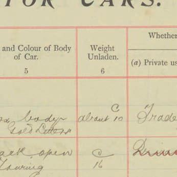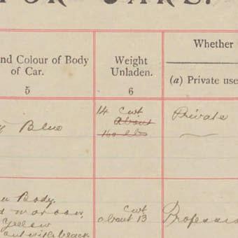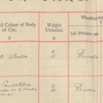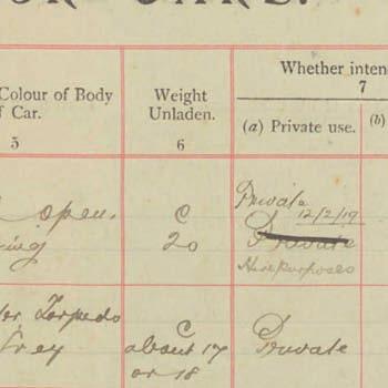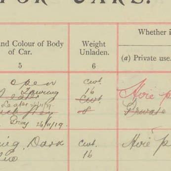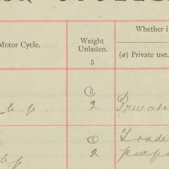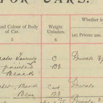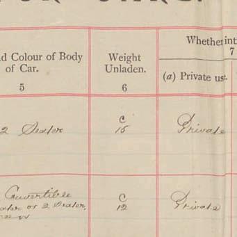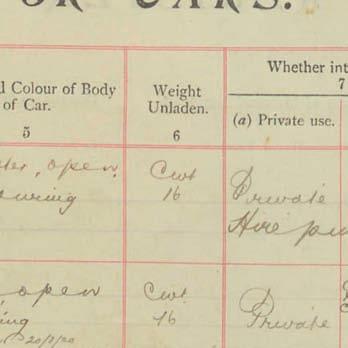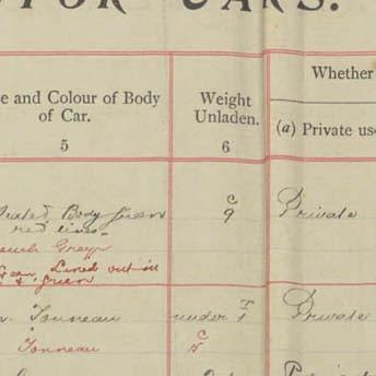 Register of Motor Vehicles, 1903 - 1923