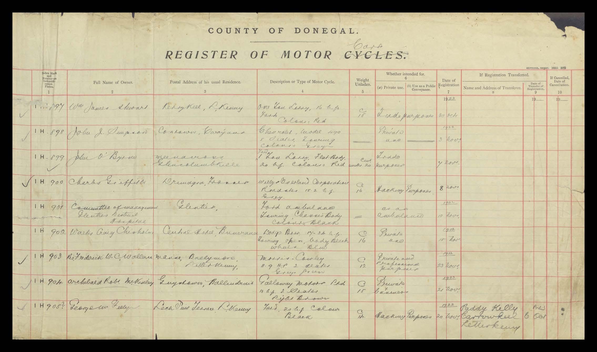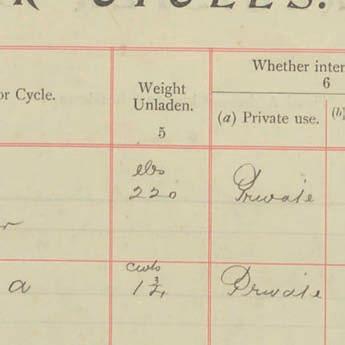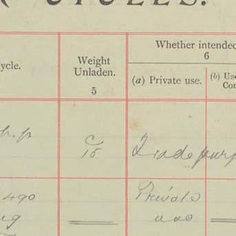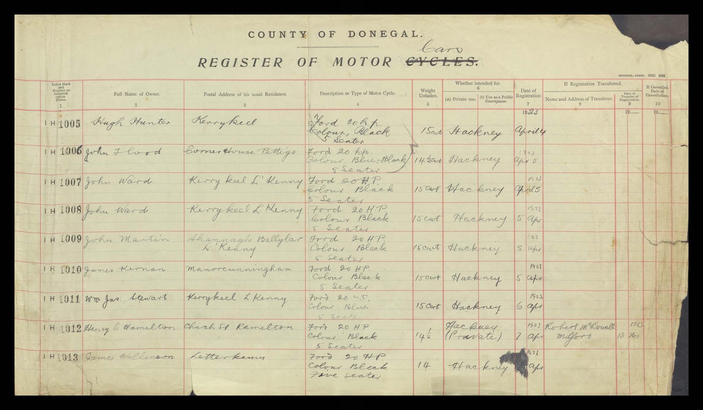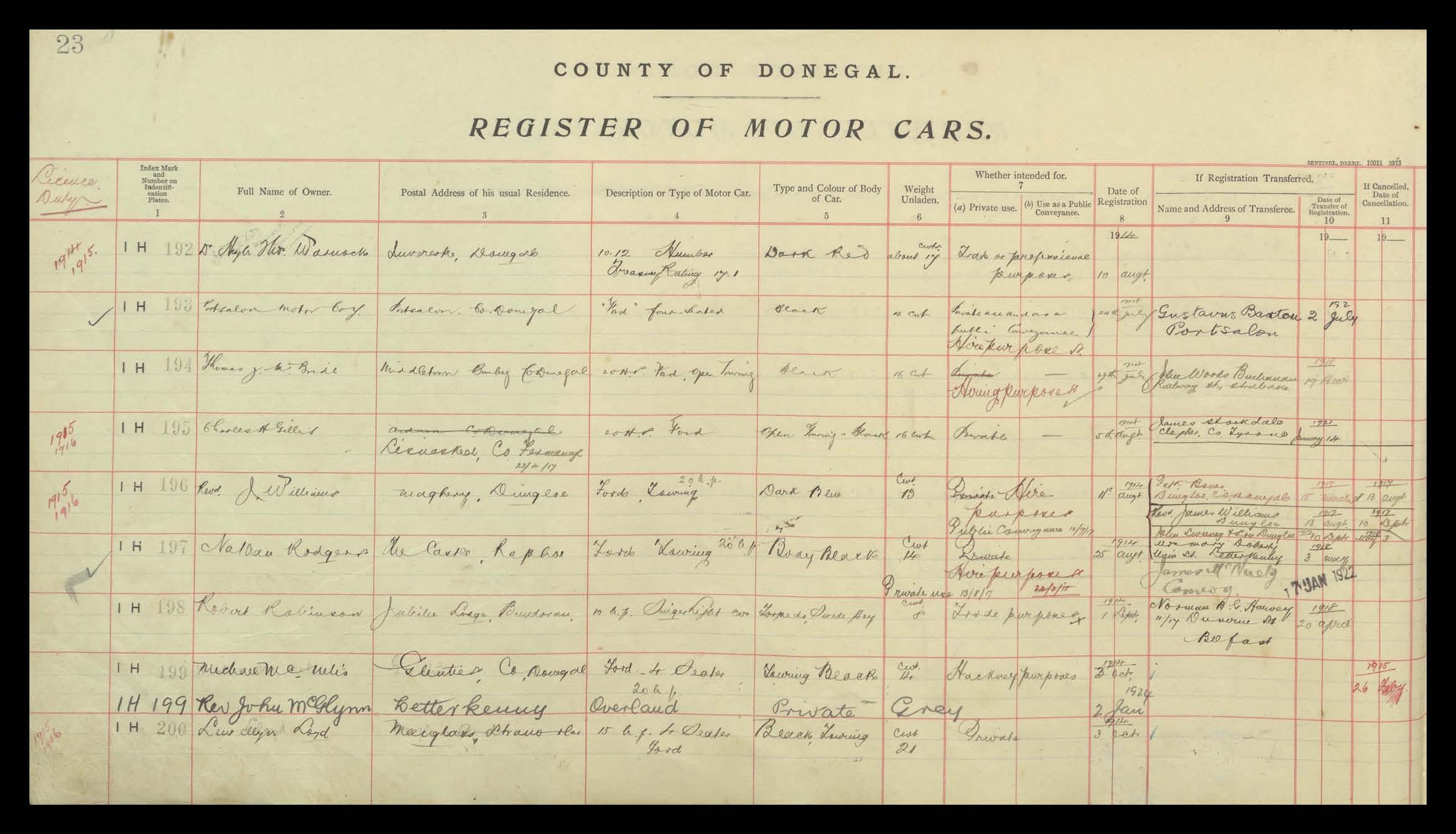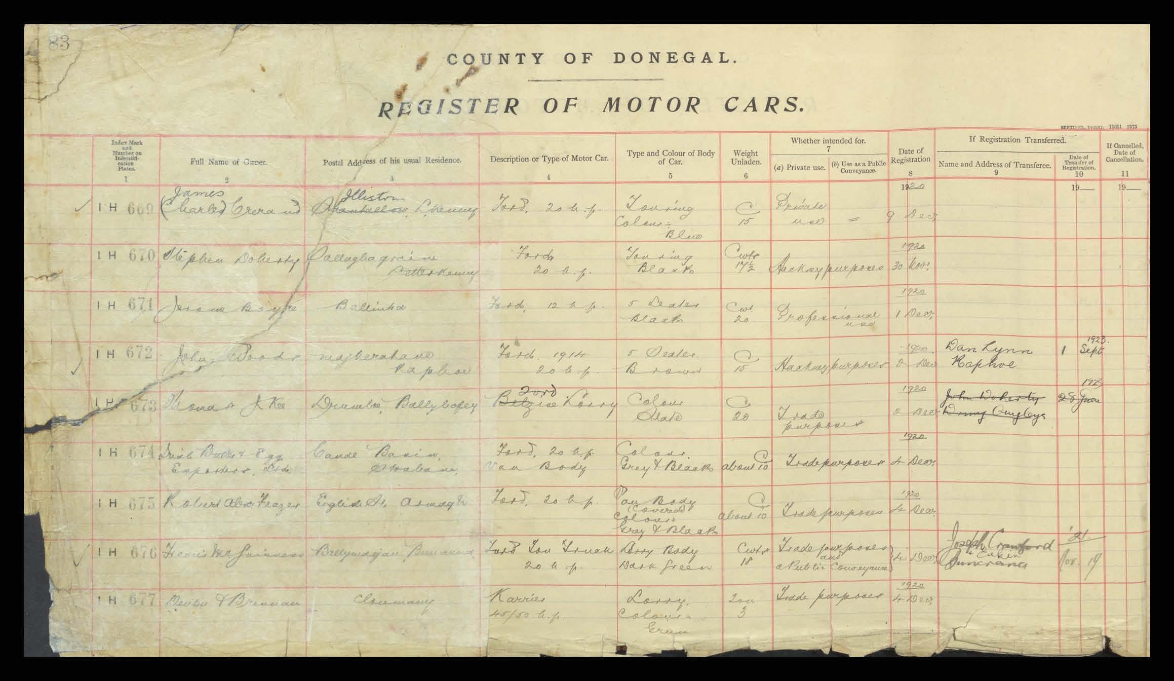 Register of Motor Vehicles, 1903 - 1923