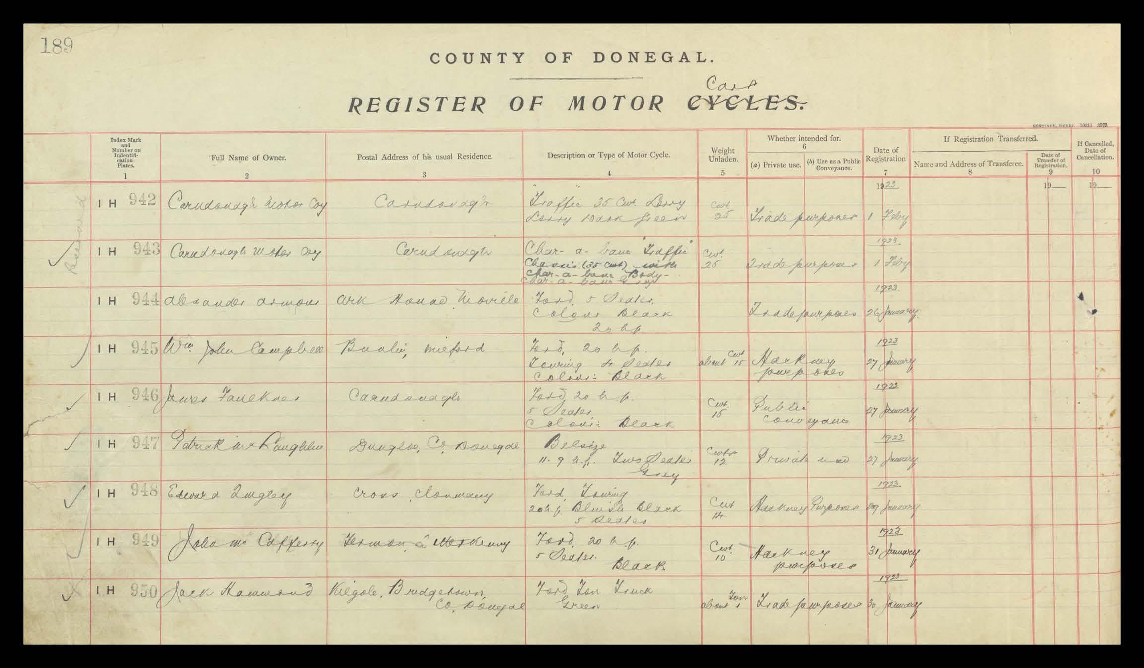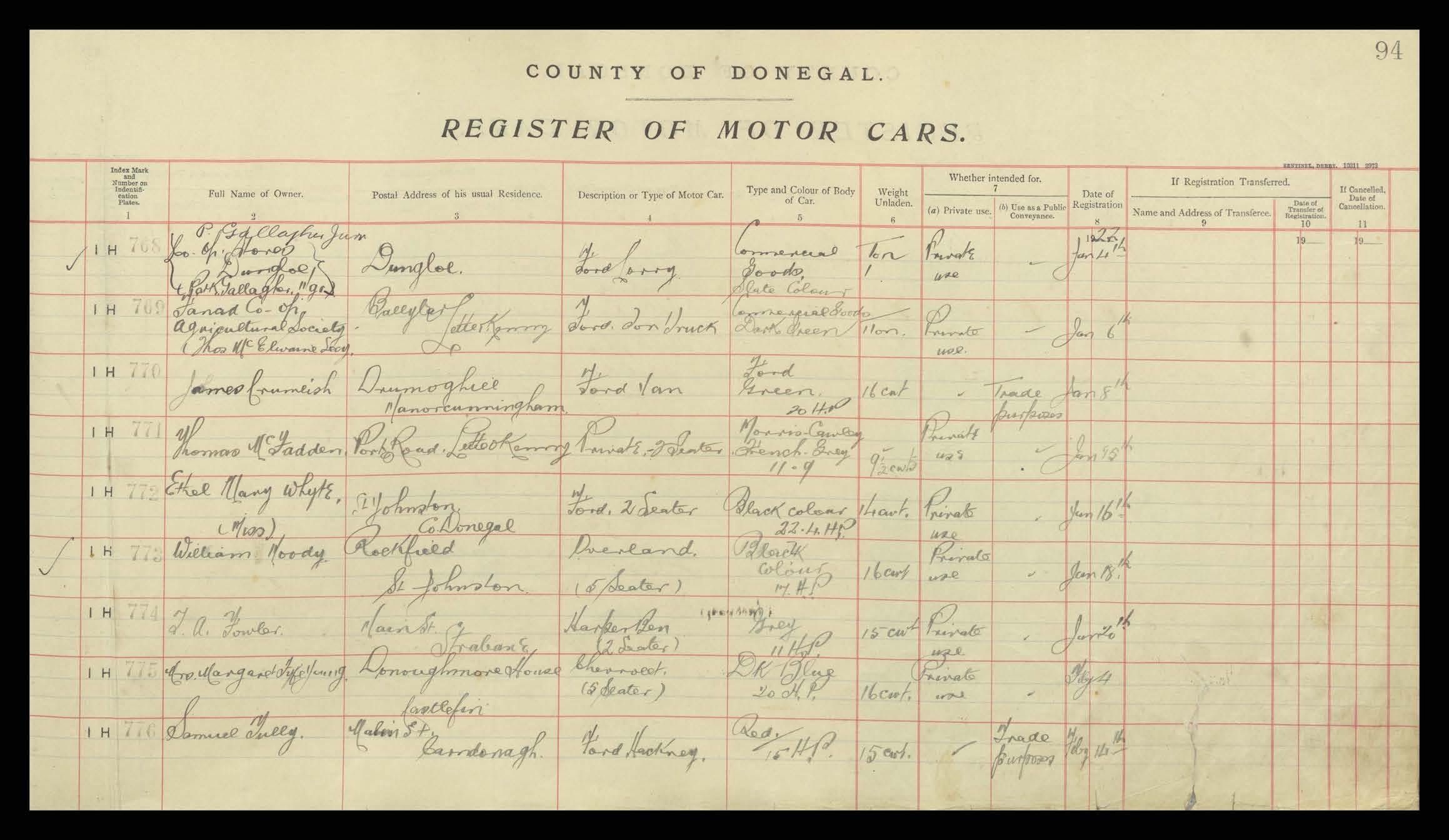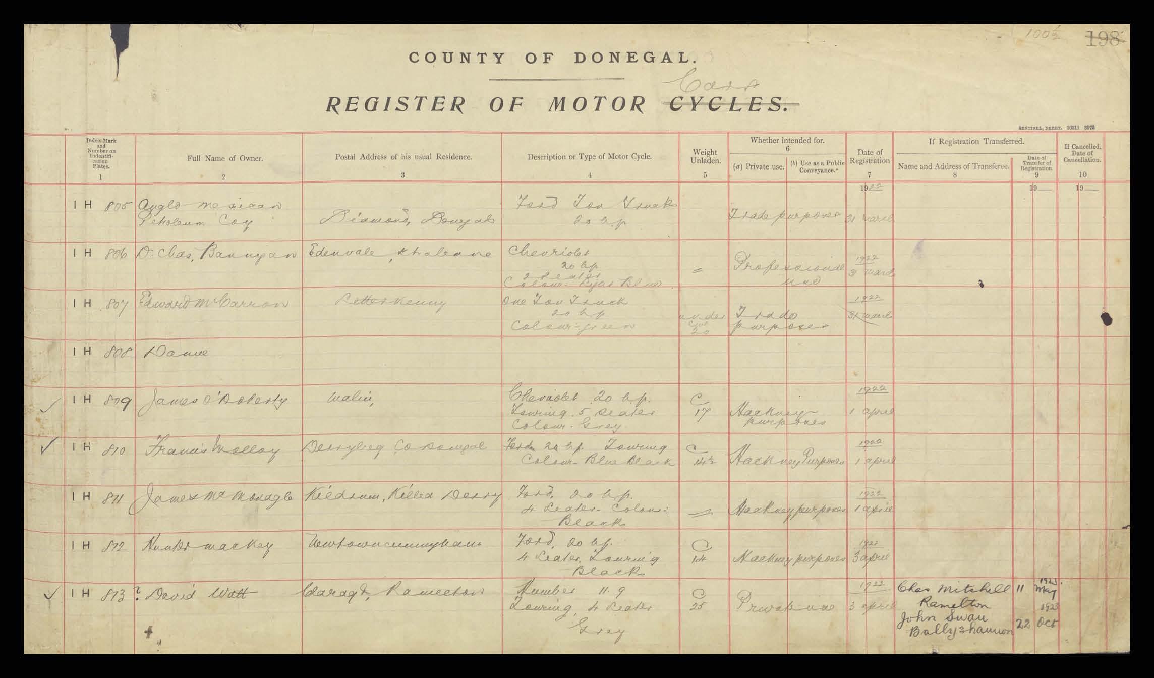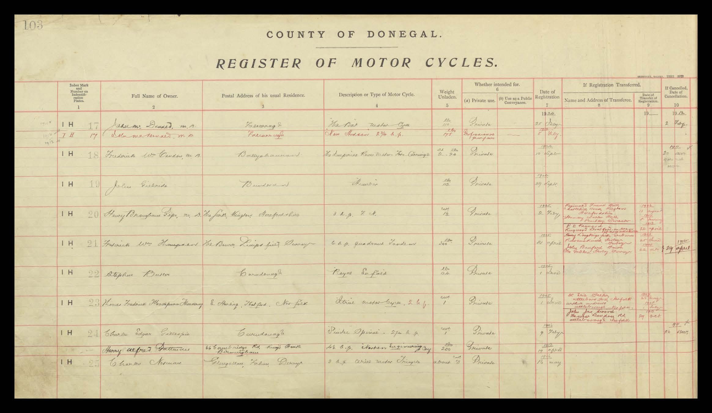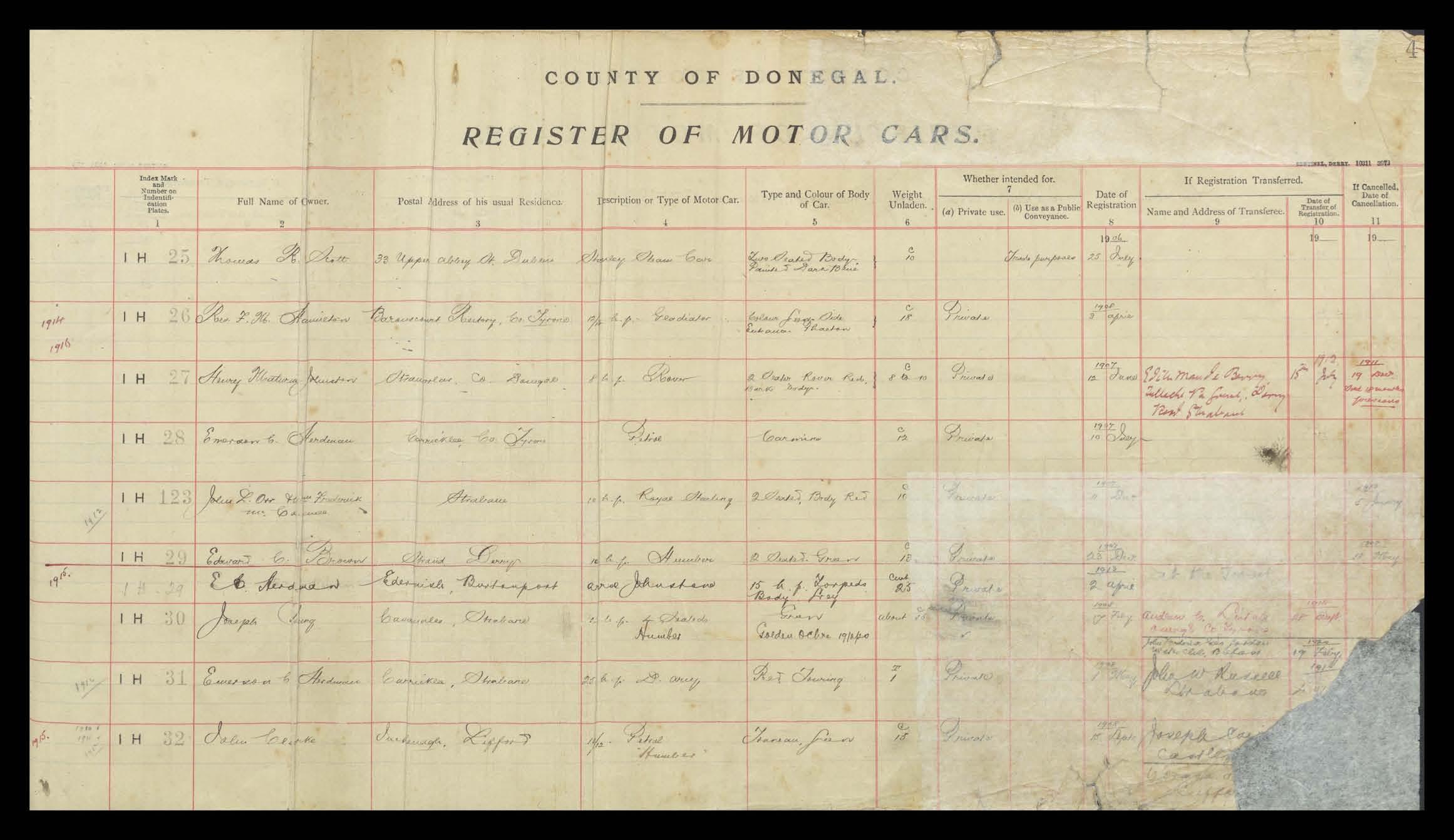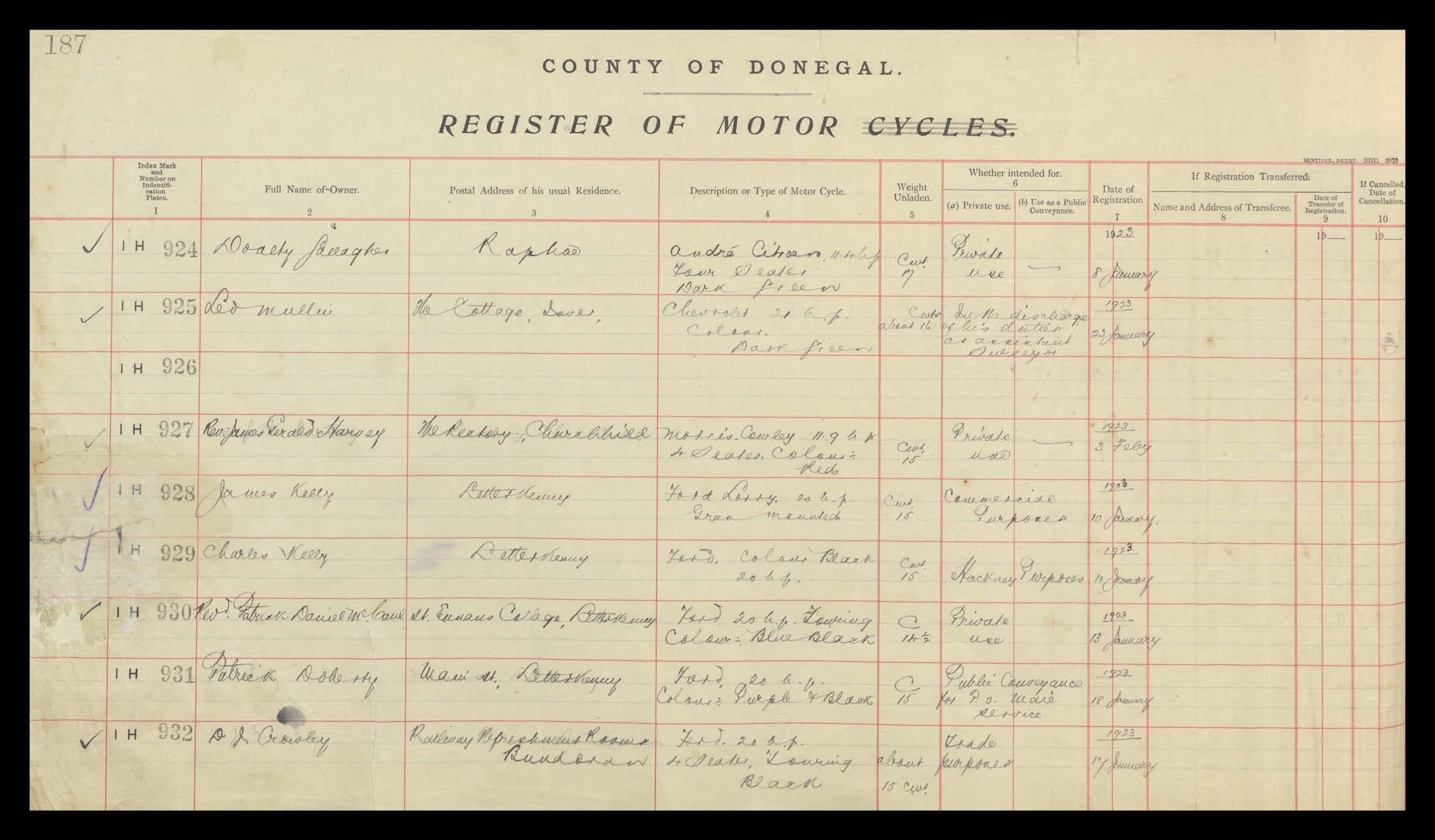 Register of Motor Vehicles, 1903 - 1923