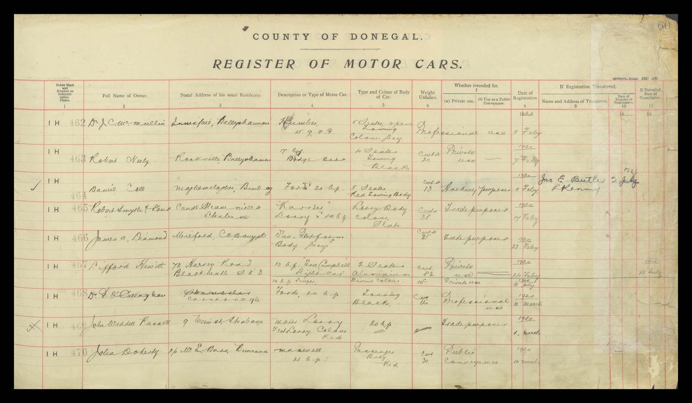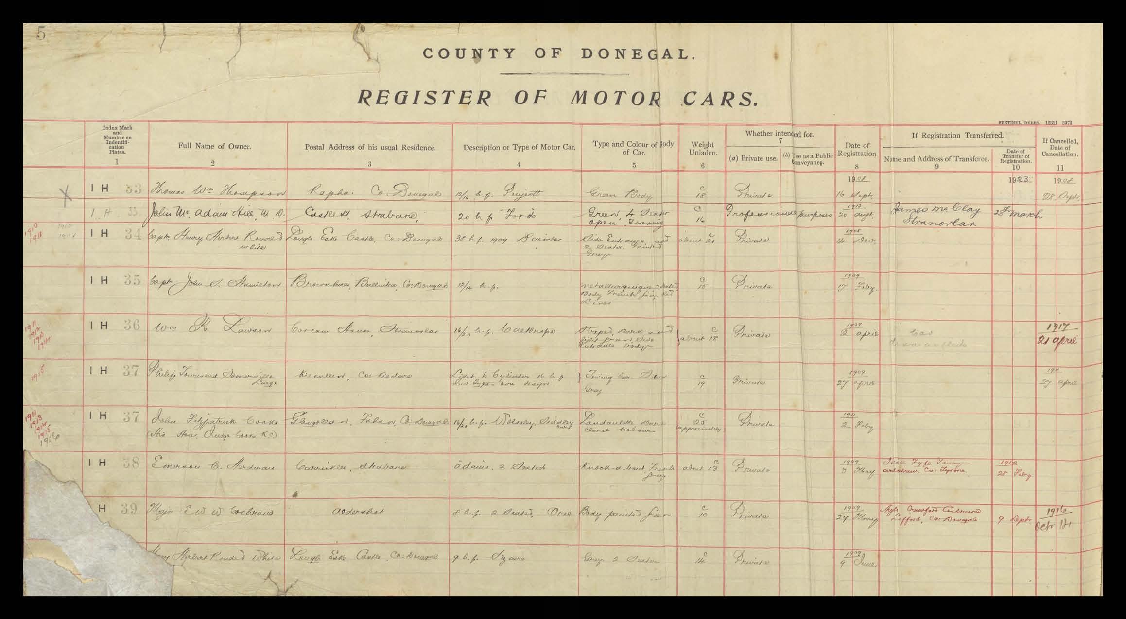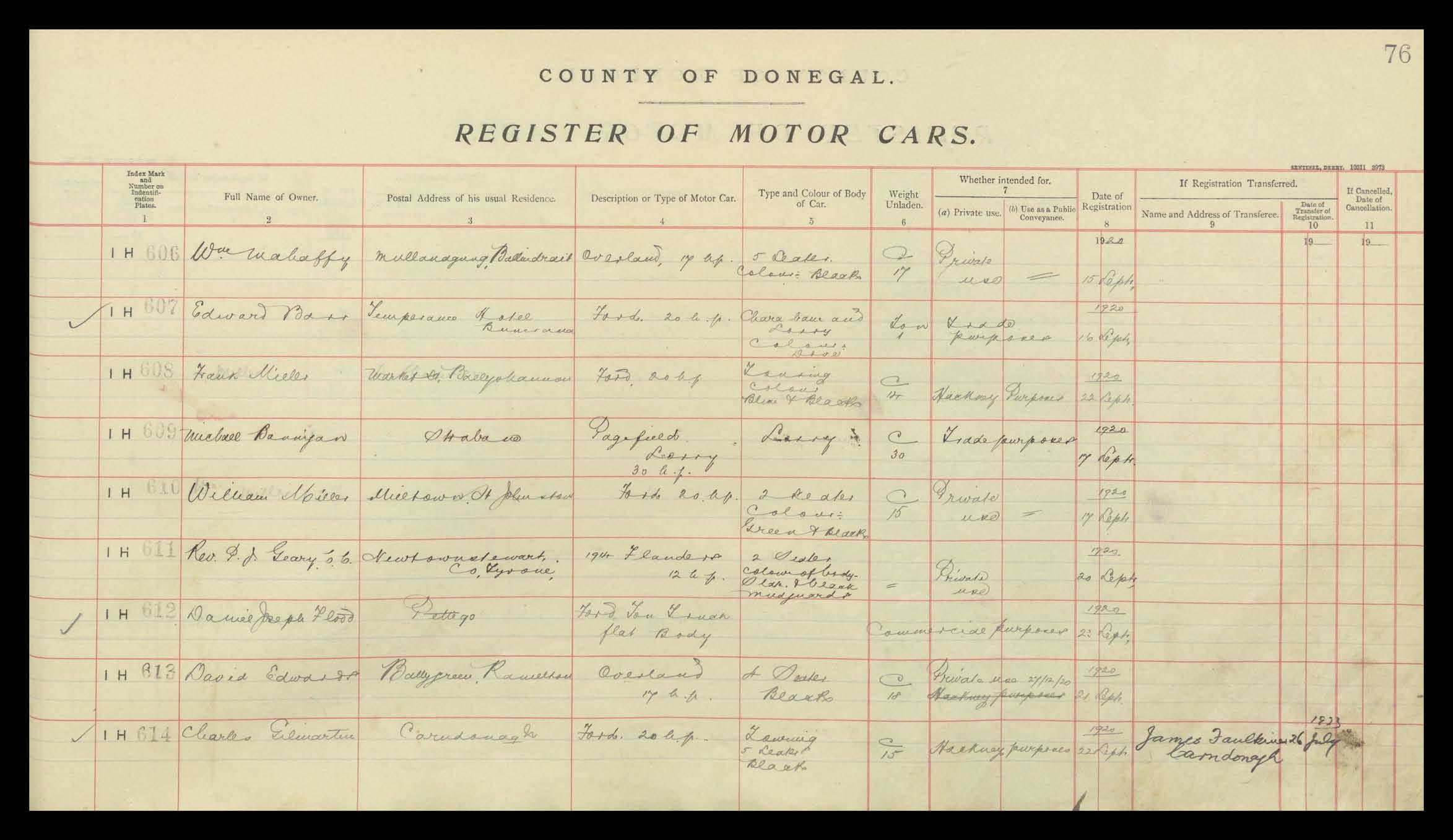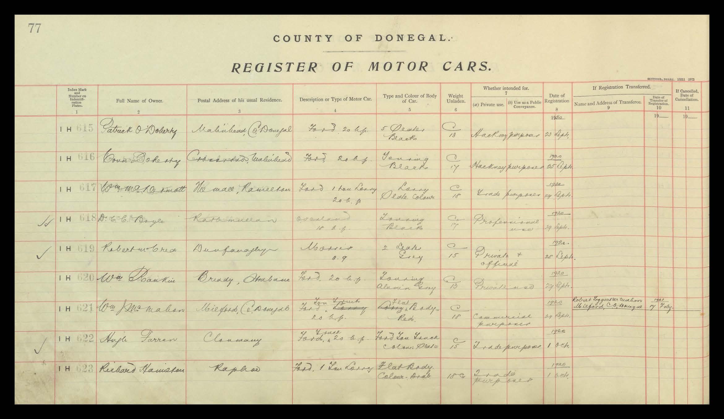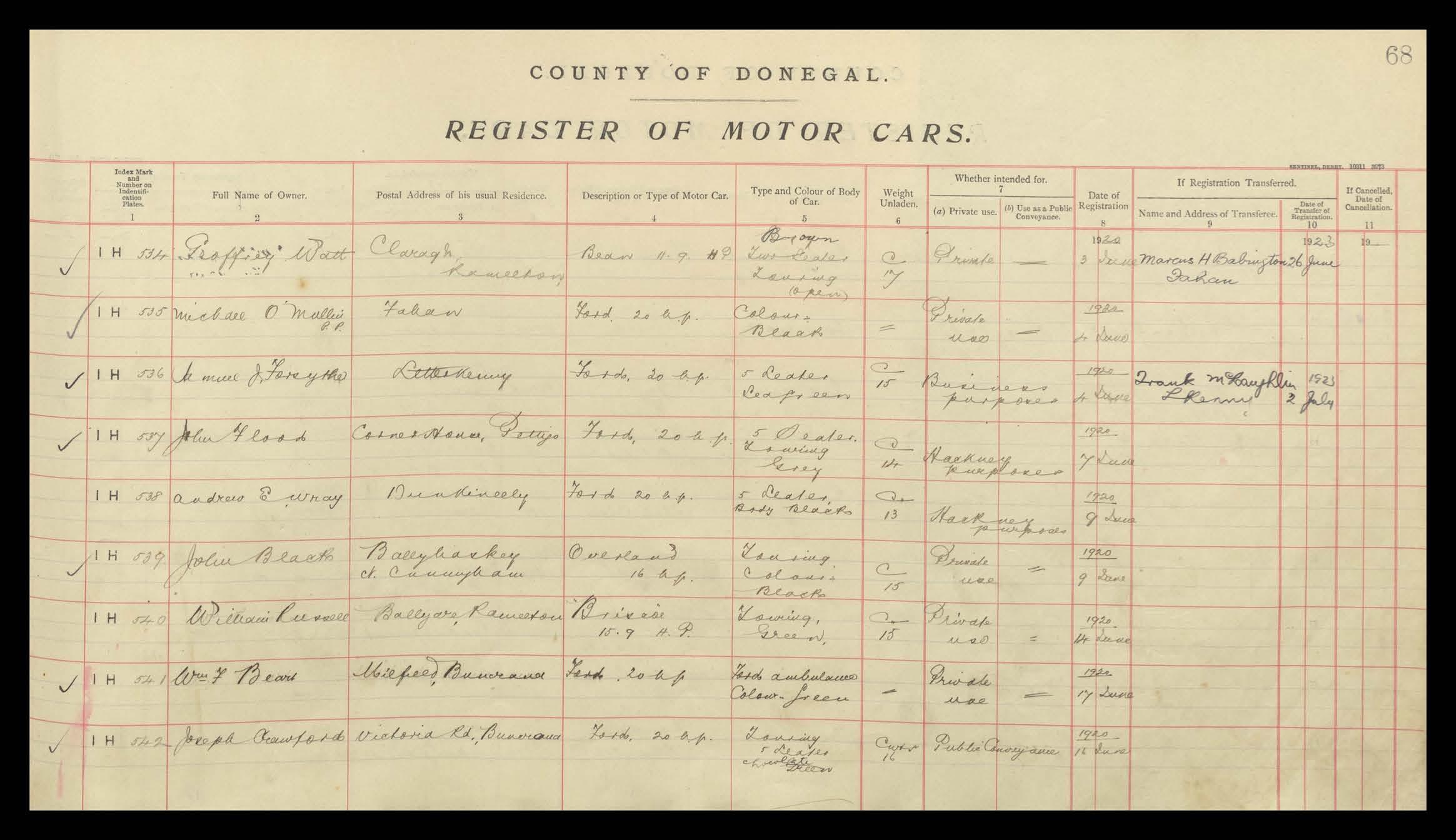 Register of Motor Vehicles, 1903 - 1923