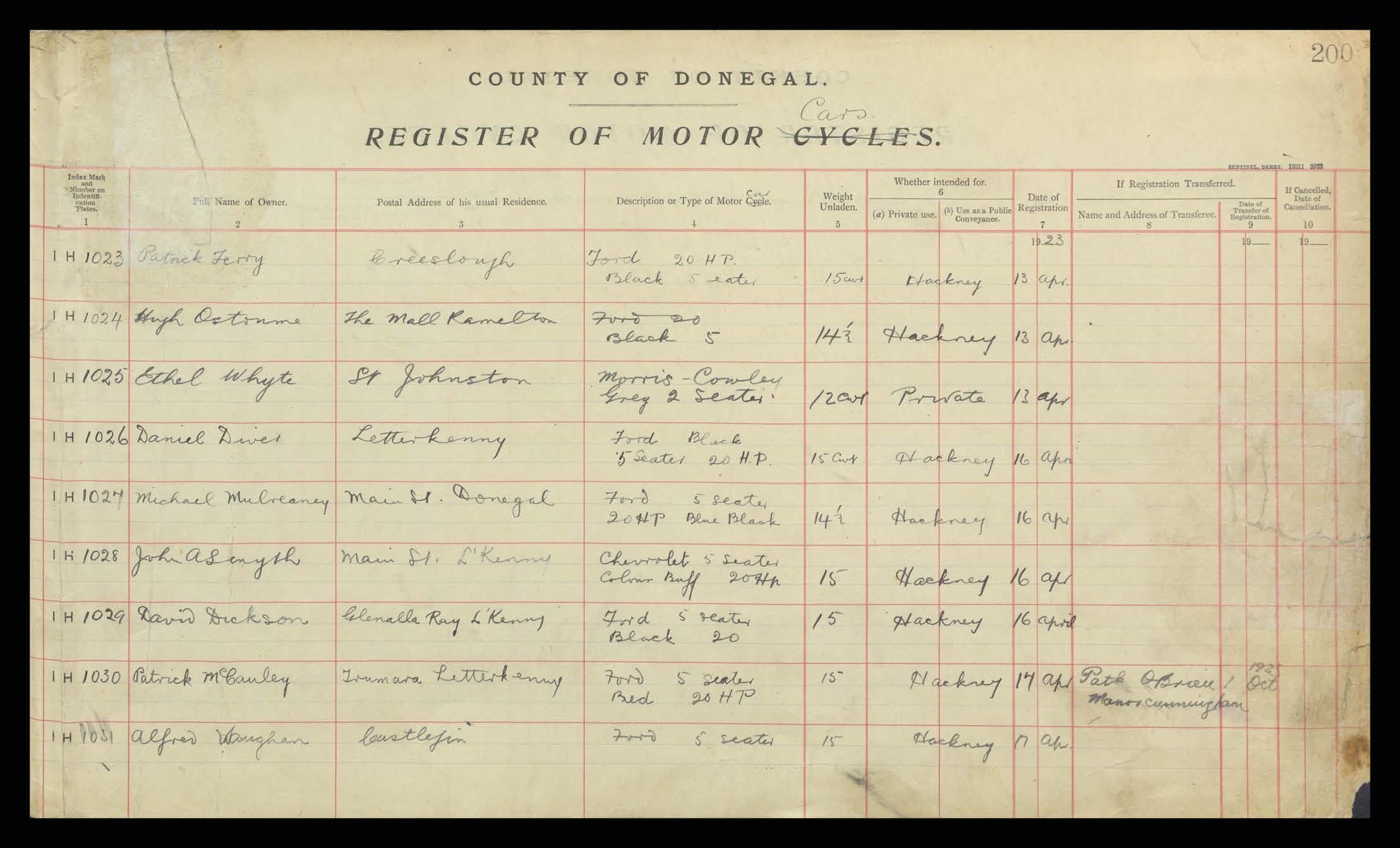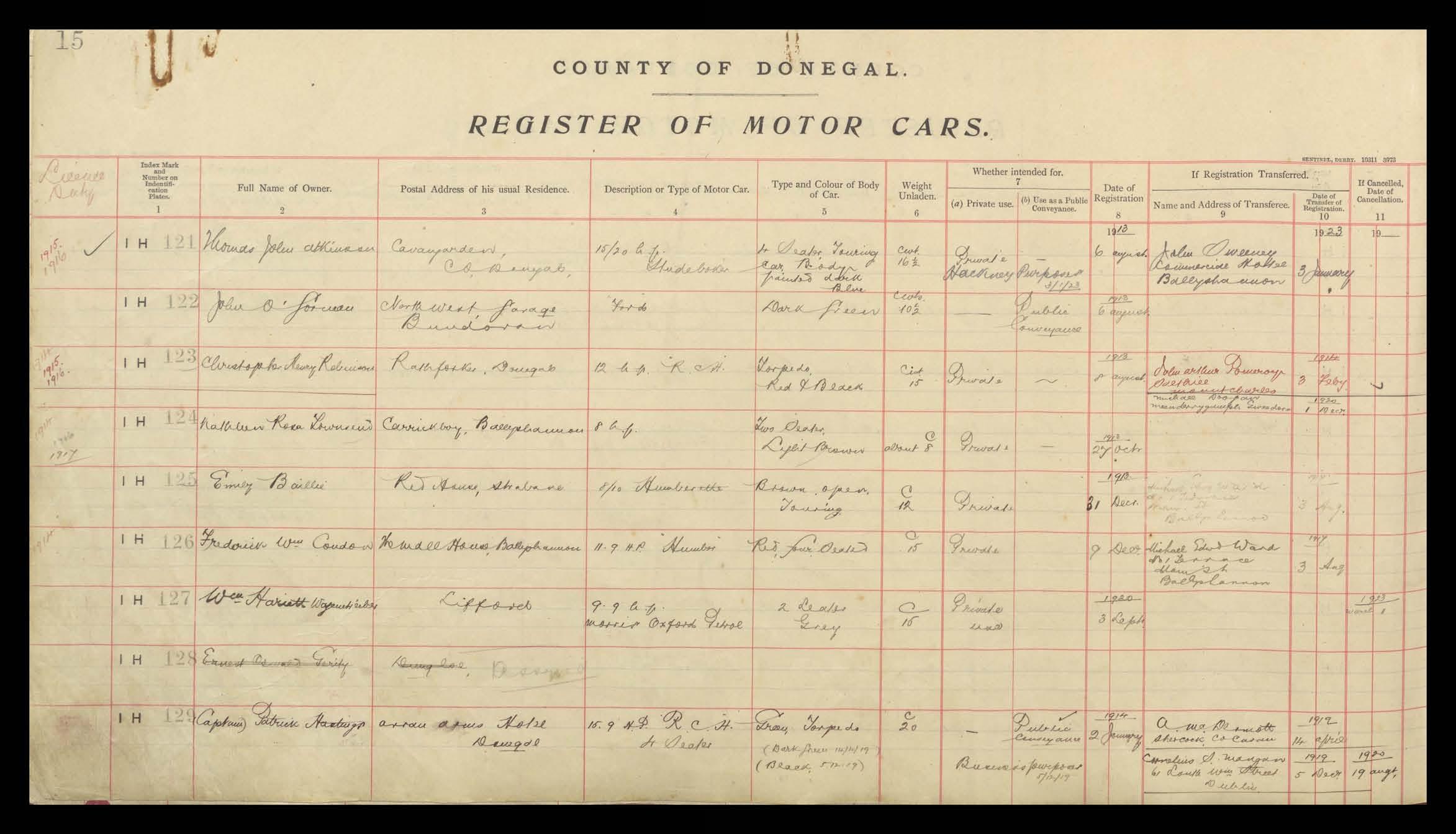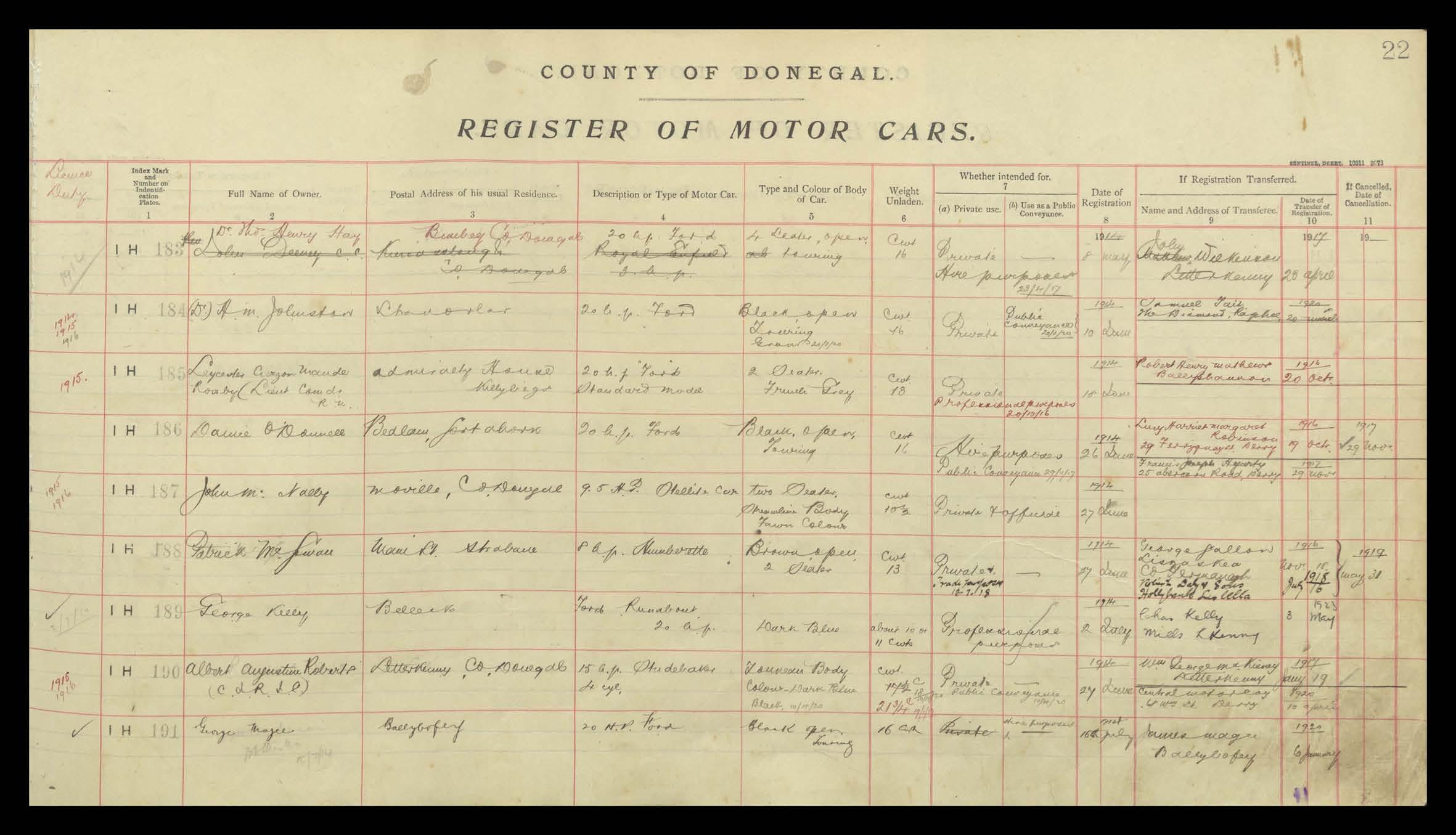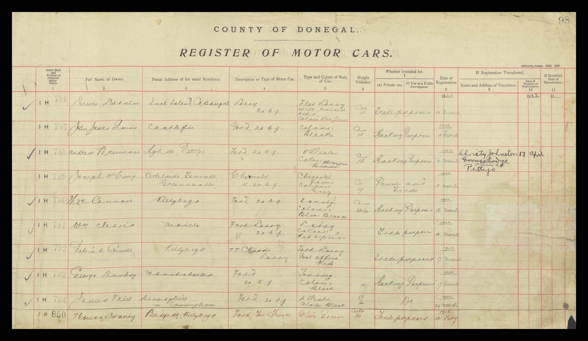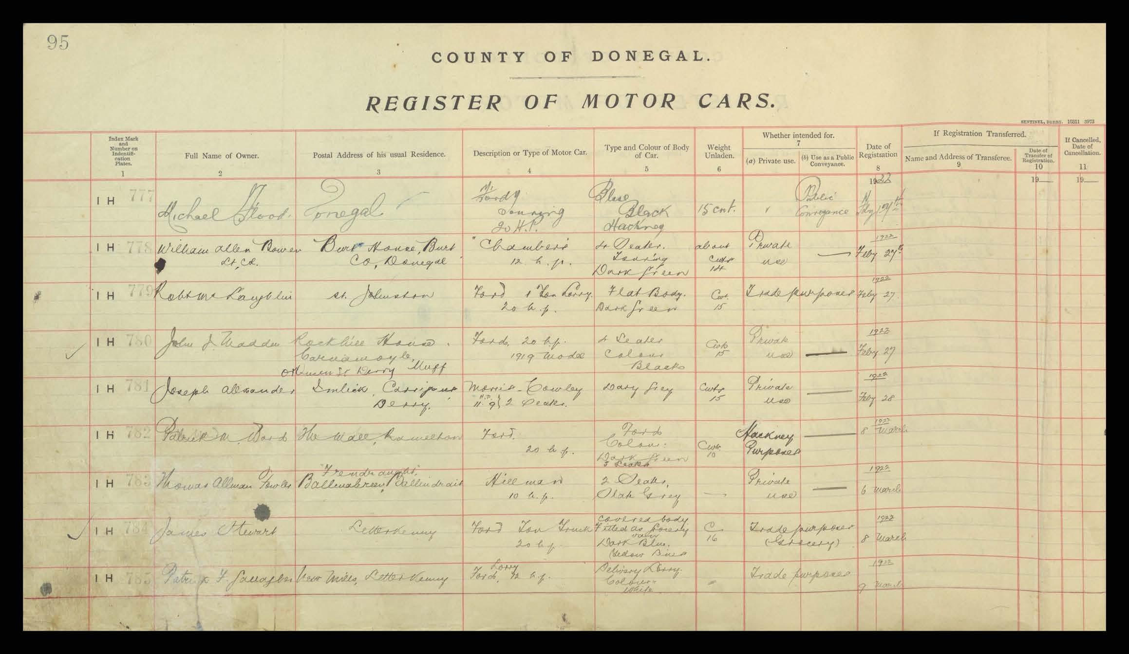 Register of Motor Vehicles, 1903 - 1923