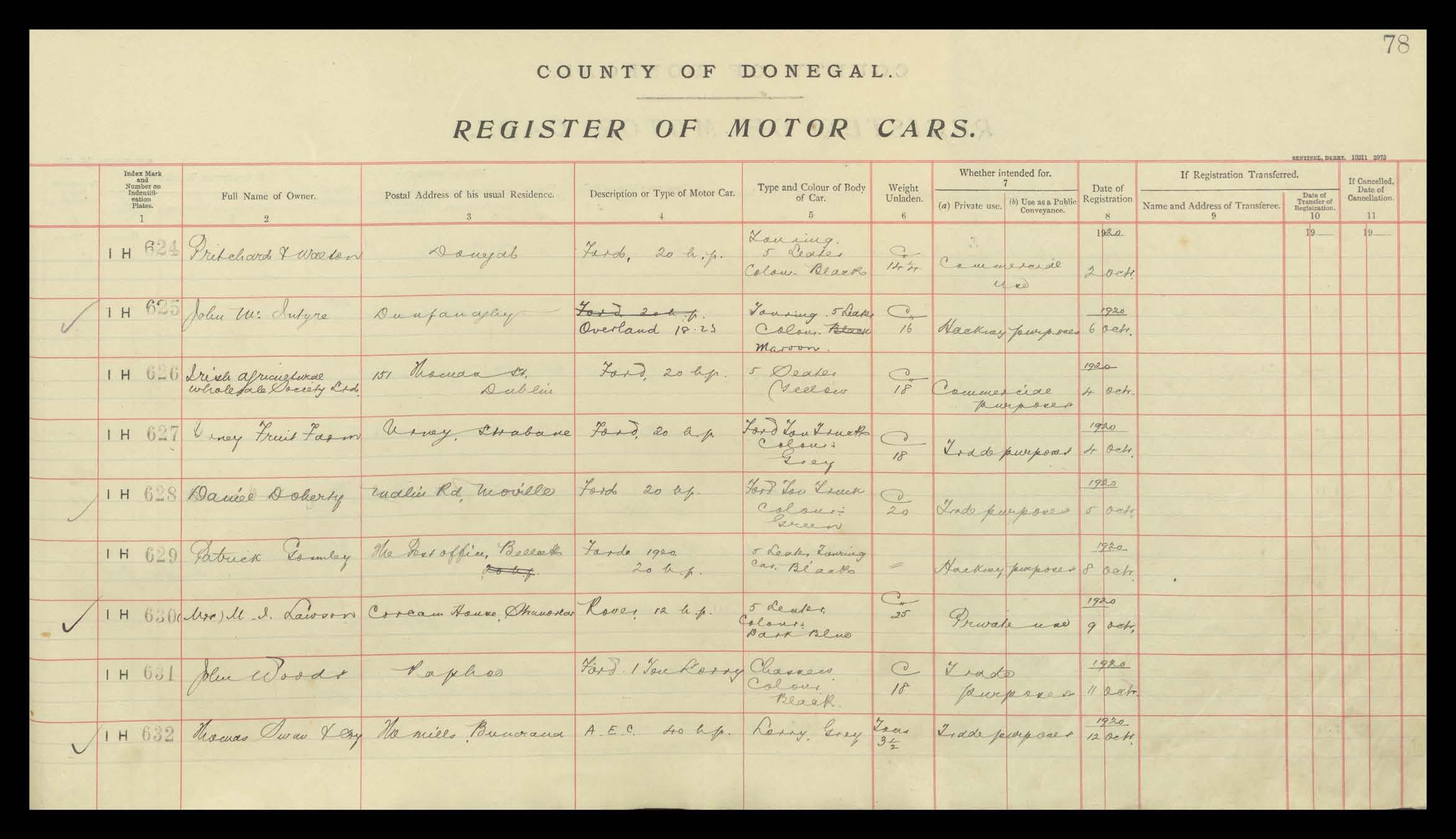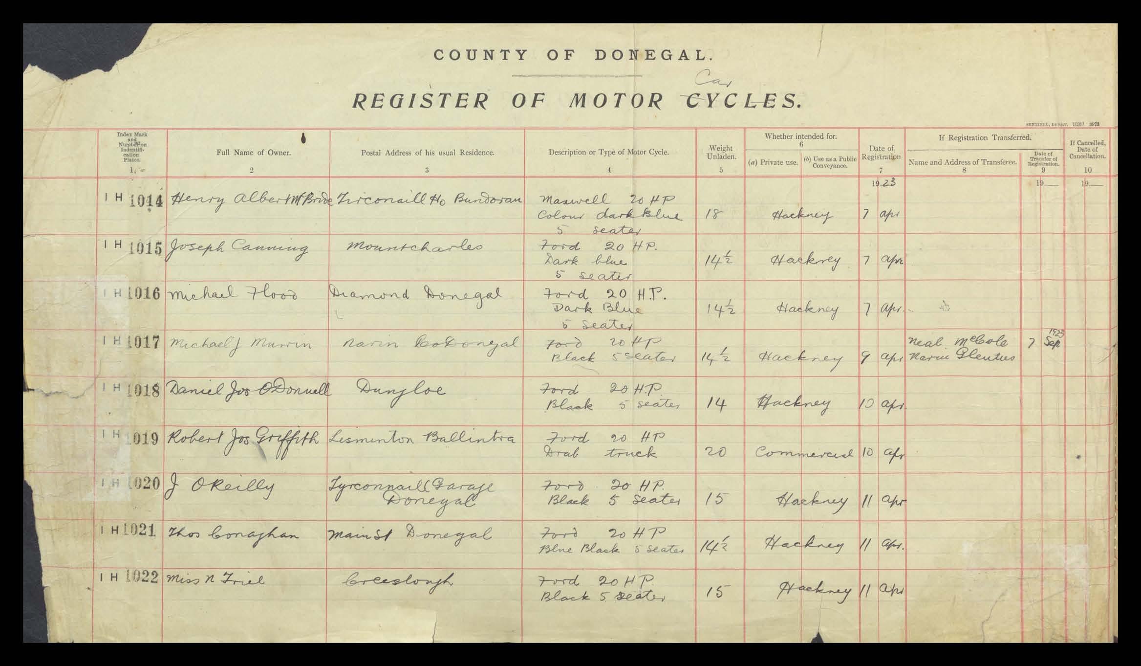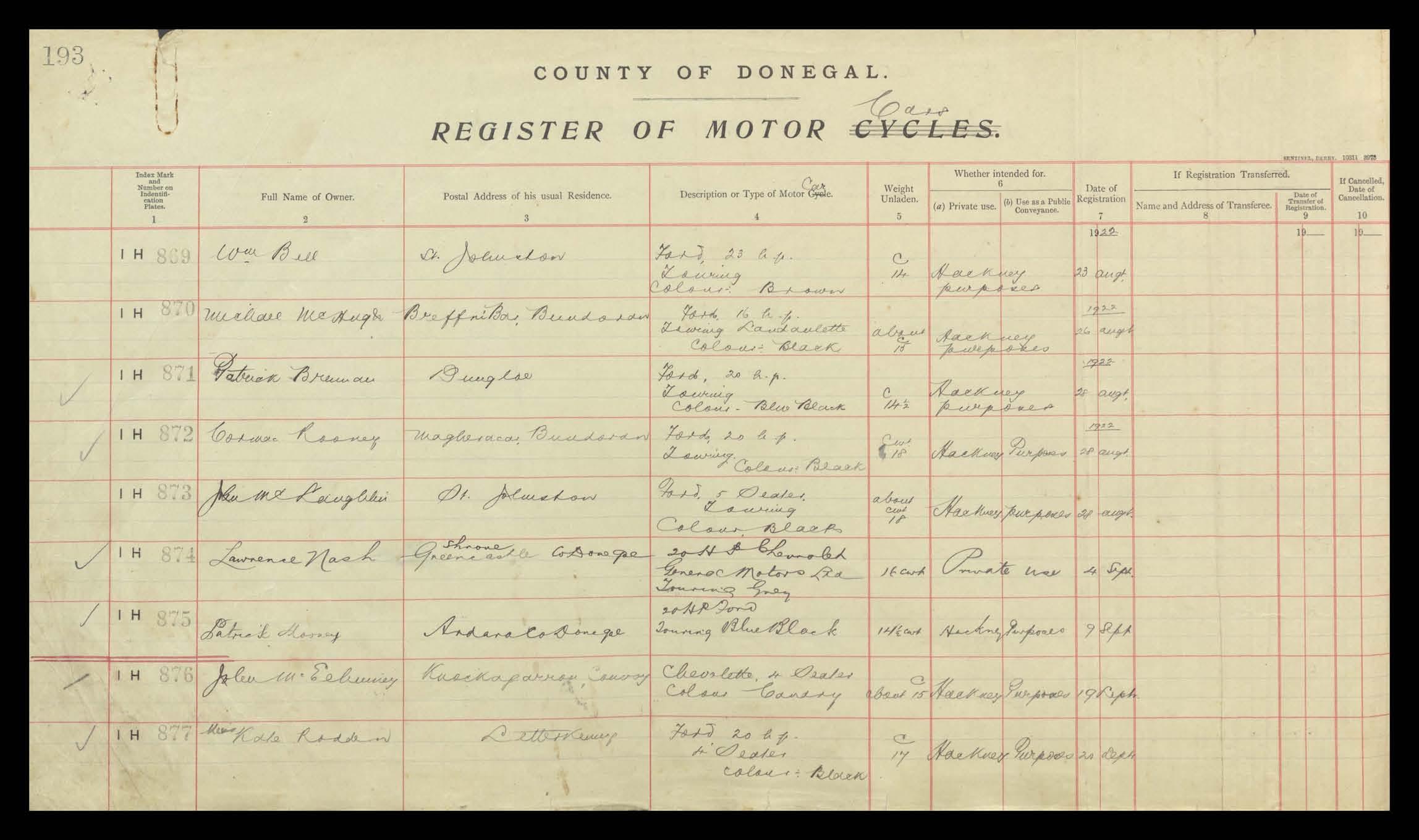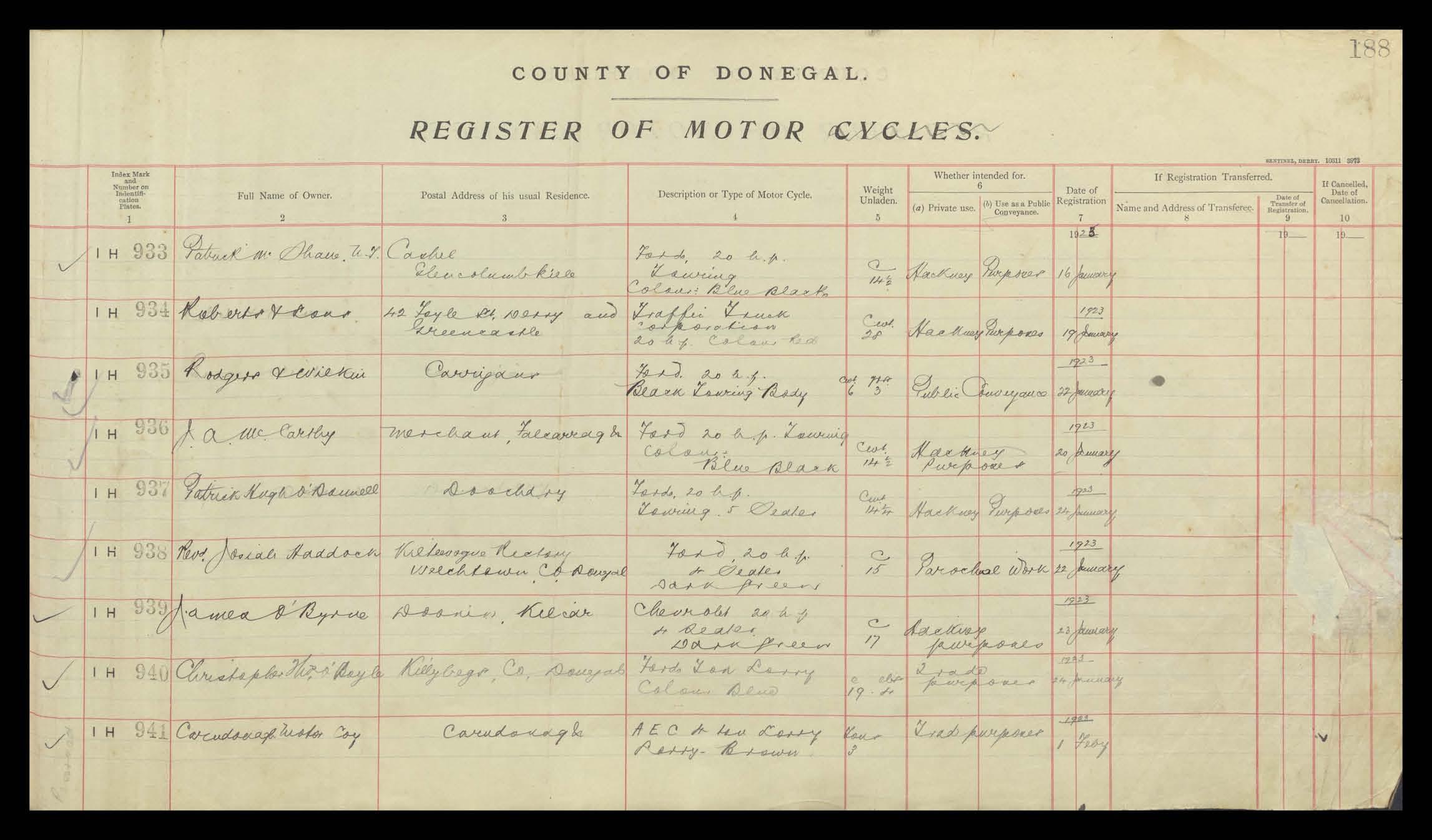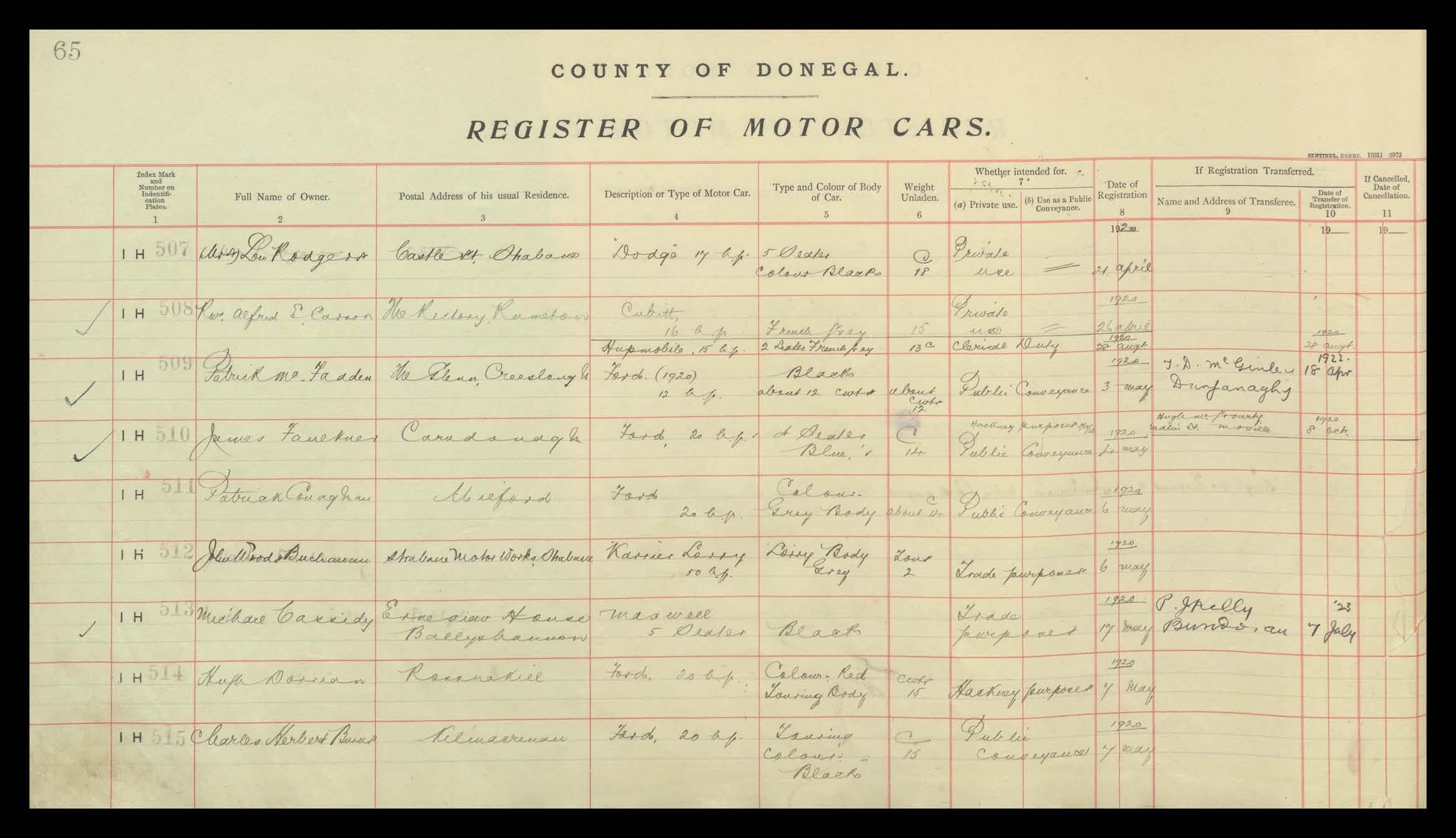 Register of Motor Vehicles, 1903 - 1923