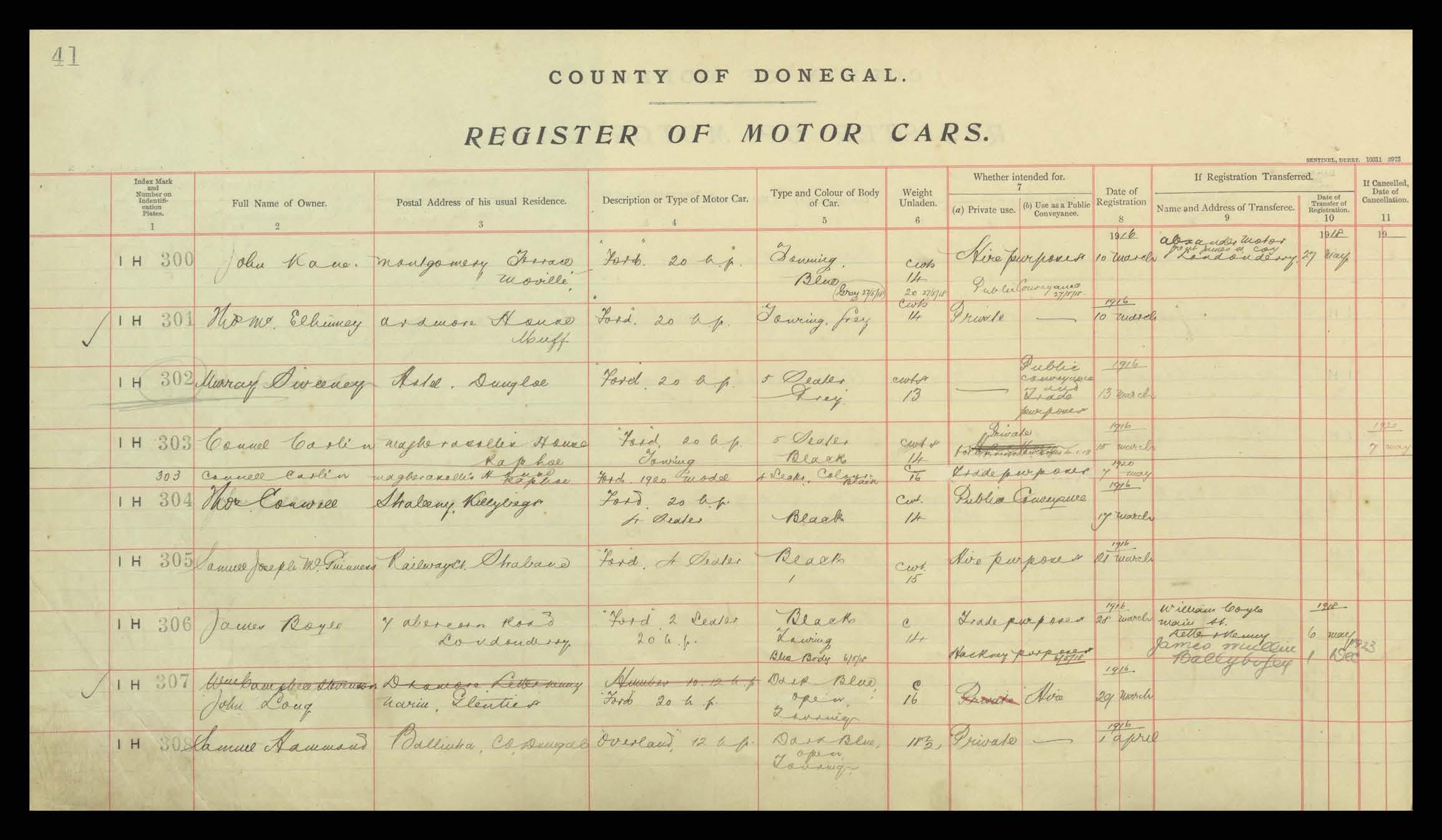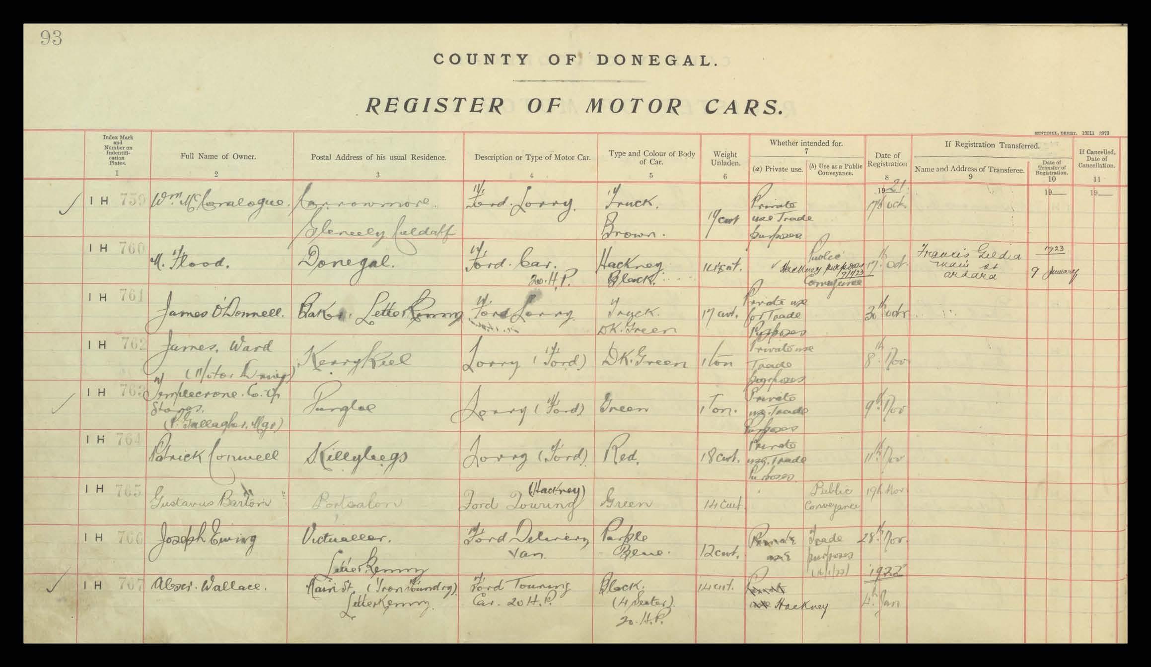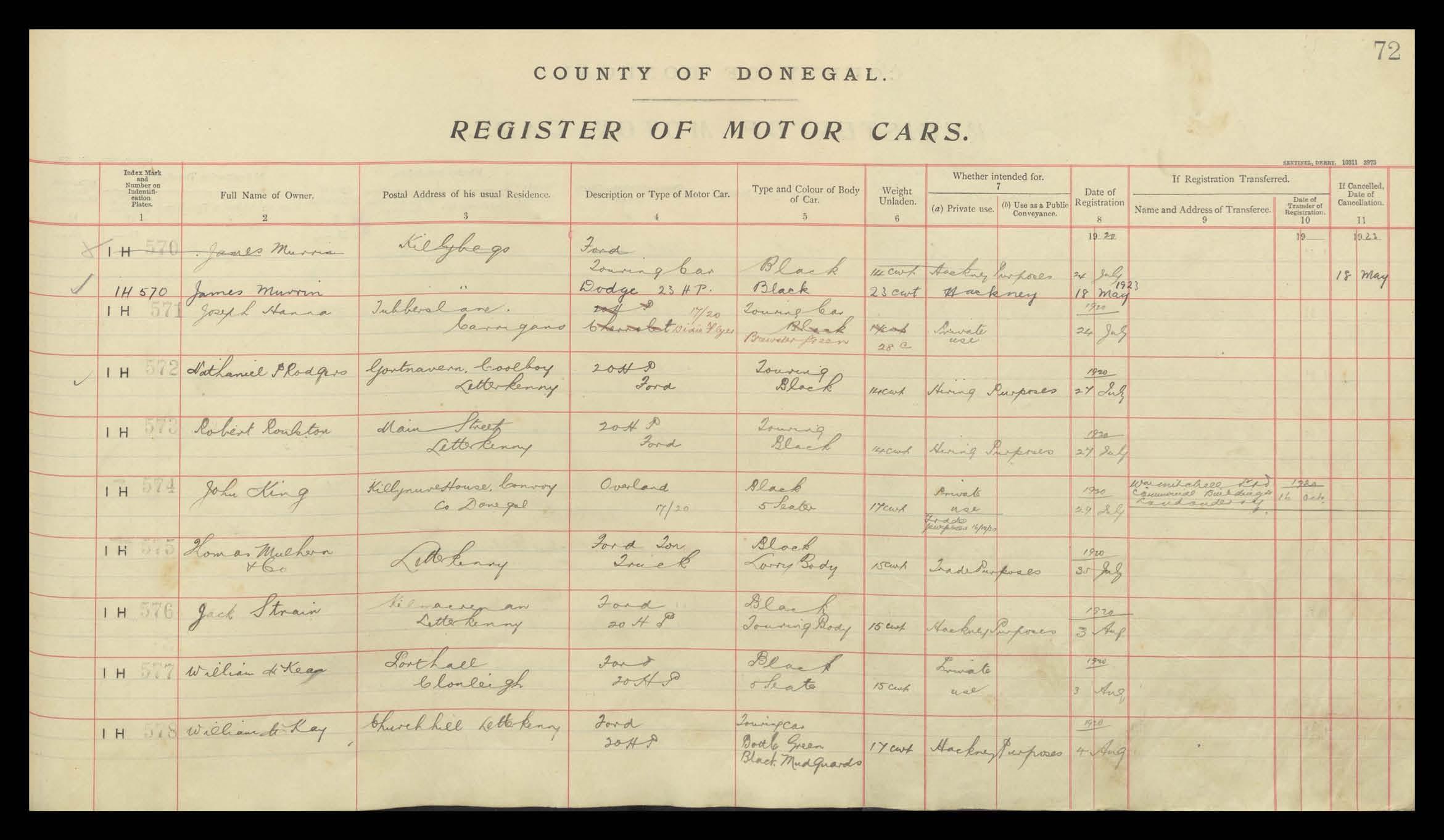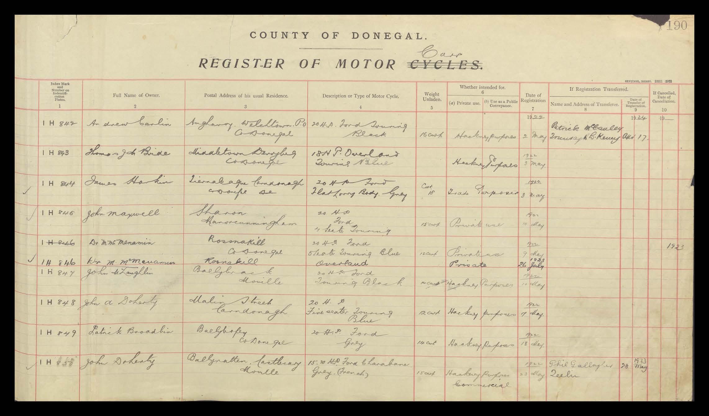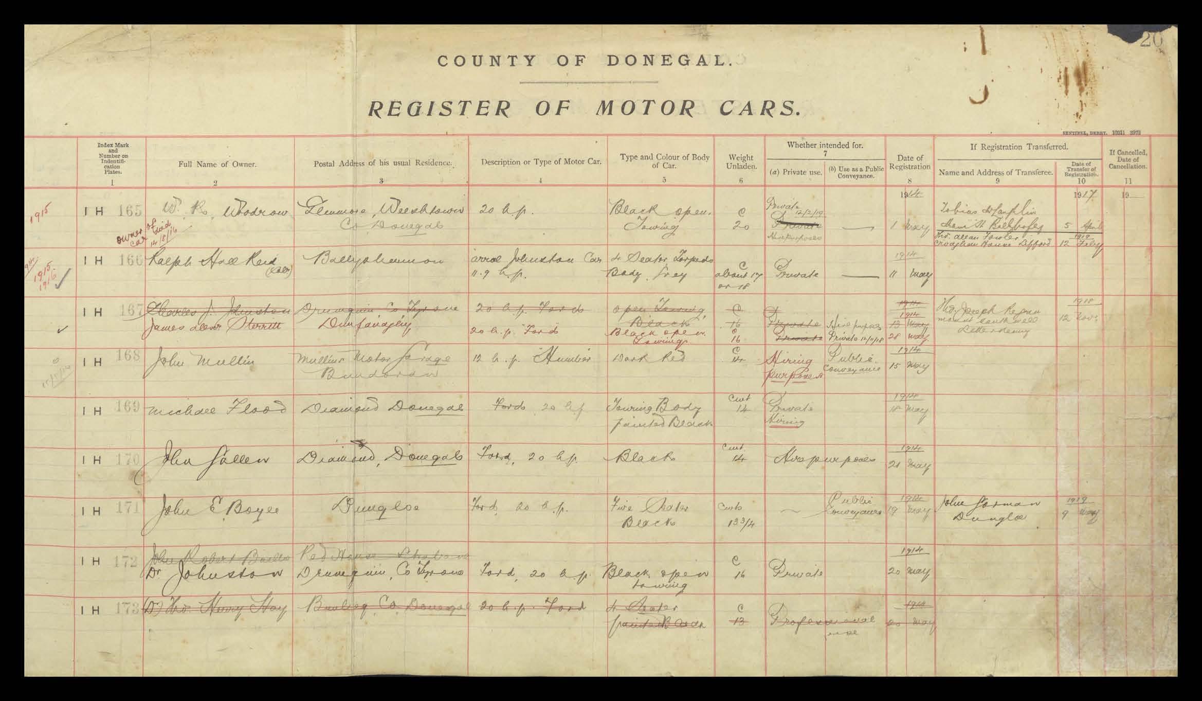 Register of Motor Vehicles, 1903 - 1923