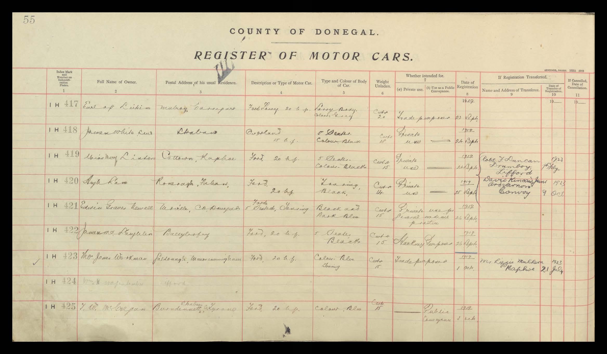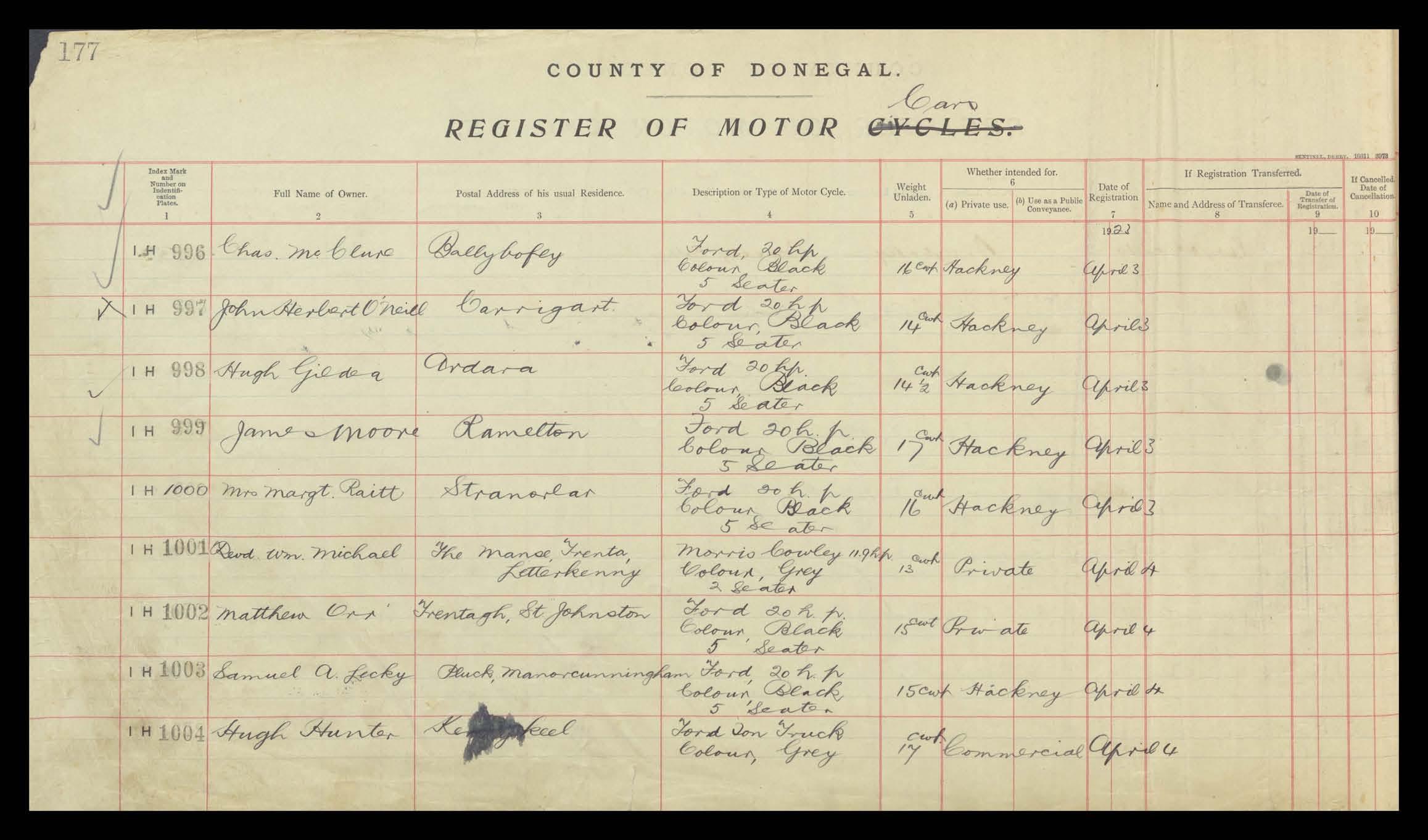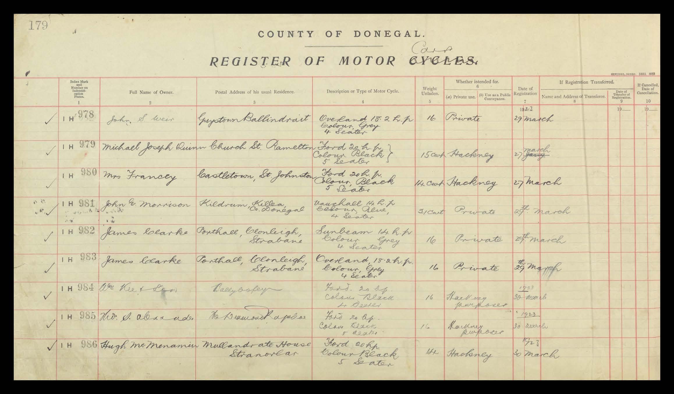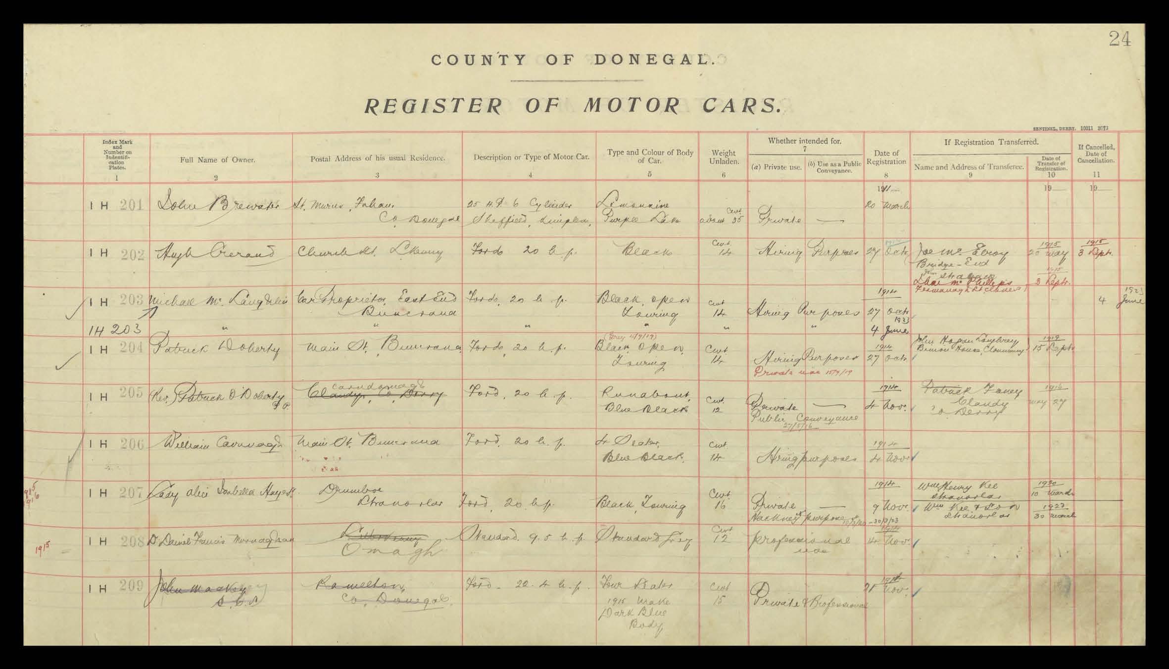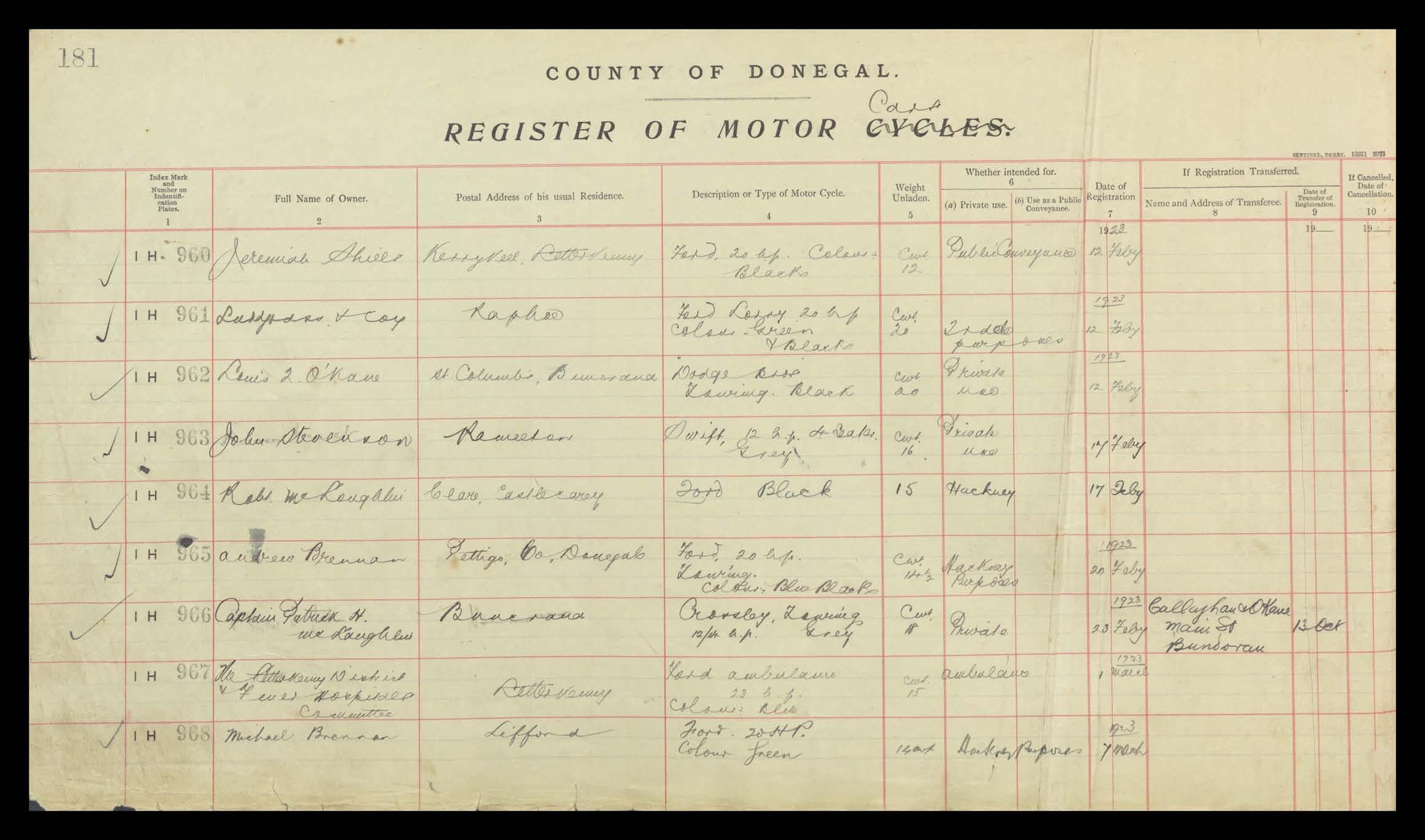 Register of Motor Vehicles, 1903 - 1923