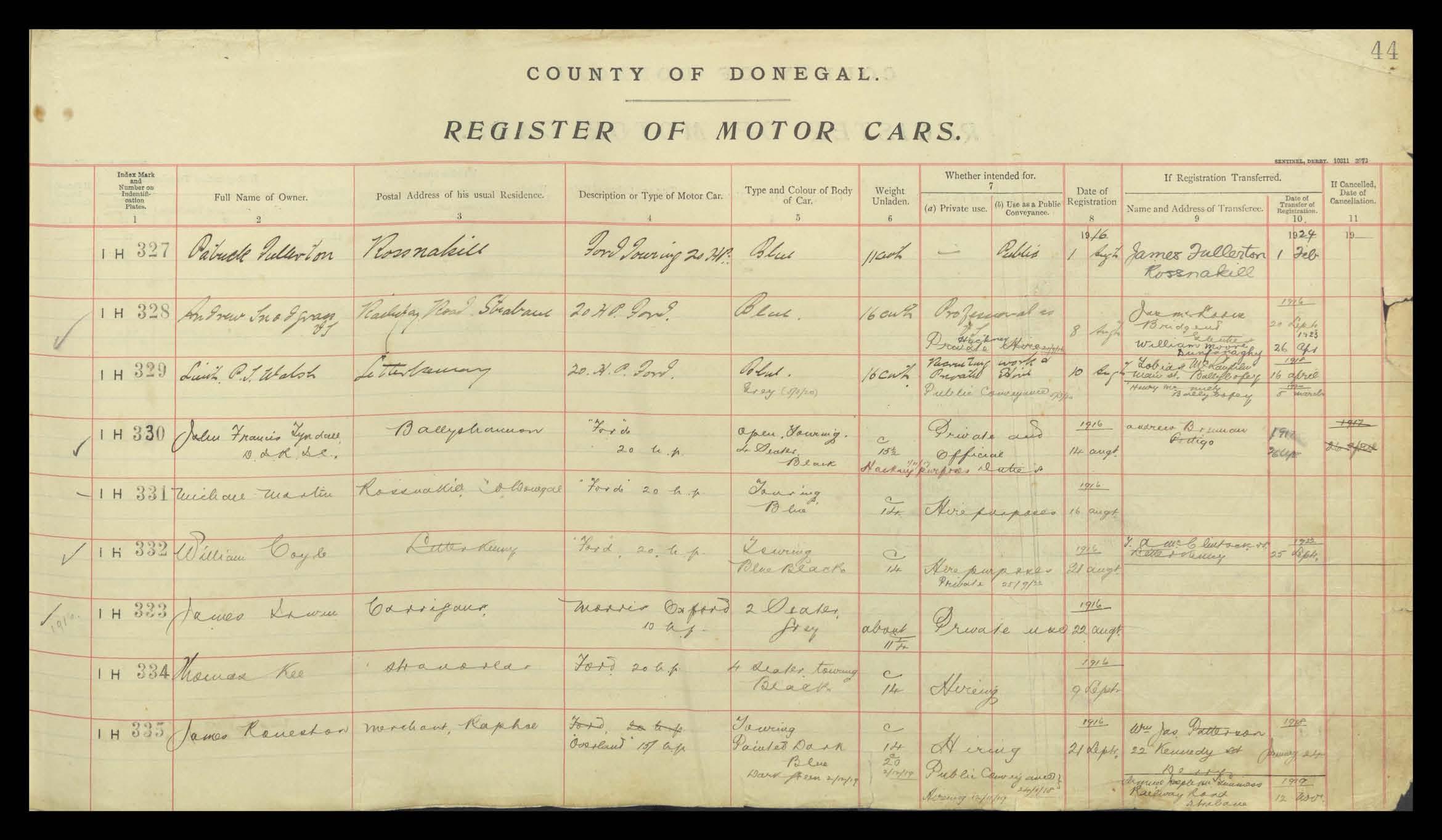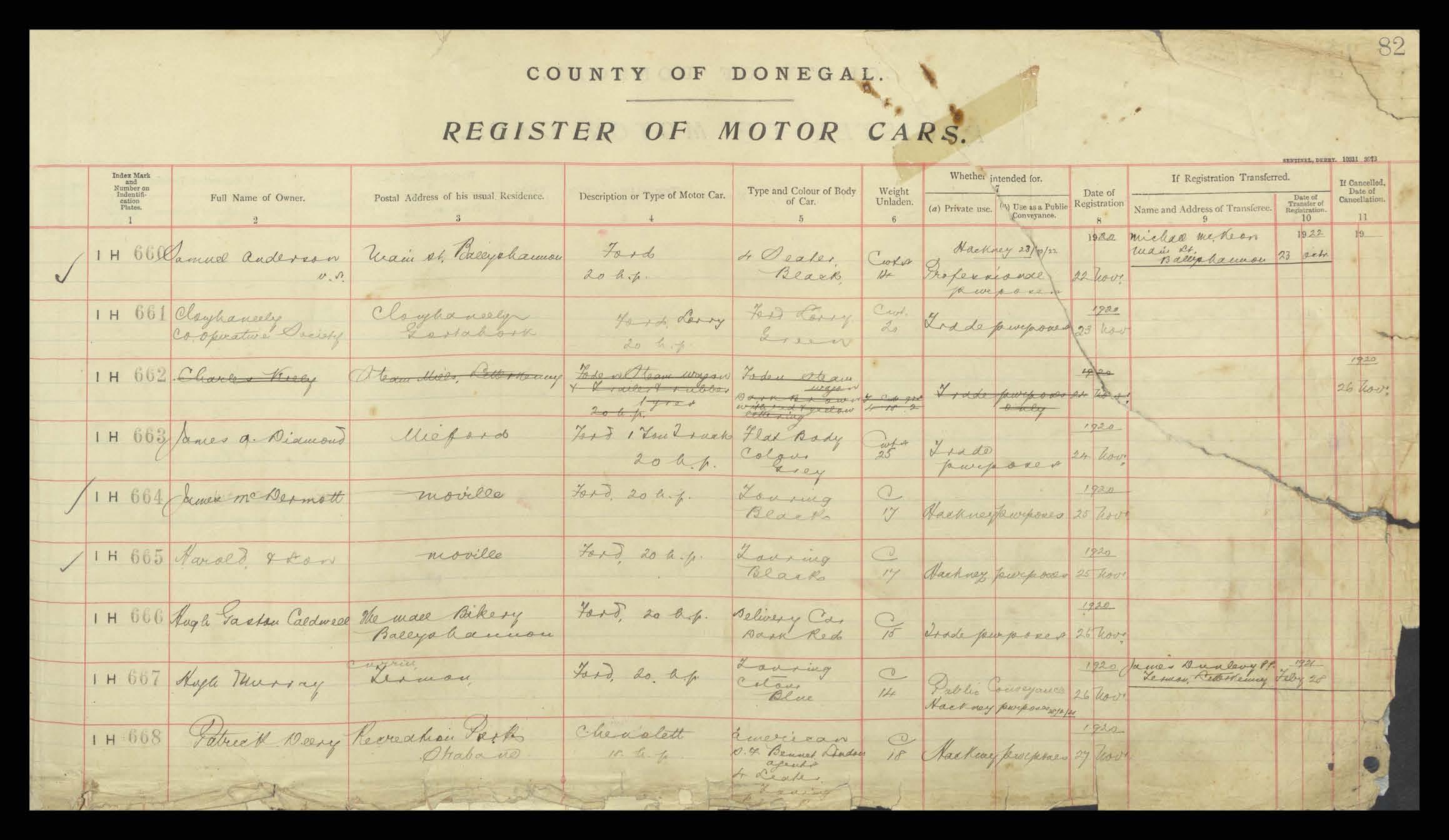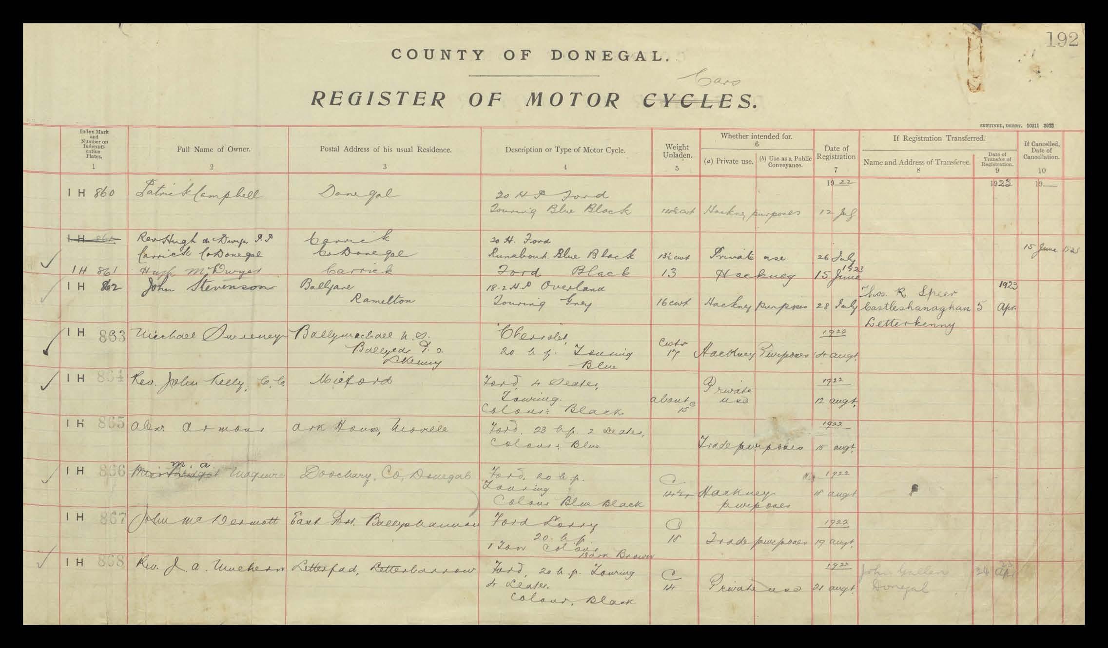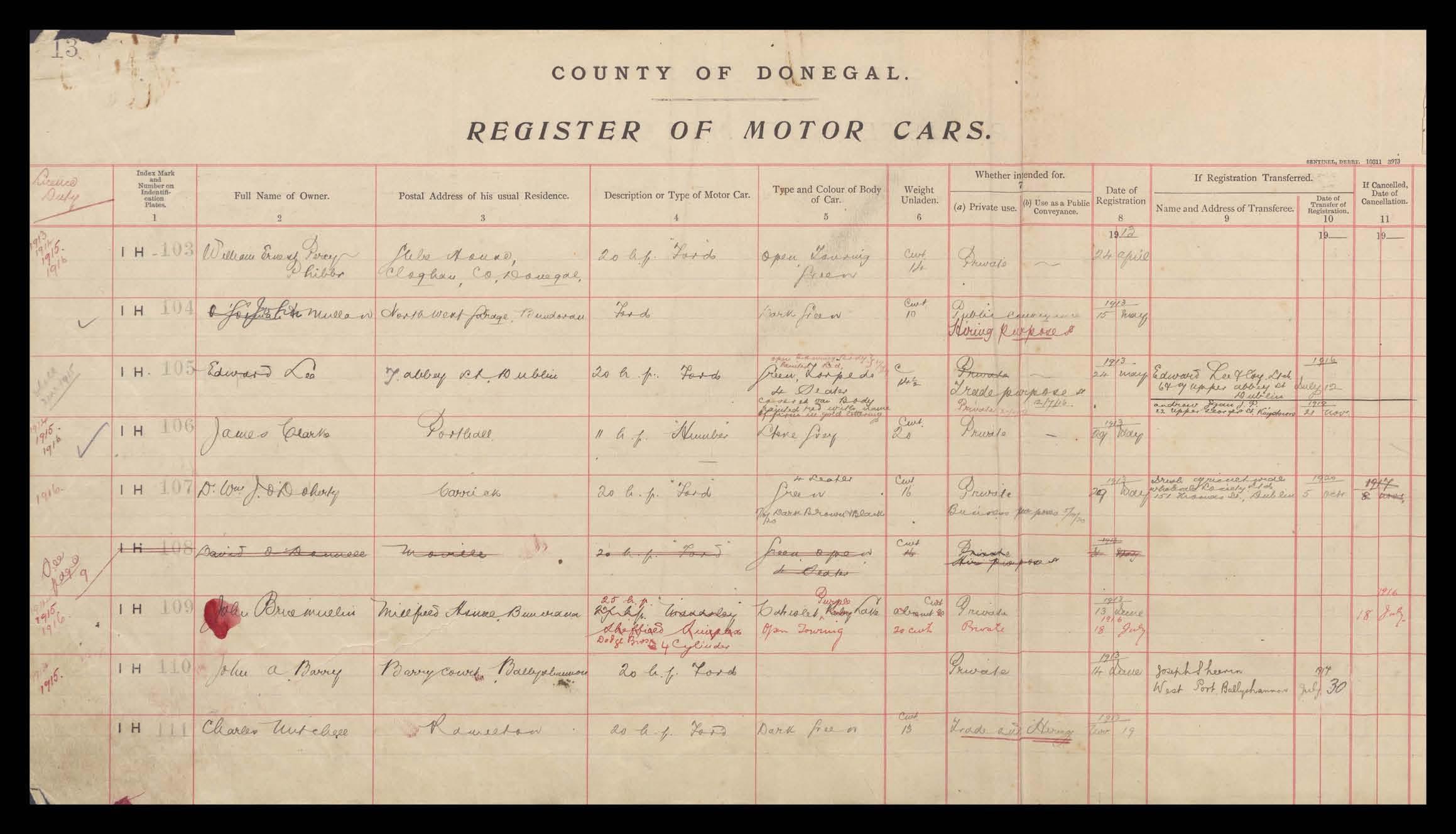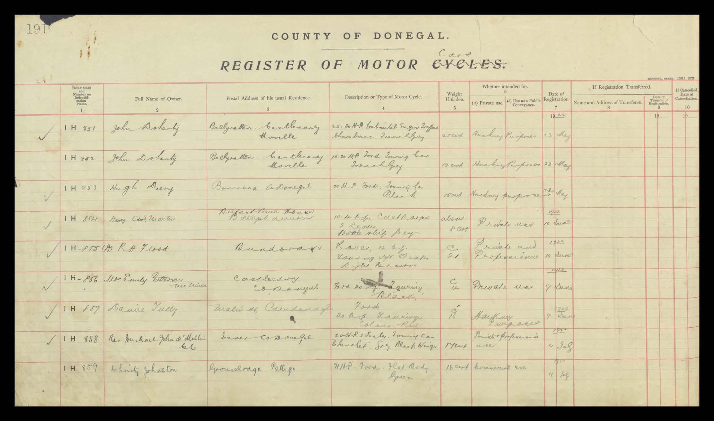 Register of Motor Vehicles, 1903 - 1923