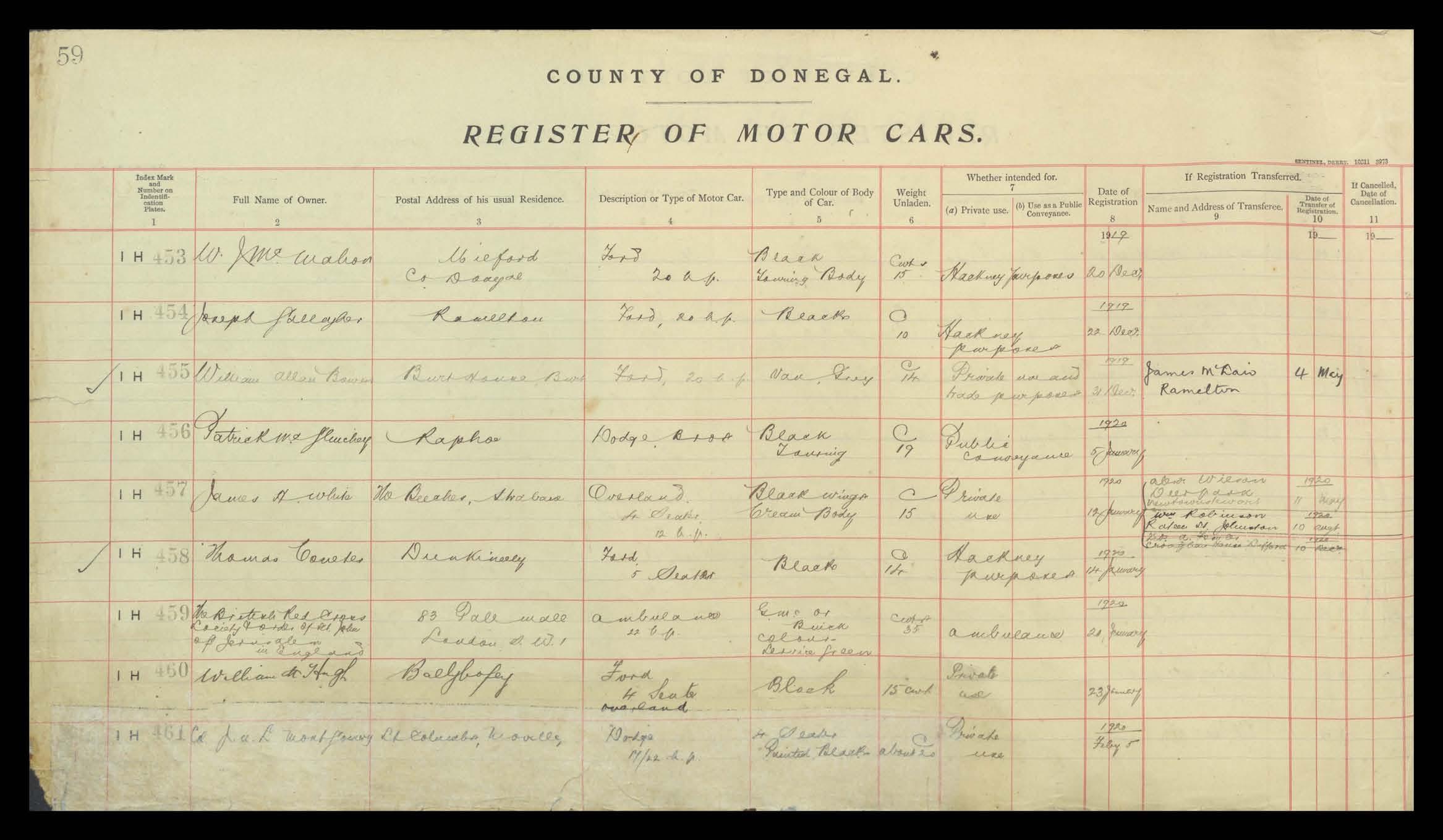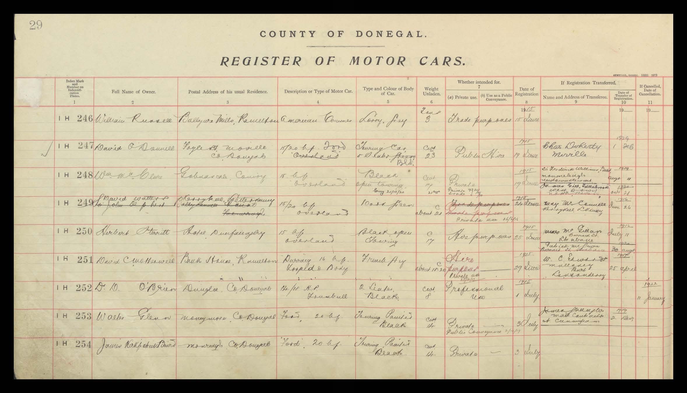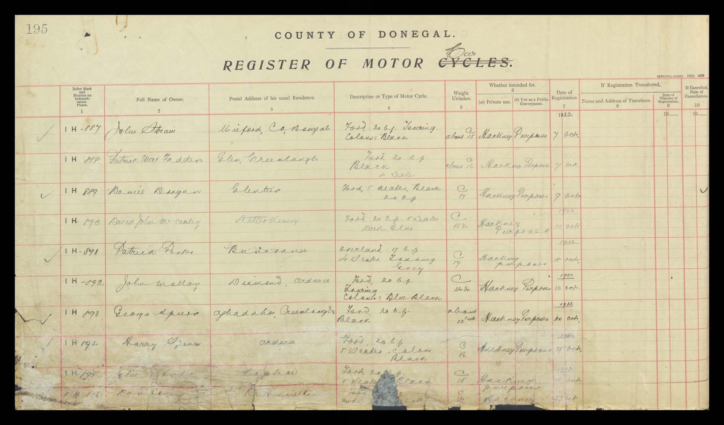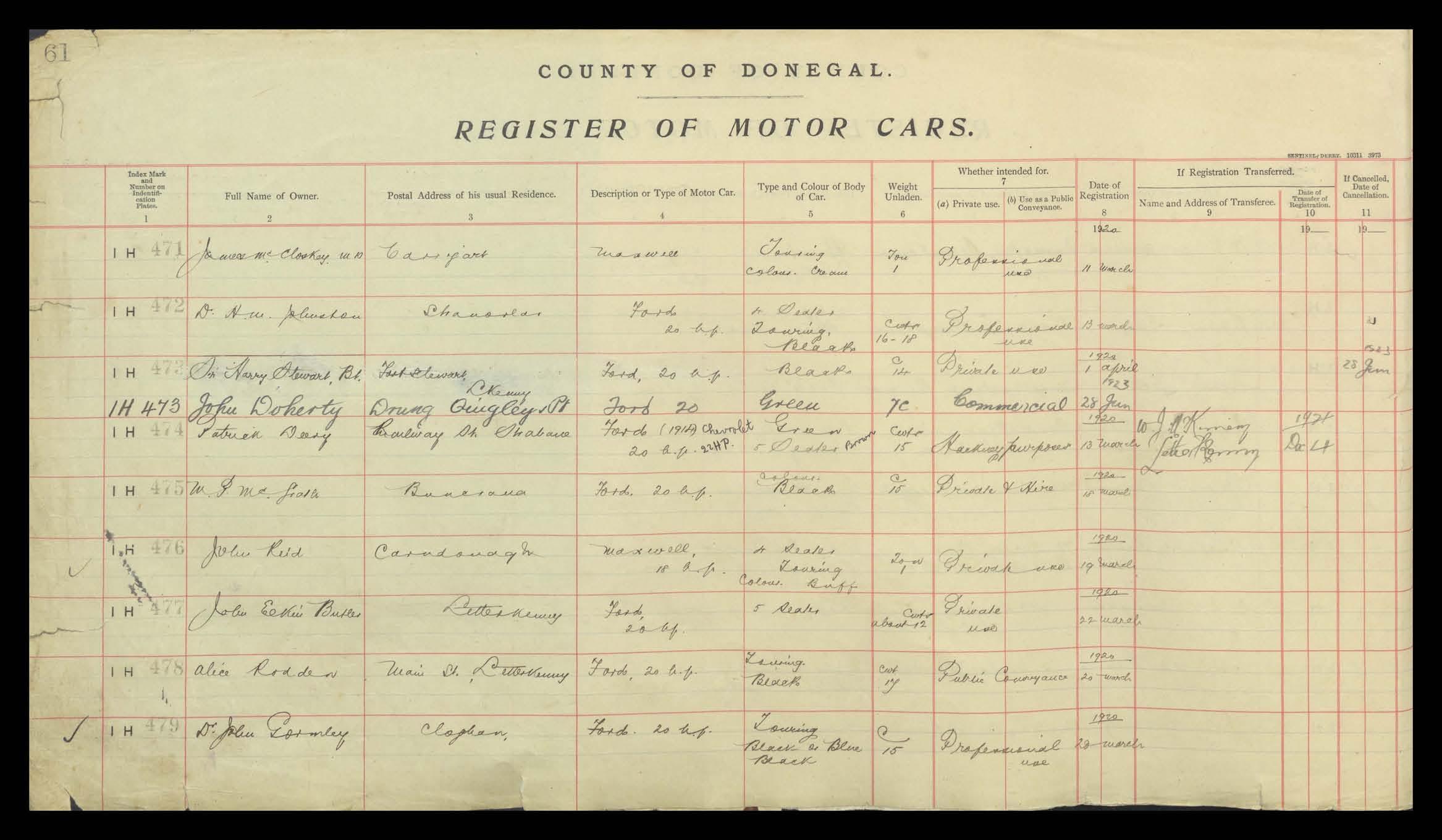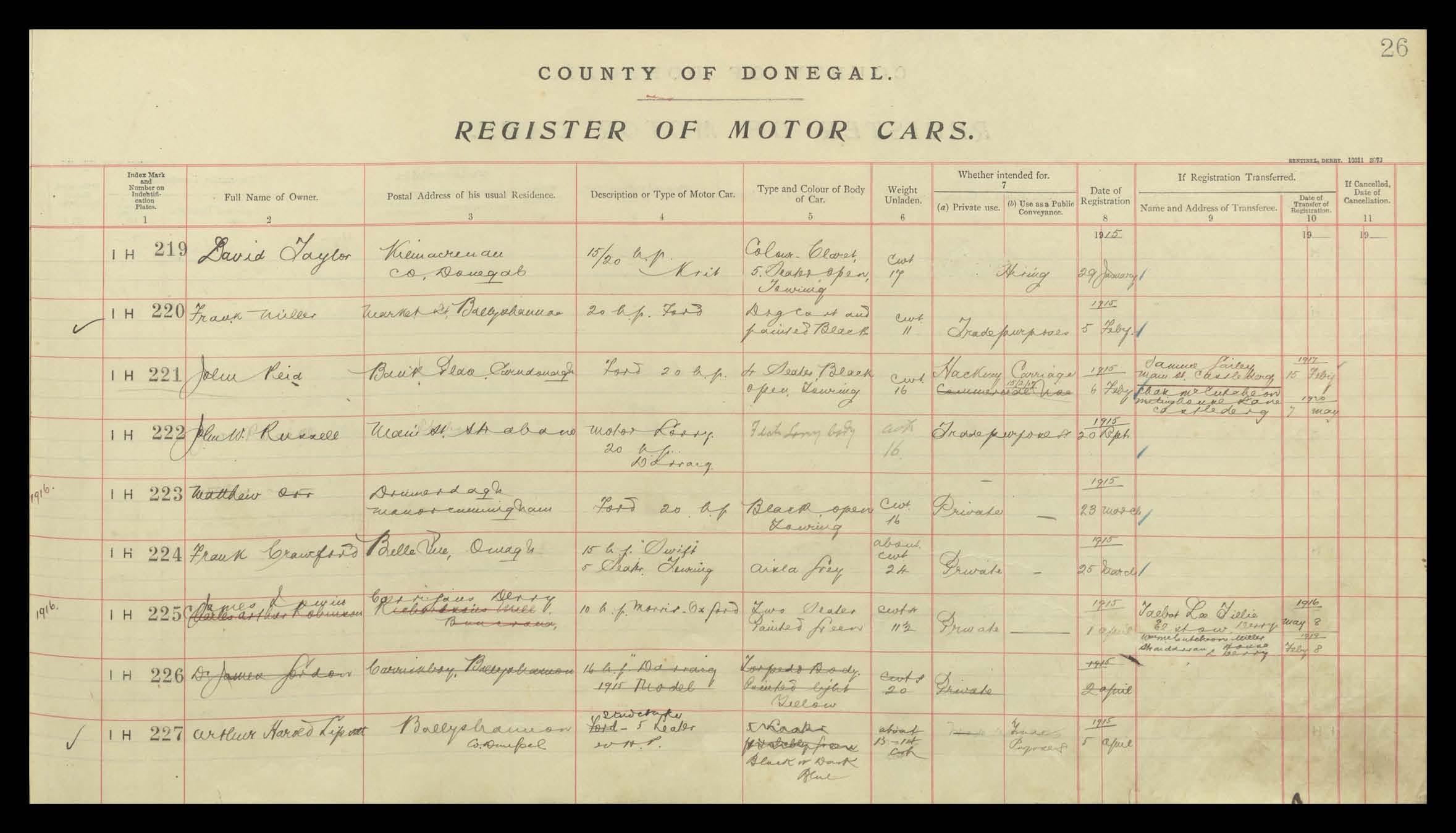 Register of Motor Vehicles, 1903 - 1923