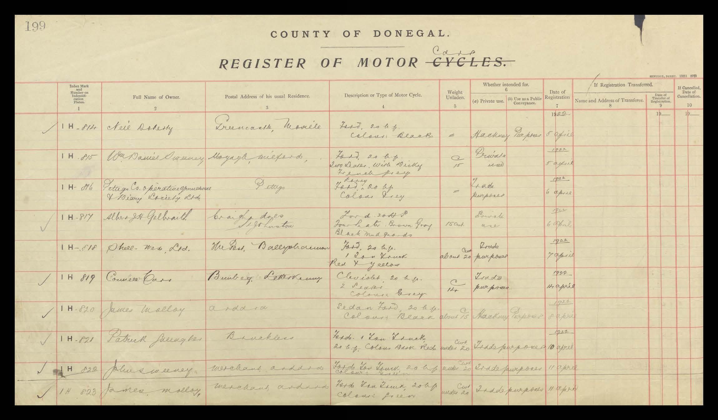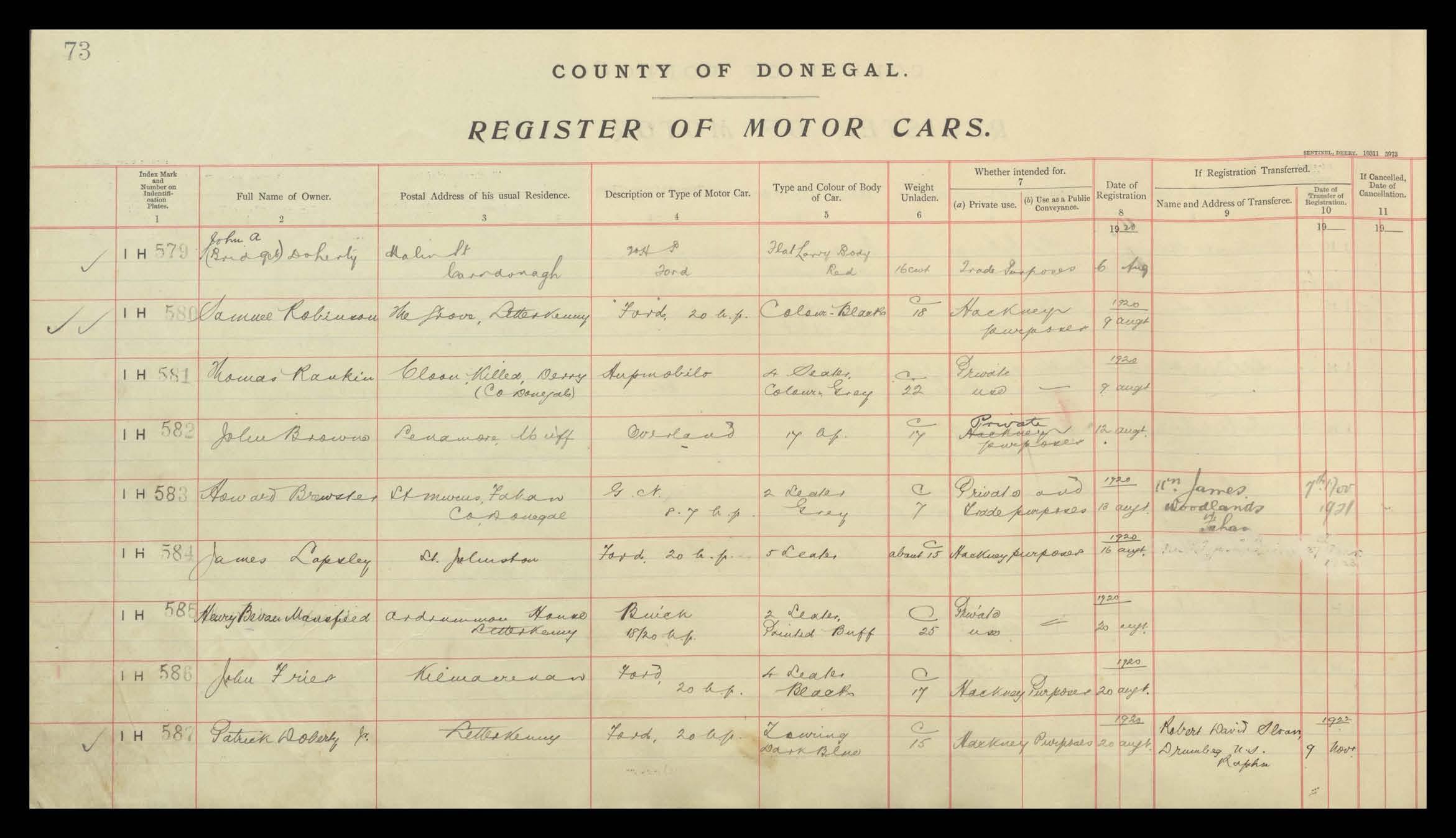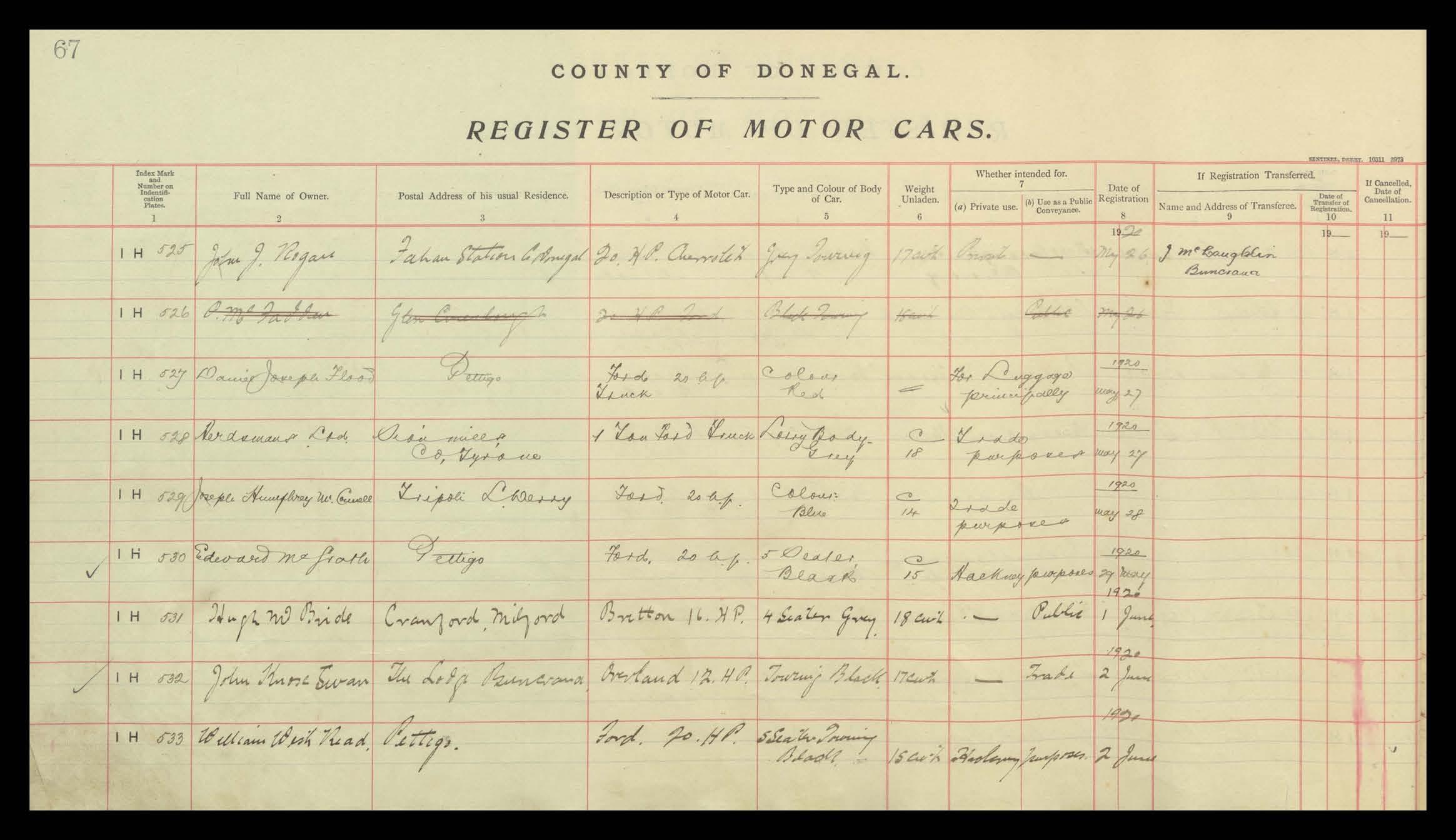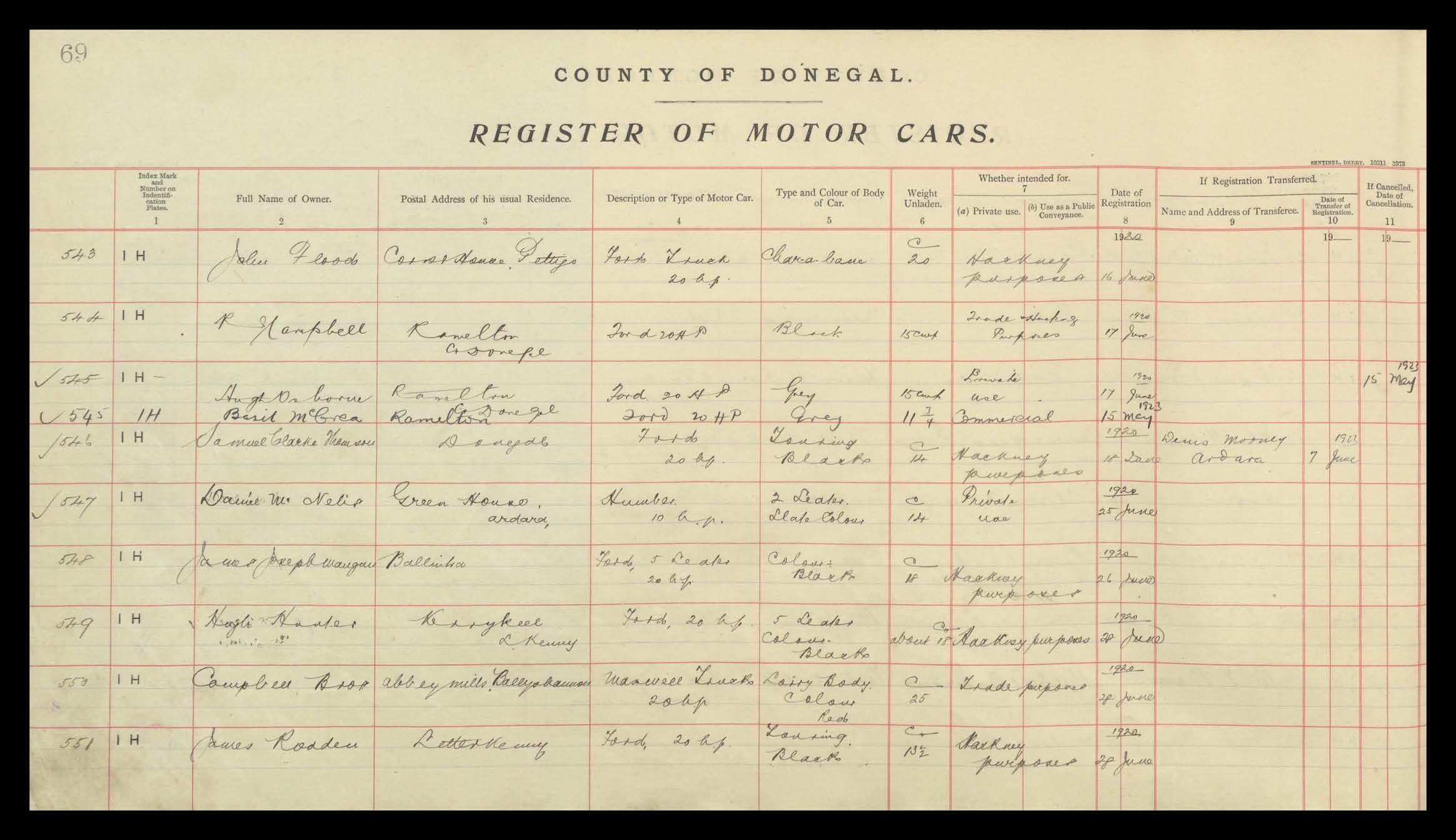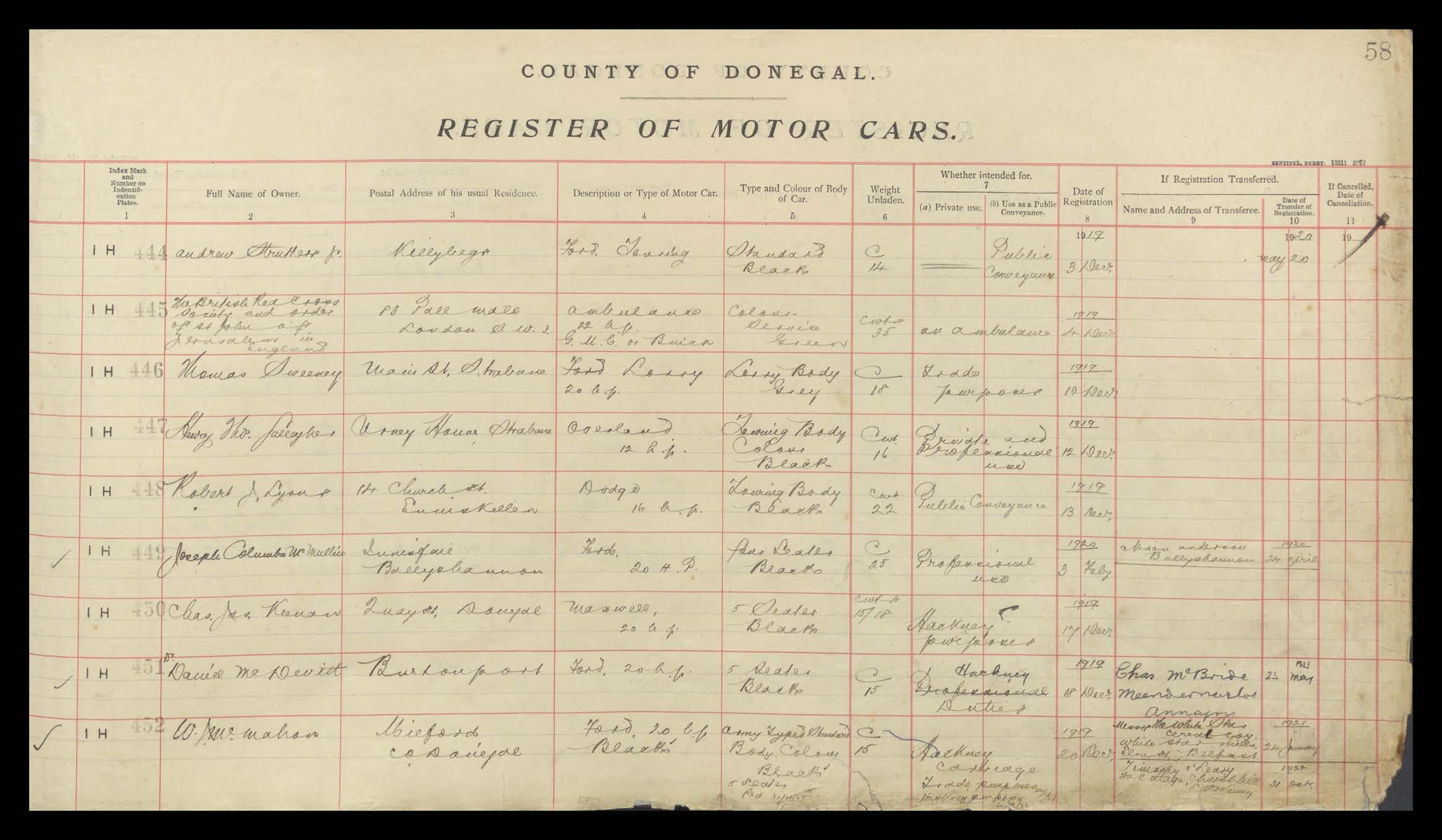 Register of Motor Vehicles, 1903 - 1923