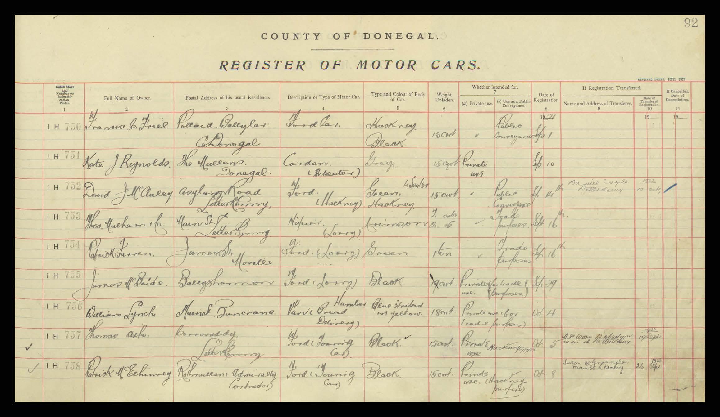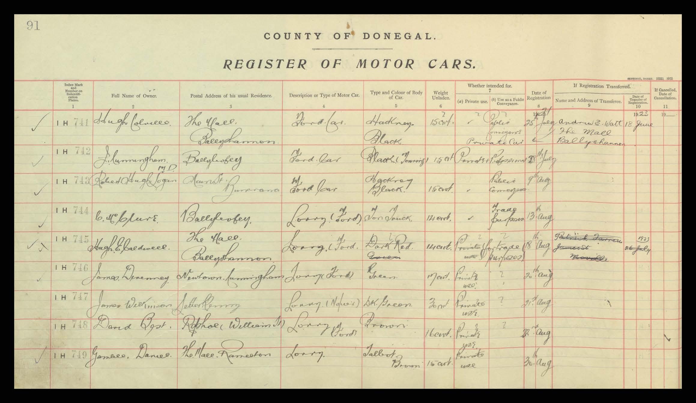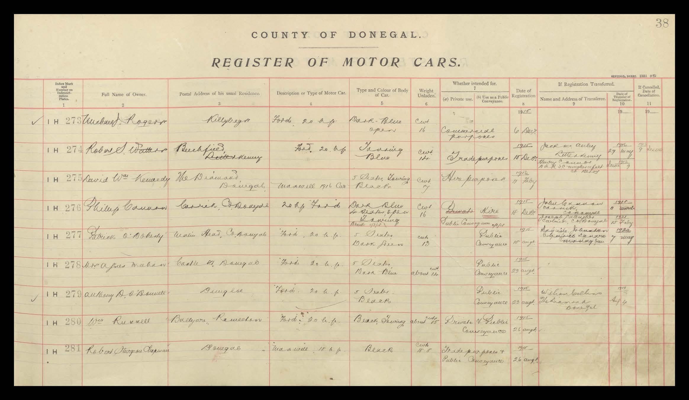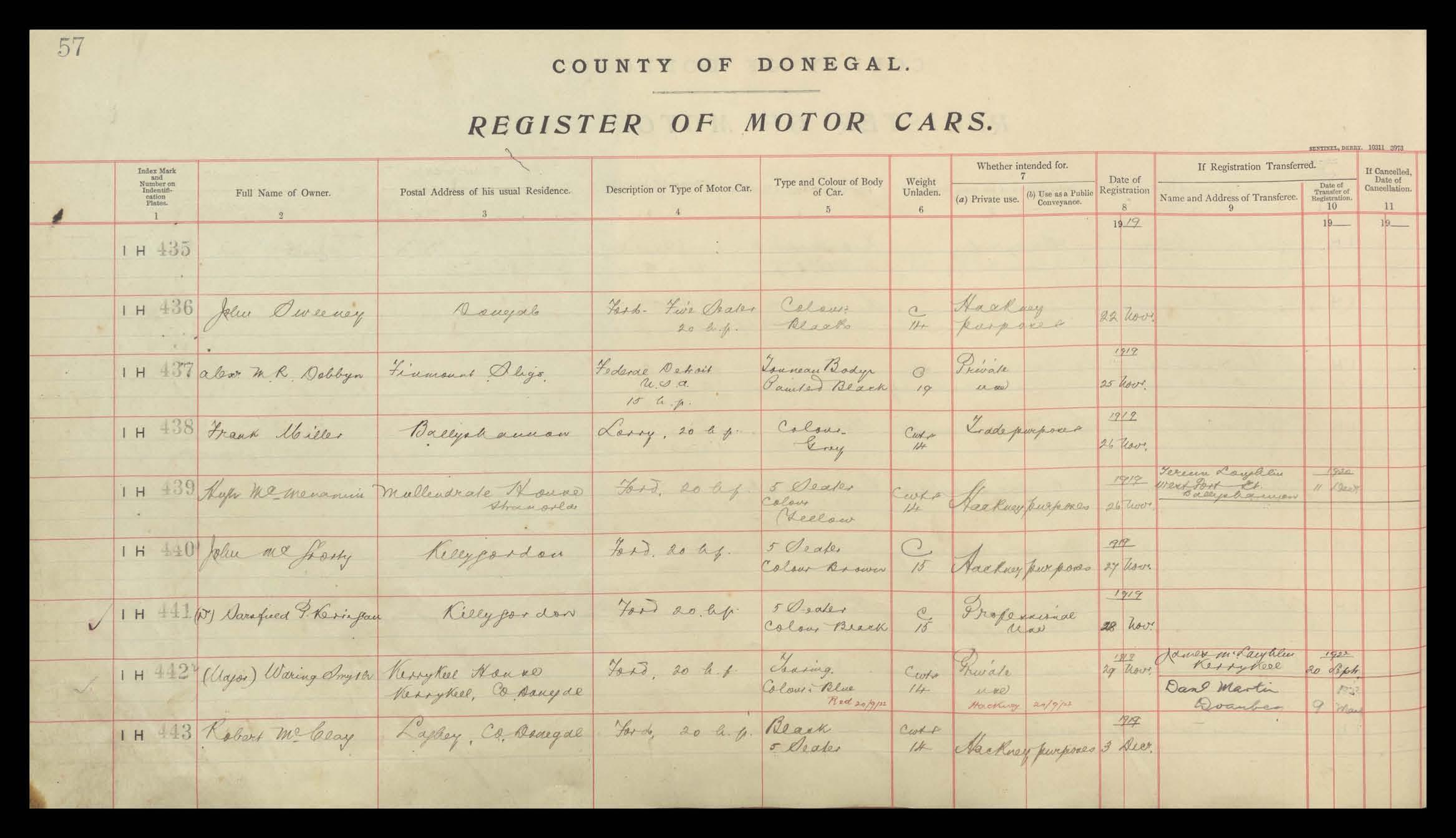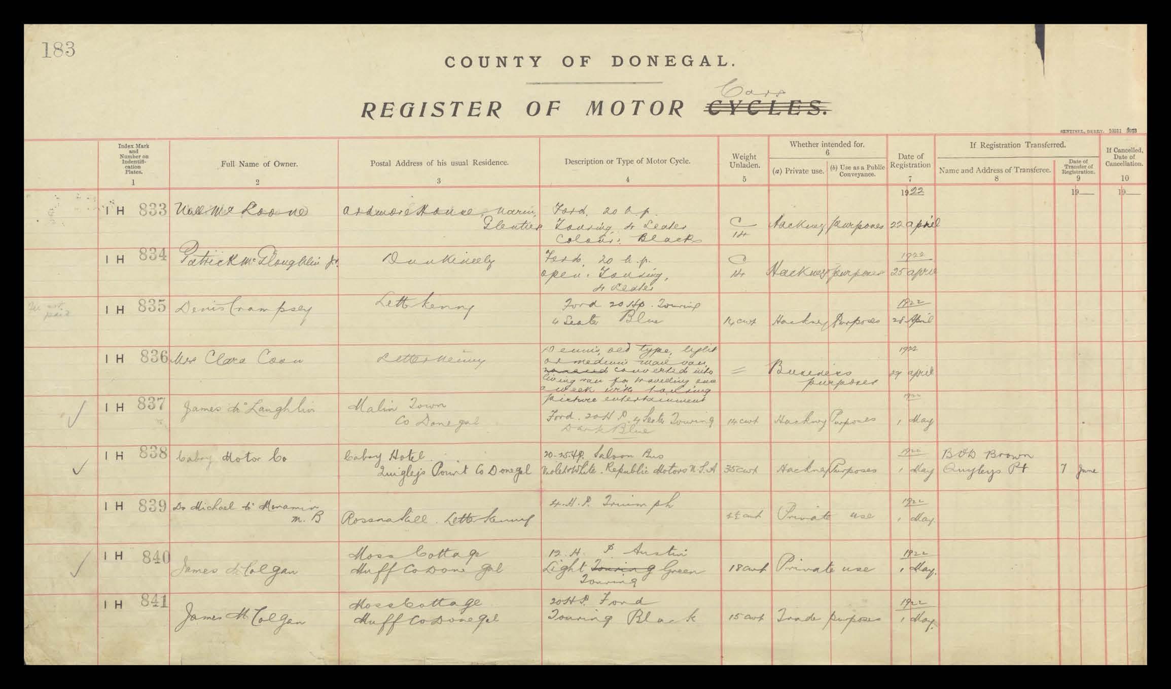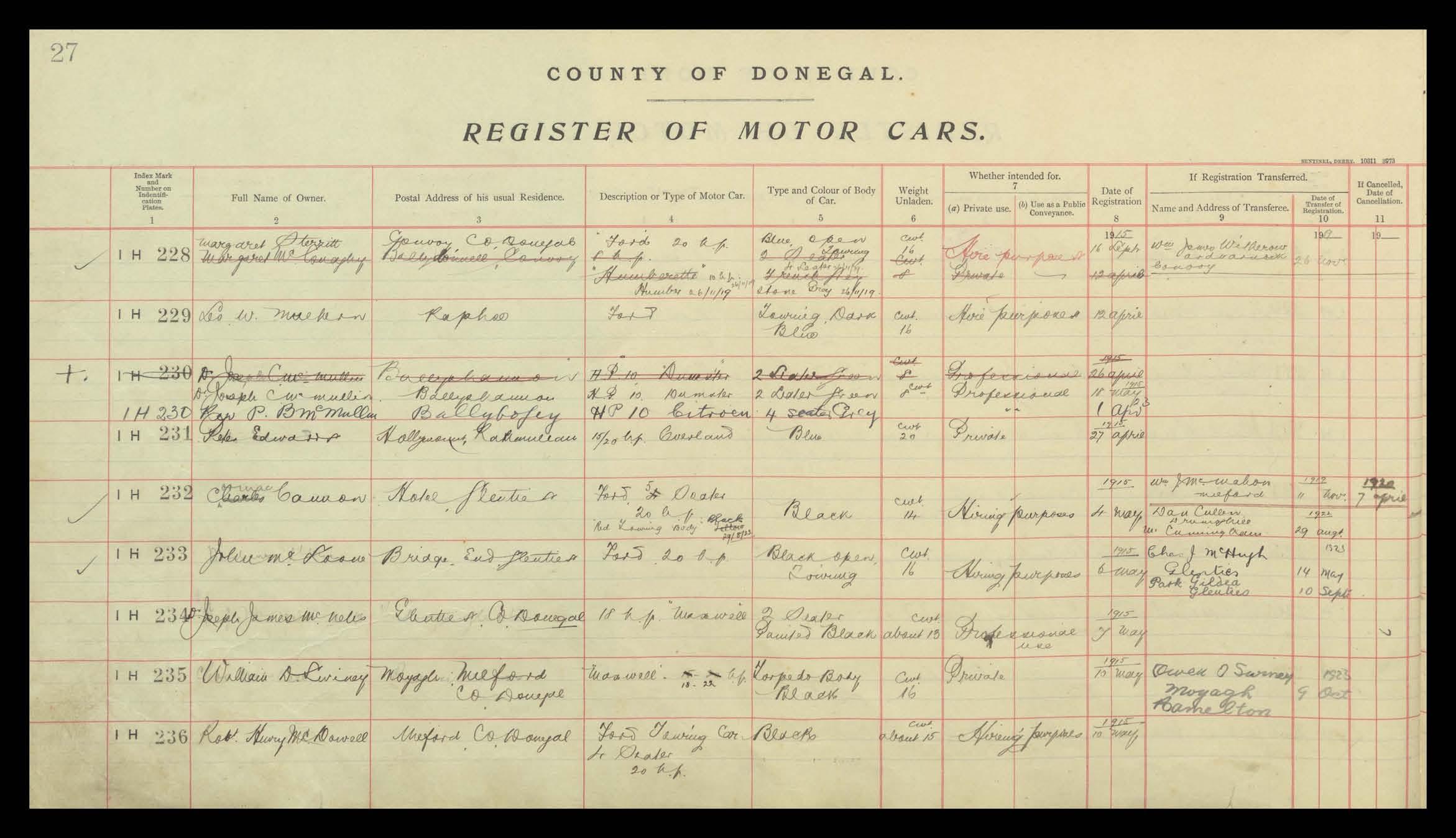 Register of Motor Vehicles, 1903 - 1923