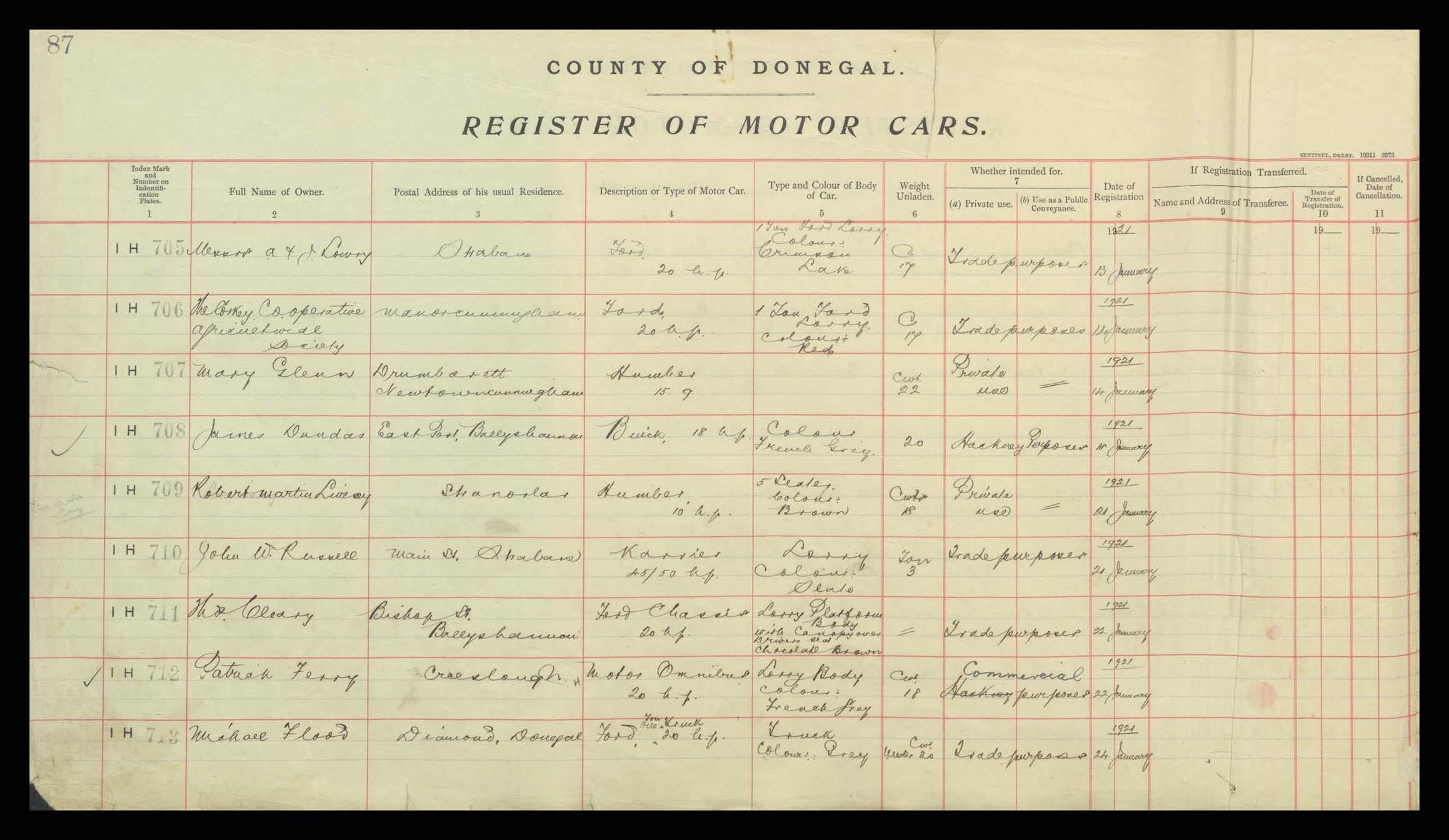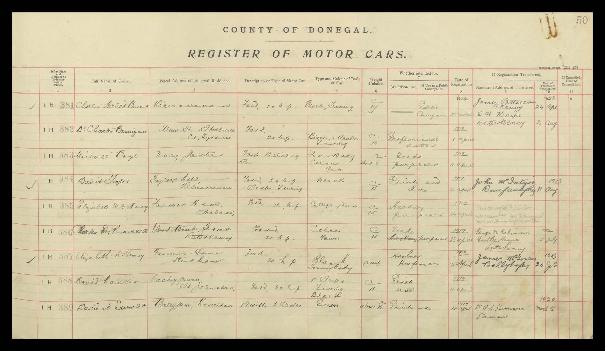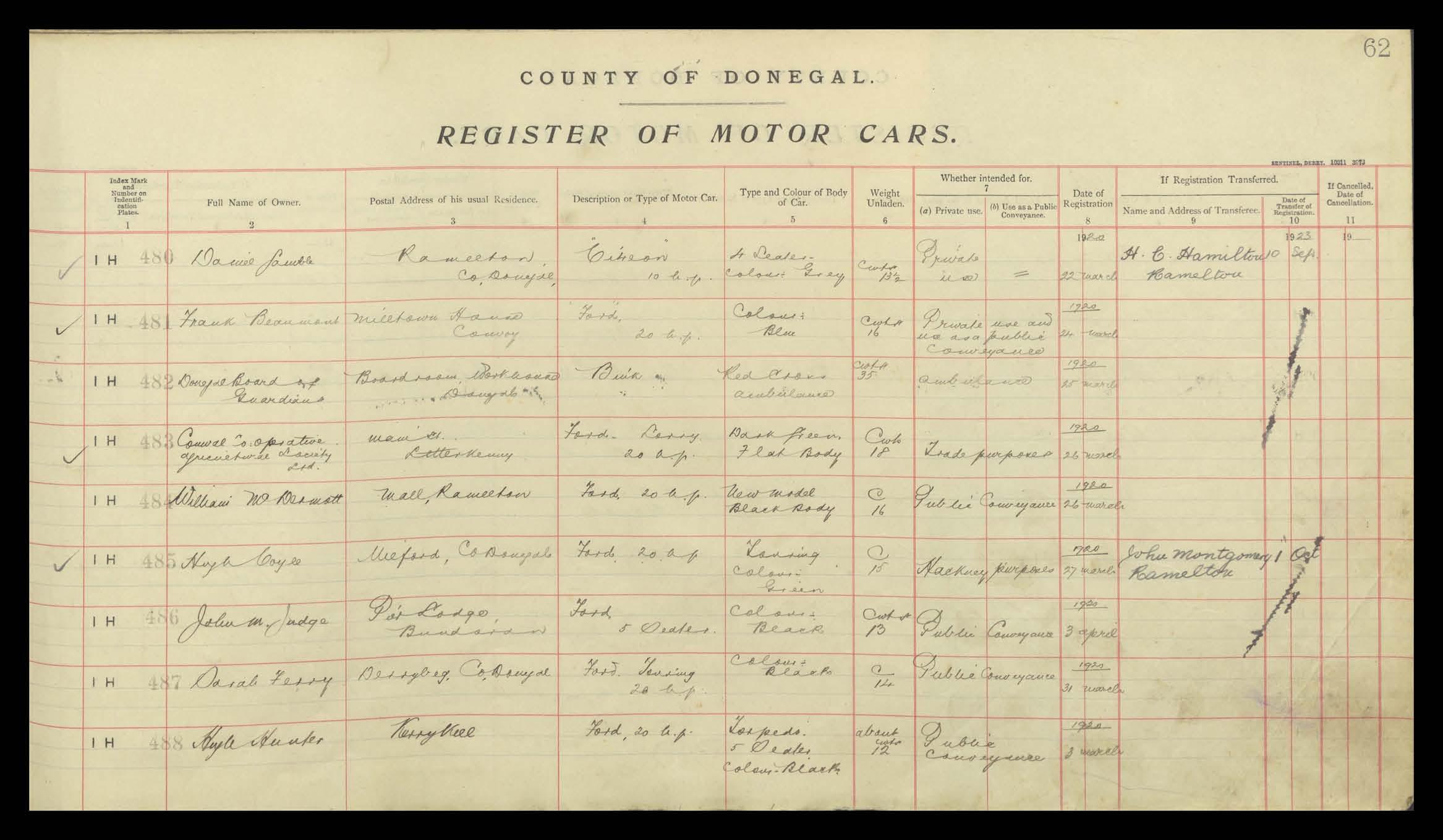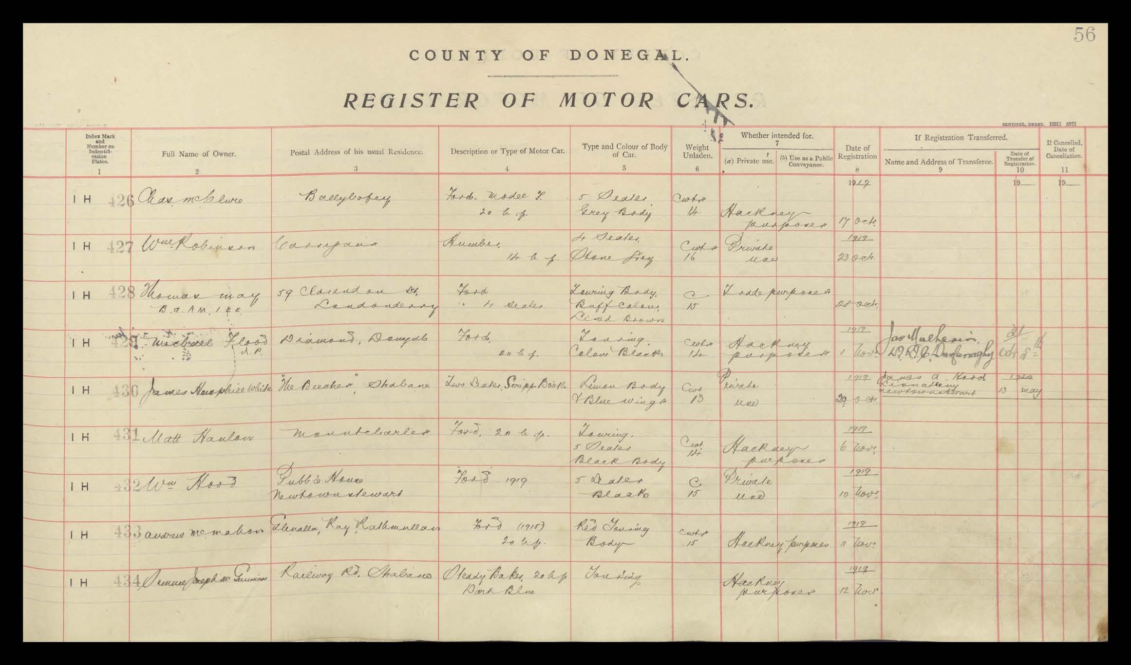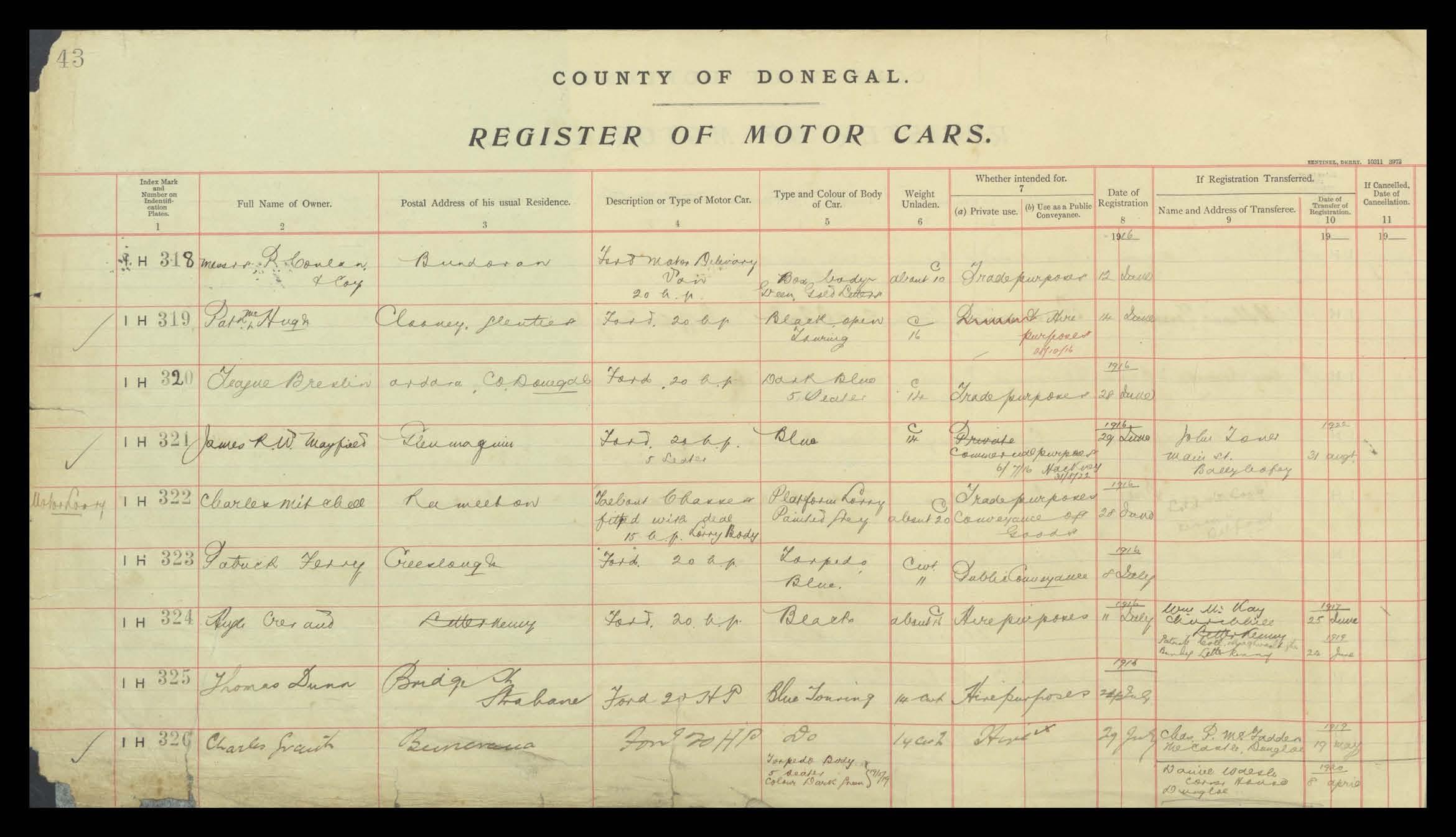 Register of Motor Vehicles, 1903 - 1923